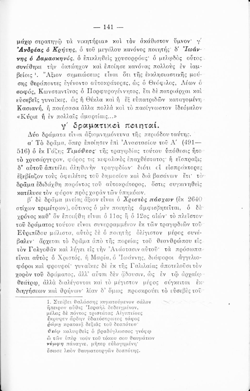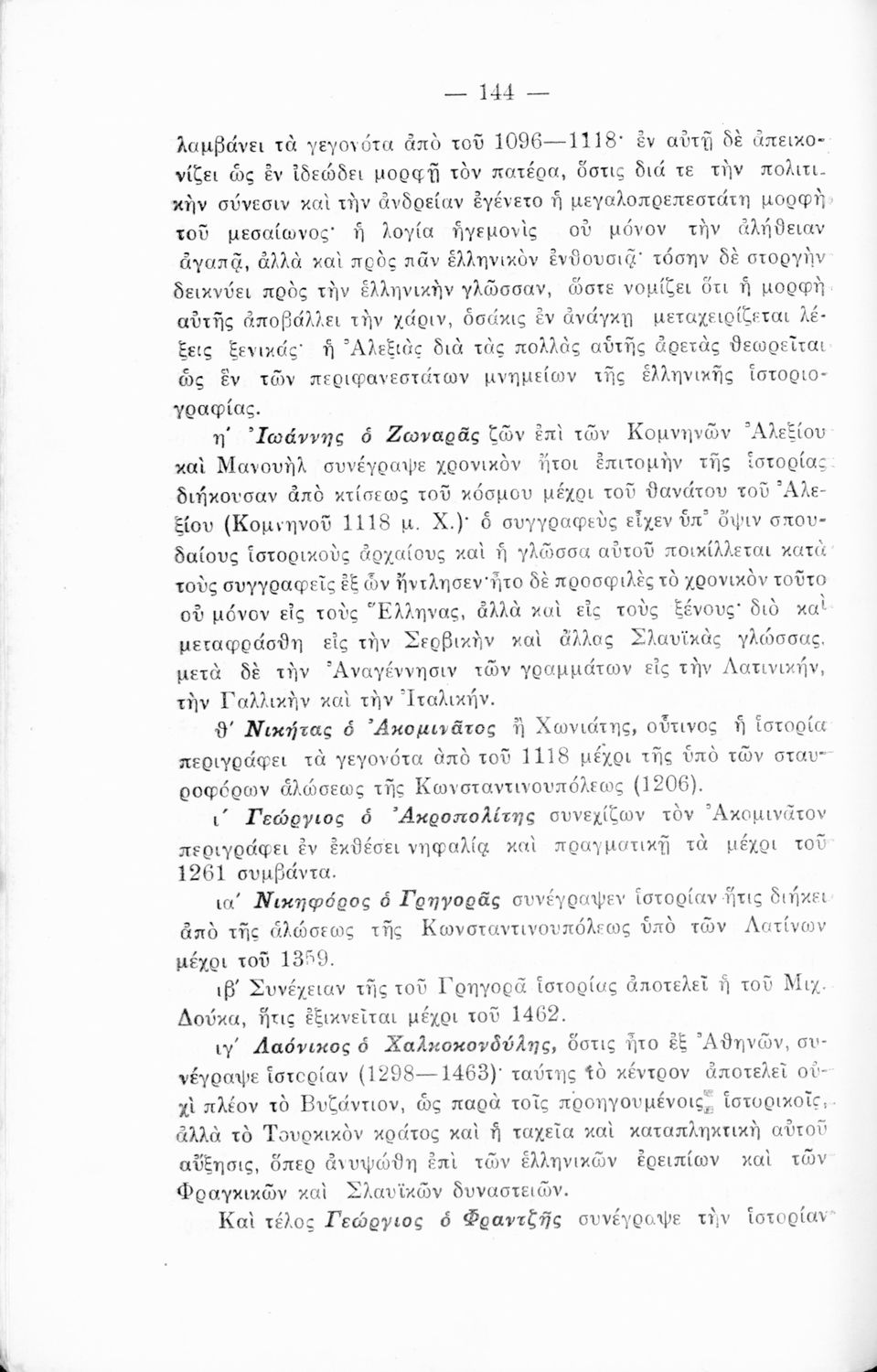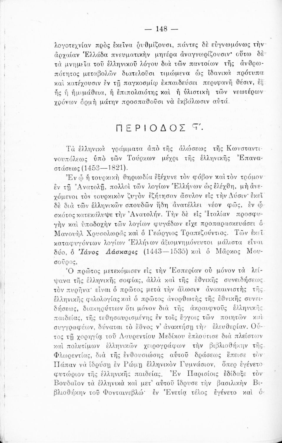 Σχολικό εγχειρίδιο Αρχαίων και Νέων Ελληνικών για τις Γ΄, Δ΄, Ε΄, ΣΤ΄ Γυμνασίου που παρουσιάζει τα είδη λογοτεχνίας και την εξέλιξη της ελληνικής γλώσσας από την εποχή του Όμηρου μέχρι την Ελληνική Επανάσταση. Περιέχει και αναφορά στα δημοτικά τραγούδια και σύντομα βιογραφικά σημειώματα επιφανών λογοτεχνών. Ο συγγραφέας ήταν Καθηγητής Ελληνικών Γραμμάτων στο Εθνικό Πανεπιστήμιο και Γυμνασιάρχης στο Αρσάκειο.