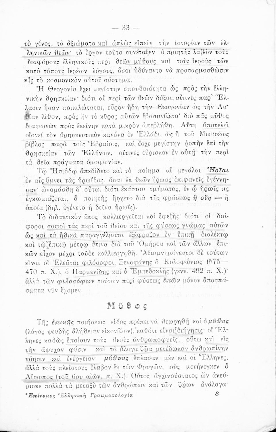 LDR 01779 2200205 4500 035 ## _a01-18522 040 ## _aΙνστιτούτο Εκπαιδευτικής Πολιτικής 041 ## _ael 100 ## _aΓιώργος Κ. Γαρδίκας 110 ## _a18522 245 0# _aΕπίτομος Ελληνική Γραμματολογία. Προς χρήσιν των μαθητών Γ΄, Δ΄, Ε΄, ΣΤ΄ του Γυμνασίου και των αντίστοιχων Τάξεων των λοιπών Σχολείων της Μέσης Εκπαίδευσης. 250 ## _a1η Έκδοση 260 ## _aΑθήνα _bΒιβλιοπωλείο Ιωάννη Ν. Σιδέρη _c1930 300 ## _a183 520 ## _aΣχολικό εγχειρίδιο Αρχαίων και Νέων Ελληνικών για τις Γ΄, Δ΄, Ε΄, ΣΤ΄ Γυμνασίου που παρουσιάζει τα είδη λογοτεχνίας και την εξέλιξη της ελληνικής γλώσσας από την εποχή του Όμηρου μέχρι την Ελληνική Επανάσταση. Περιέχει και αναφορά στα δημοτικά τραγούδια και σύντομα βιογραφικά σημειώματα επιφανών λογοτεχνών. Ο συγγραφέας ήταν Καθηγητής Ελληνικών Γραμμάτων στο Εθνικό Πανεπιστήμιο και Γυμνασιάρχης στο Αρσάκειο. 521 ## _aΓ' Γυμνασίου / Δ' Γυμνασίου / Ε' Γυμνασίου / ΣΤ' Γυμνασίου 522 ## _aΕλλάδα 546 ## _aΚαθαρεύουσα 563 ## _aΜαλακό Εξώφυλλο 650 #4 _aΈπος _aΠοίηση _aΡητορική _aΤραγωδία _aΦιλοσοφία