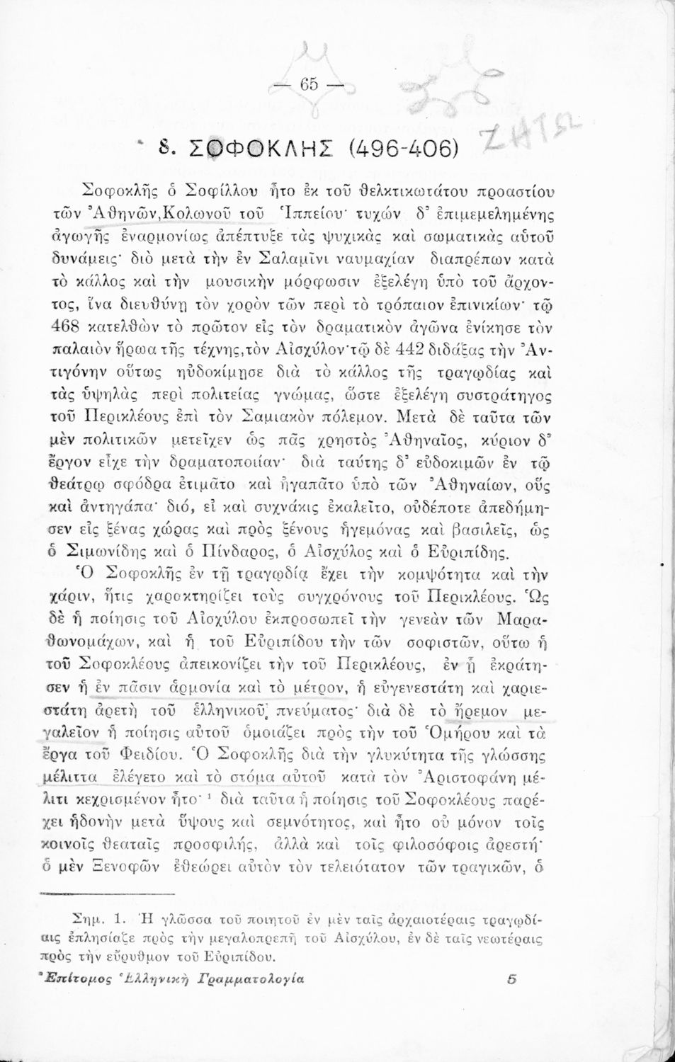 Τίτλος: Επίτομος Ελληνική Γραμματολογία. Προς χρήσιν των μαθητών Γ΄, Δ΄, Ε΄, ΣΤ΄ του Γυμνασίου και των αντίστοιχων Τάξεων των λοιπών Σχολείων της Μέσης Εκπαίδευσης.