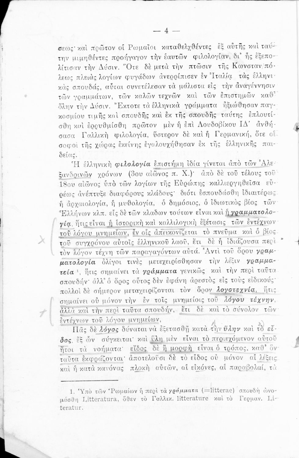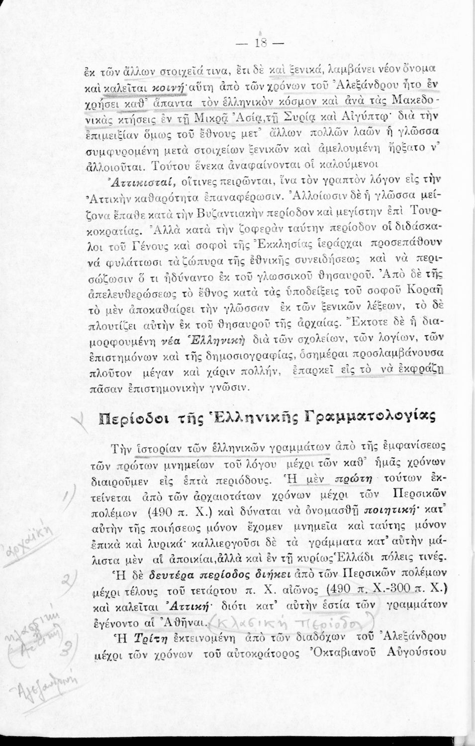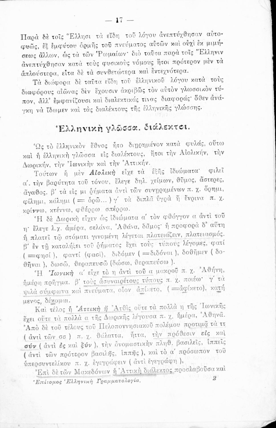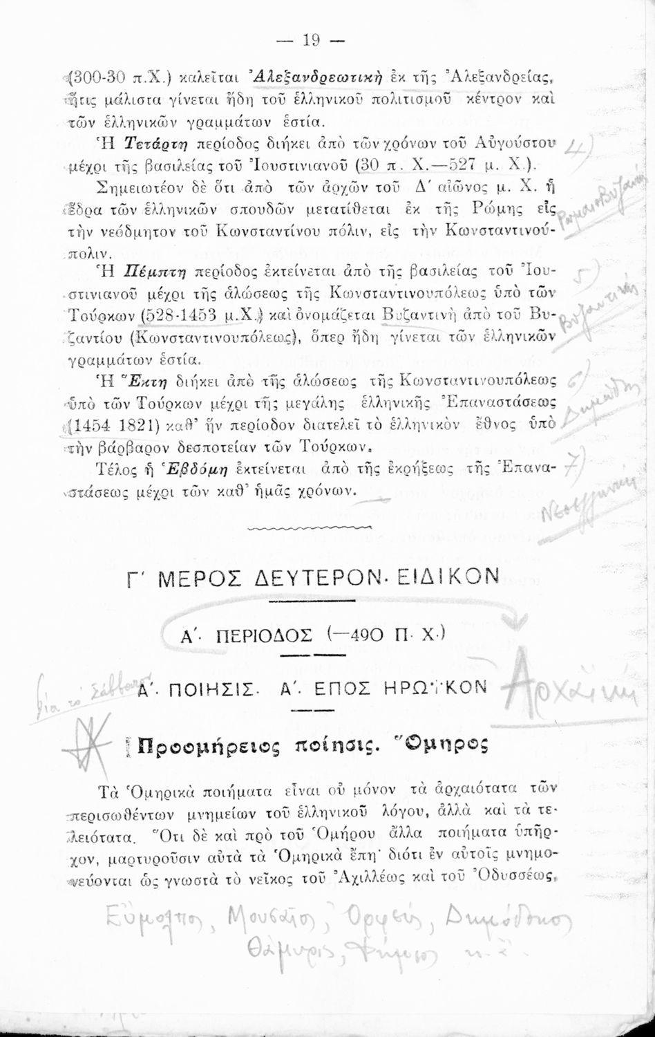 Σχολικό εγχειρίδιο Αρχαίων και Νέων Ελληνικών για τις Γ΄, Δ΄, Ε΄, ΣΤ΄ Γυμνασίου που παρουσιάζει τα είδη λογοτεχνίας και την εξέλιξη της ελληνικής γλώσσας από την εποχή του Όμηρου μέχρι την Ελληνική Επανάσταση. Περιέχει και αναφορά στα δημοτικά τραγούδια και σύντομα βιογραφικά σημειώματα επιφανών λογοτεχνών. Ο συγγραφέας ήταν Καθηγητής Ελληνικών Γραμμάτων στο Εθνικό Πανεπιστήμιο και Γυμνασιάρχης στο Αρσάκειο.