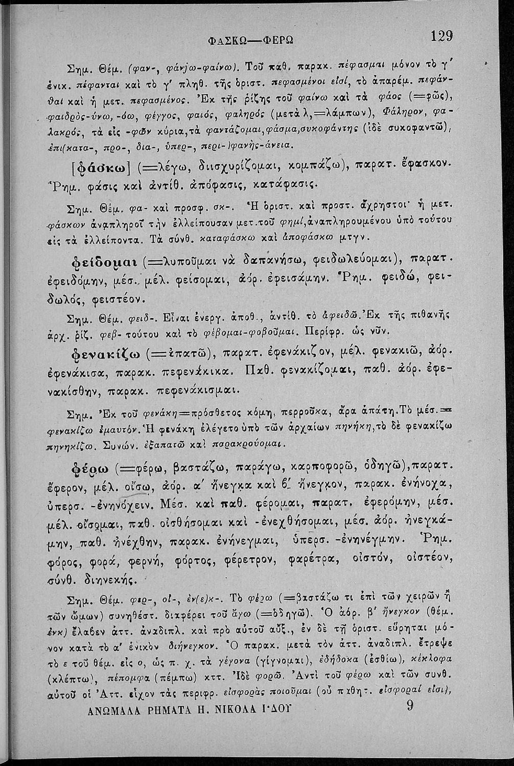 Ανώμαλα ρήματα και ονόματα της αττικής διαλέκτου. Μετά ποικίλων Γραμματικών κλπ σημειώσεων δια την Α΄, Β΄, Γ΄ Τάξιν των Ελληνικών Σχολείων και τας Ανωτέρας Τάξεις των Παρθεναγωγείων