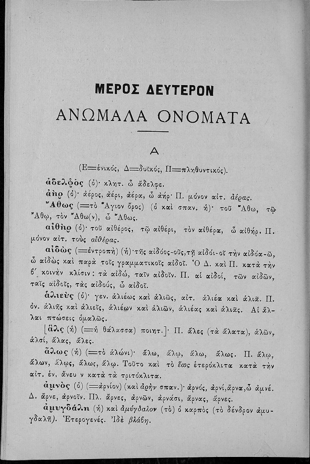 Ανώμαλα ρήματα και ονόματα της αττικής διαλέκτου. Μετά ποικίλων Γραμματικών κλπ σημειώσεων δια την Α΄, Β΄, Γ΄ Τάξιν των Ελληνικών Σχολείων και τας Ανωτέρας Τάξεις των Παρθεναγωγείων