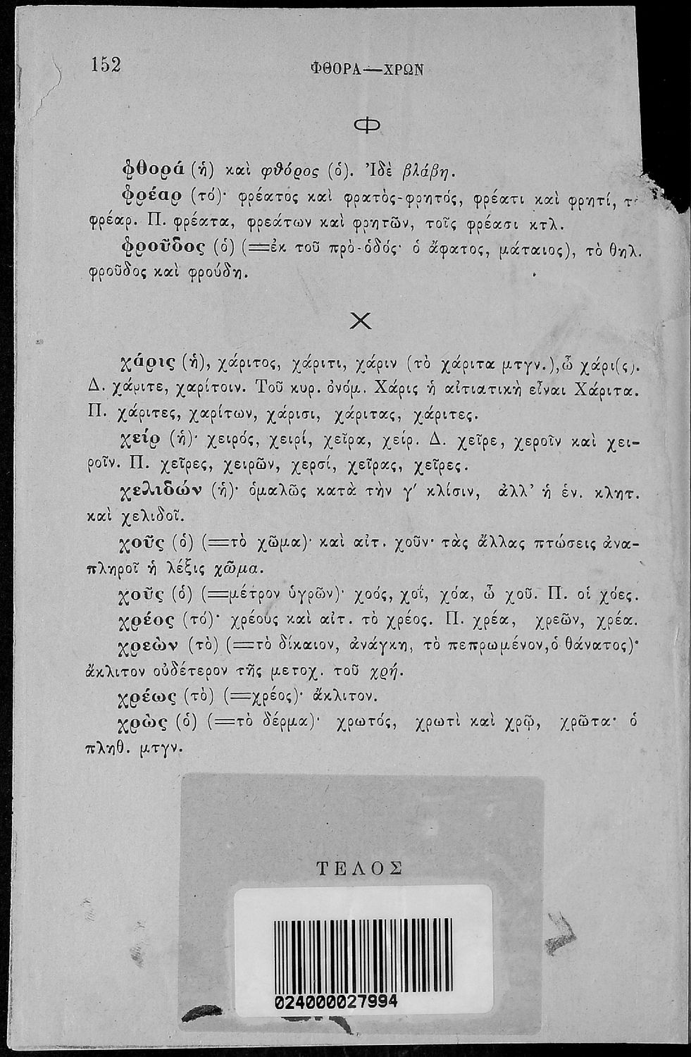 Μαθητικό βοήθημα Αρχαίων Ελληνικών για τις Α΄, Β΄, Γ' Ελληνικού Σχολείου και Παρθεναγωγείου για το μάθημα των Αρχαίων που περιλαμβάνει λεξικό ανωμάλων ρημάτων και γραμματικές σημειώσεις
