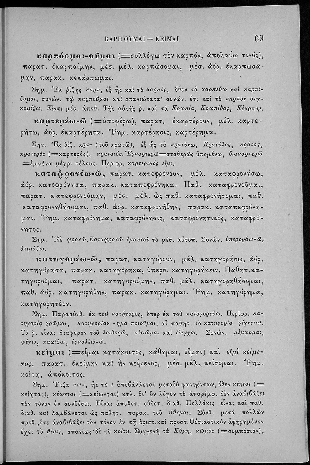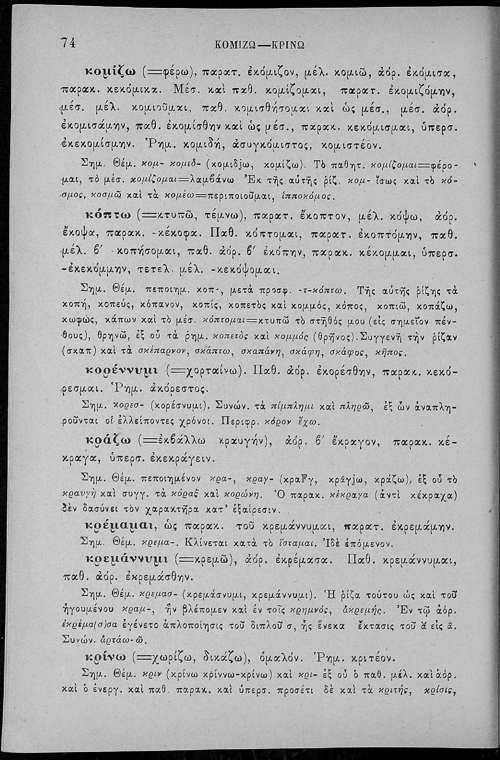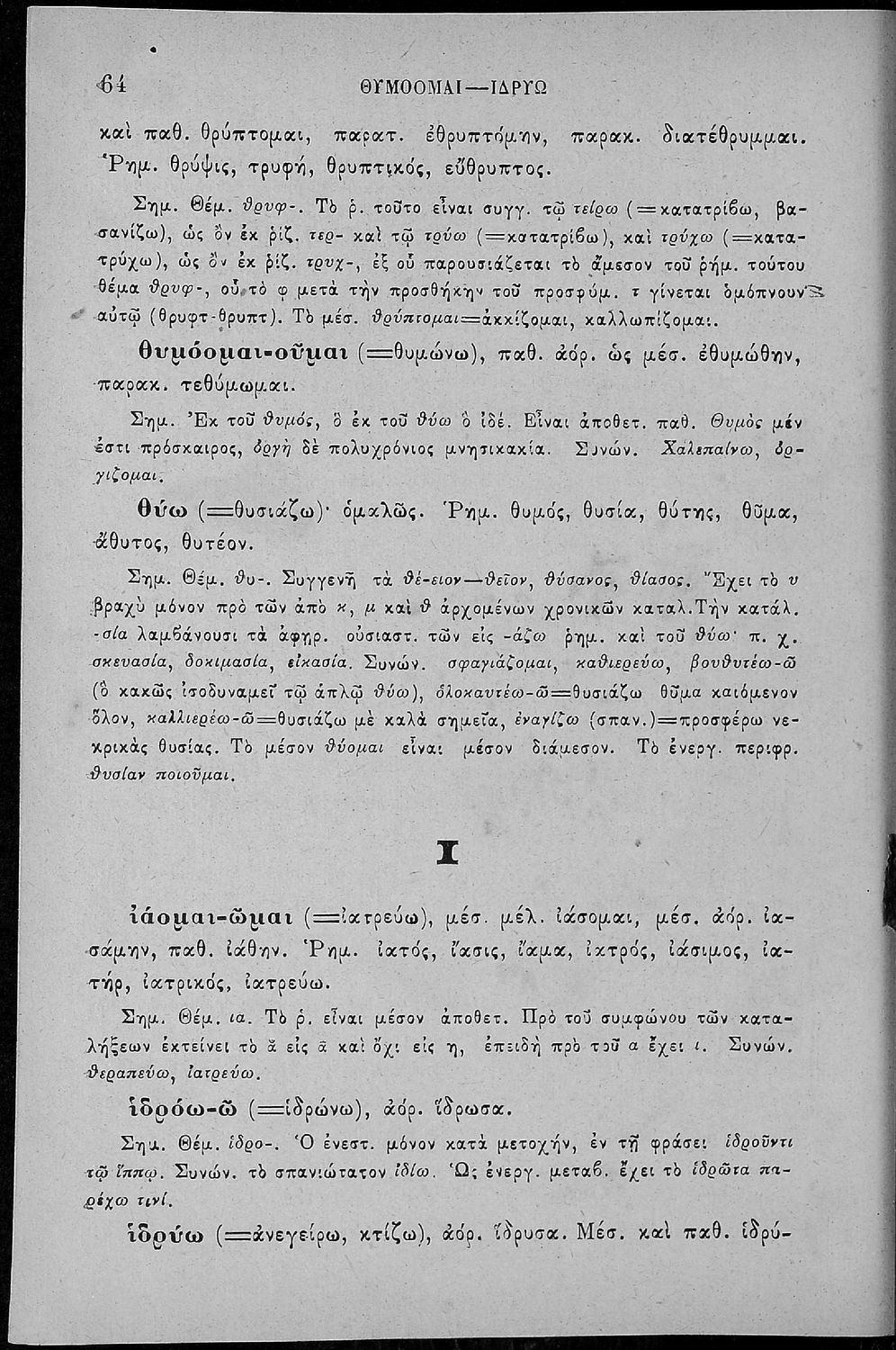 Μαθητικό βοήθημα Αρχαίων Ελληνικών για τις Α΄, Β΄, Γ' Ελληνικού Σχολείου και Παρθεναγωγείου για το μάθημα των Αρχαίων που περιλαμβάνει λεξικό ανωμάλων ρημάτων και γραμματικές σημειώσεις
