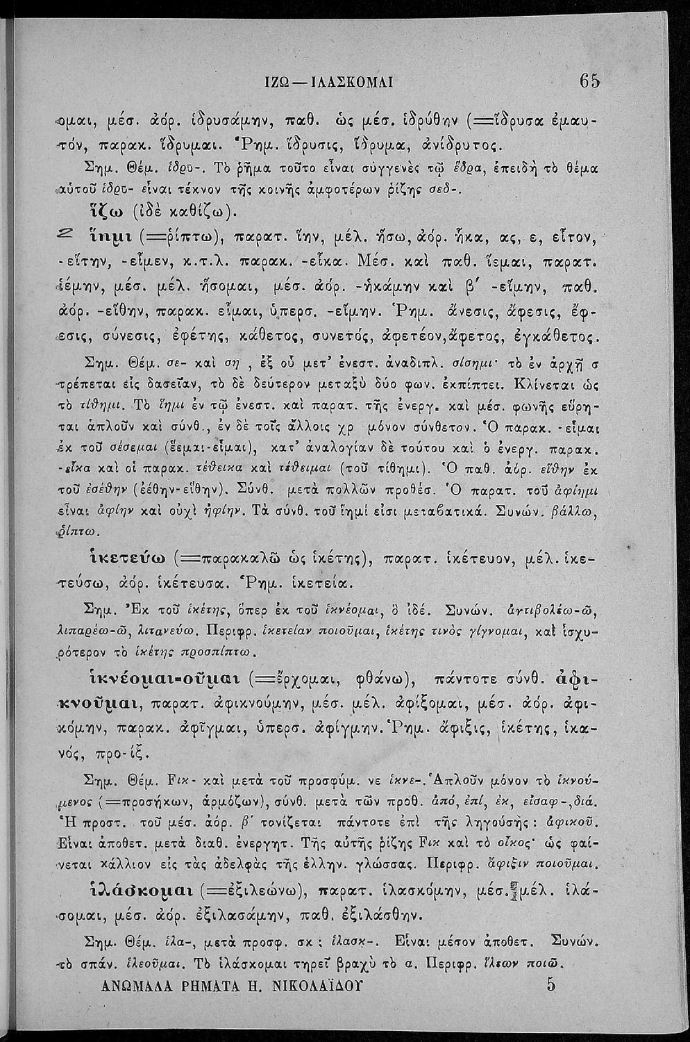Ανώμαλα ρήματα και ονόματα της αττικής διαλέκτου. Μετά ποικίλων Γραμματικών κλπ σημειώσεων δια την Α΄, Β΄, Γ΄ Τάξιν των Ελληνικών Σχολείων και τας Ανωτέρας Τάξεις των Παρθεναγωγείων