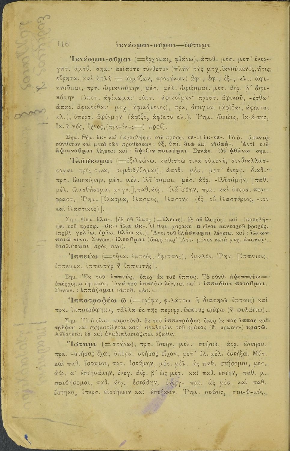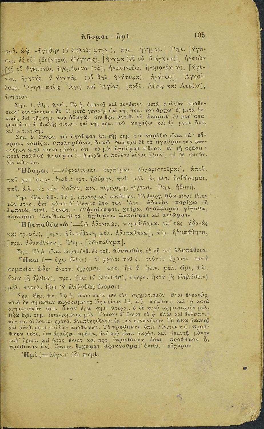 Μαθητικό βοήθημα Αρχαίων Ελληνικών για τα Ελληνικά Σχολεία, Παρθεναγωγεία και Γυμνάσια που περιλαμβάνει γραμματική της αρχαίας ελληνικής και κατάλογο ανωμάλων ρημάτων.