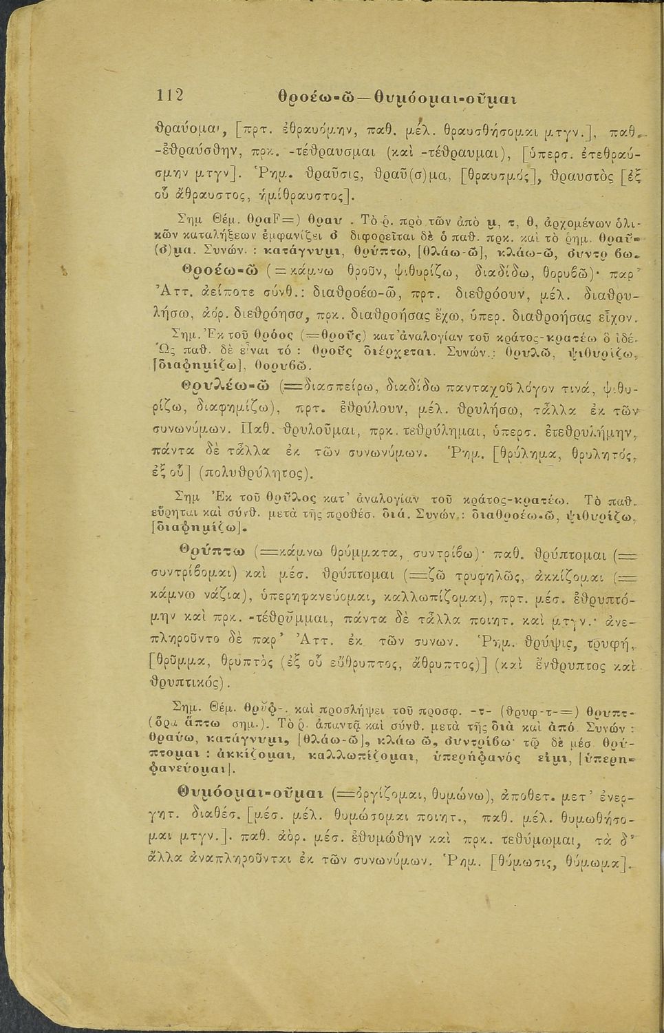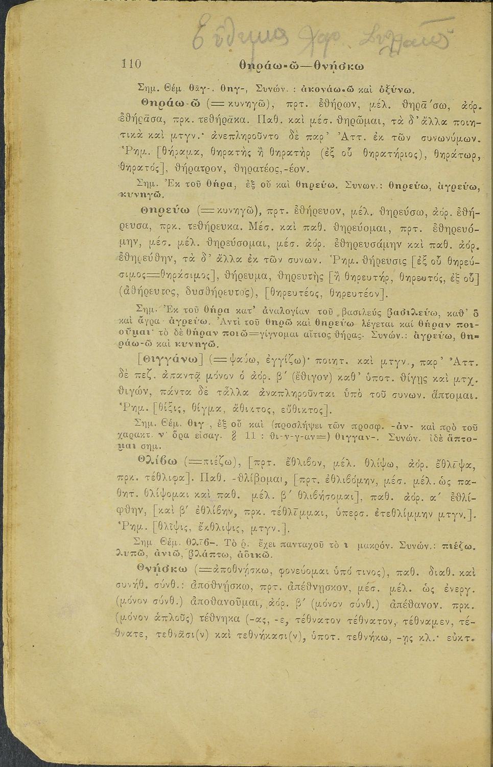 Μαθητικό βοήθημα Αρχαίων Ελληνικών Γυμνασίου, Ελληνικού Σχολείου και Παρθεναγωγείου που περιέχει τα ανώμαλα ρήματα της αττικής διαλέκτου και γραμματικές σημειώσεις.