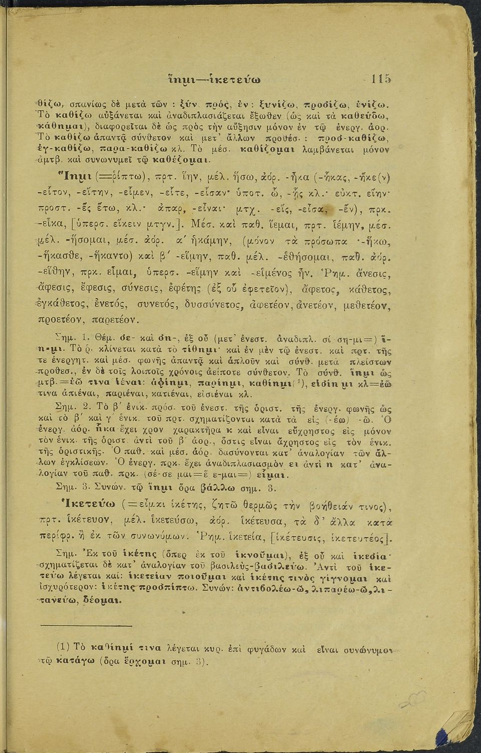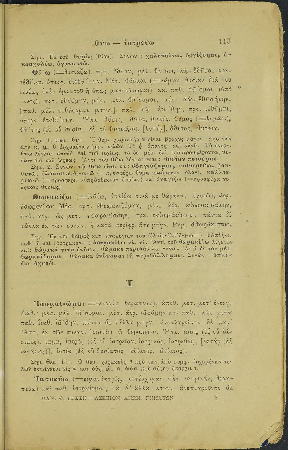 Μαθητικό βοήθημα Αρχαίων Ελληνικών για τους μαθητές των Ημιγυμνασίων, Παρθεναγωγείων, Αστικών σχολείων και Παρθεναγωγείων που περιλαμβάνει κατάλογο ανωμάλων ρημάτων και σειρά σημειώσεων και ασκήσεων για ...