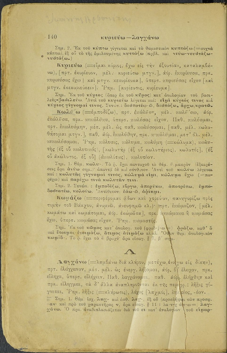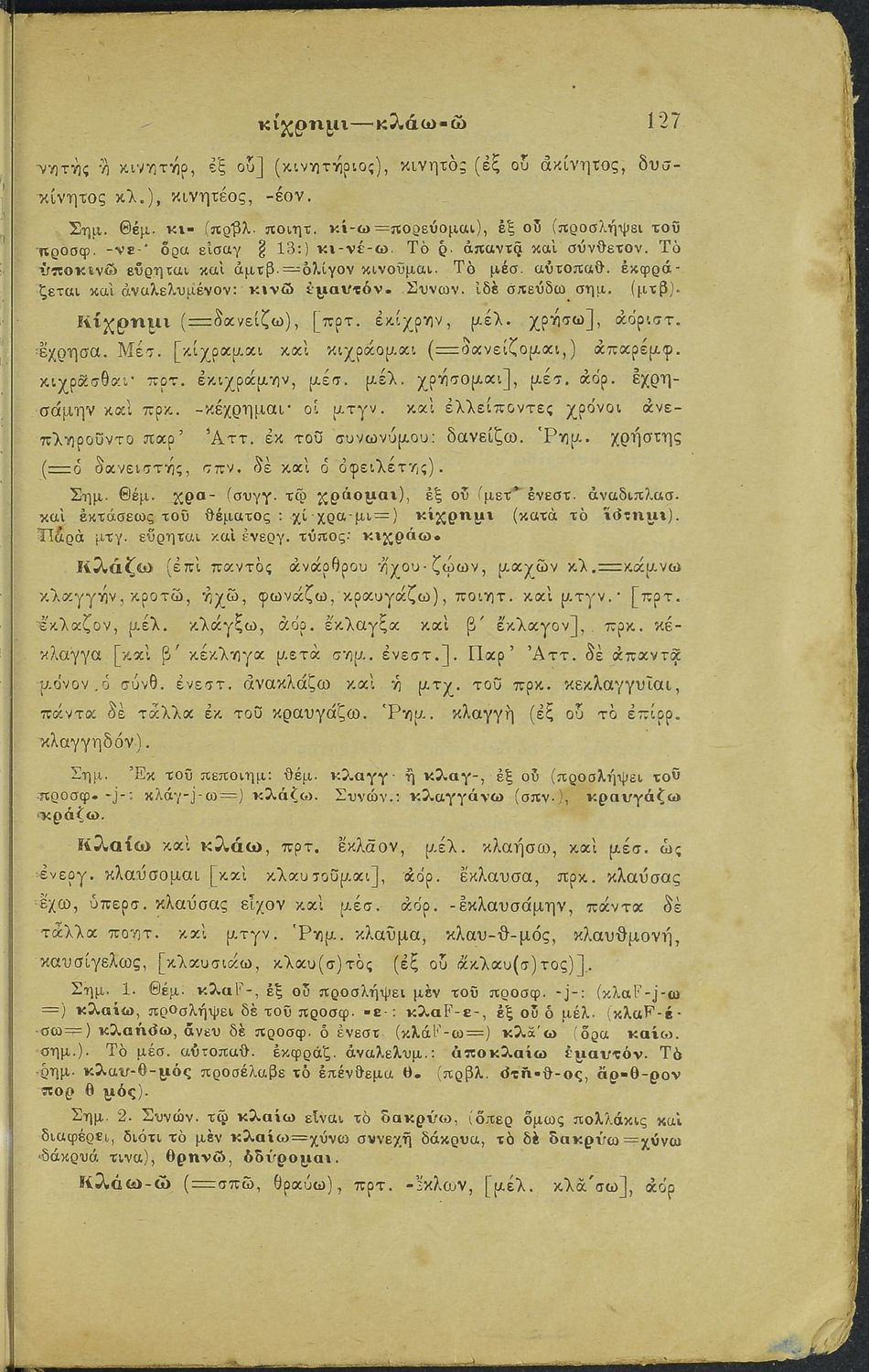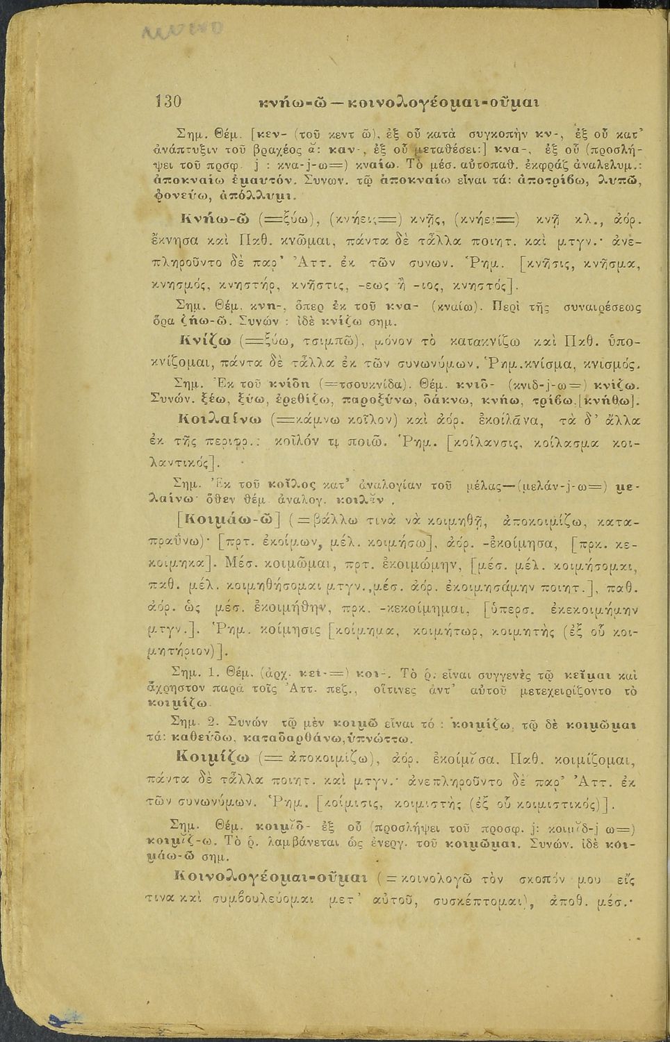 LDR 01428 2200205 4500 035 ## _a01-18524 040 ## _aΙνστιτούτο Εκπαιδευτικής Πολιτικής 041 ## _ael 100 ## _aΙωάν. Θ. Ρώσσης 110 ## _a18524 245 0# _aΛεξικόν Ανωμάλων Ρημάτων της αρχαίας ελληνικής γλώσσης. Μάλιστα δε της Αττικής διαλέκτου μετά ποικίλων προτύπων τεχνολογικών σημειώσεων. Προς χρήσιν των μαθητών των Ελλ. Σχολείων, Παρθεναγωγείων και Γυμνασίων 250 ## _a4η Έκδοση 260 ## _aΑθήνα _bΤυπογραφείο: Παρ. Λεώνης _c1914 300 ## _a272 520 ## _aΜαθητικό βοήθημα Αρχαίων Ελληνικών για τα Ελληνικά Σχολεία, Παρθεναγωγεία και Γυμνάσια που περιλαμβάνει γραμματική της αρχαίας ελληνικής και κατάλογο ανωμάλων ρημάτων. 521 ## _aΕλληνικό Σχολείο / Παρθεναγωγείο / Γυμνάσιο 522 ## _aΕλλάδα 546 ## _aΚαθαρεύουσα 563 ## _aΜαλακό Εξώφυλλο 650 #4 _aΑπαρέμφατο _aΑρχαία _aΕνεργητική φωνή _aΜέση φωνή _aΡήματα _aΧρόνοι