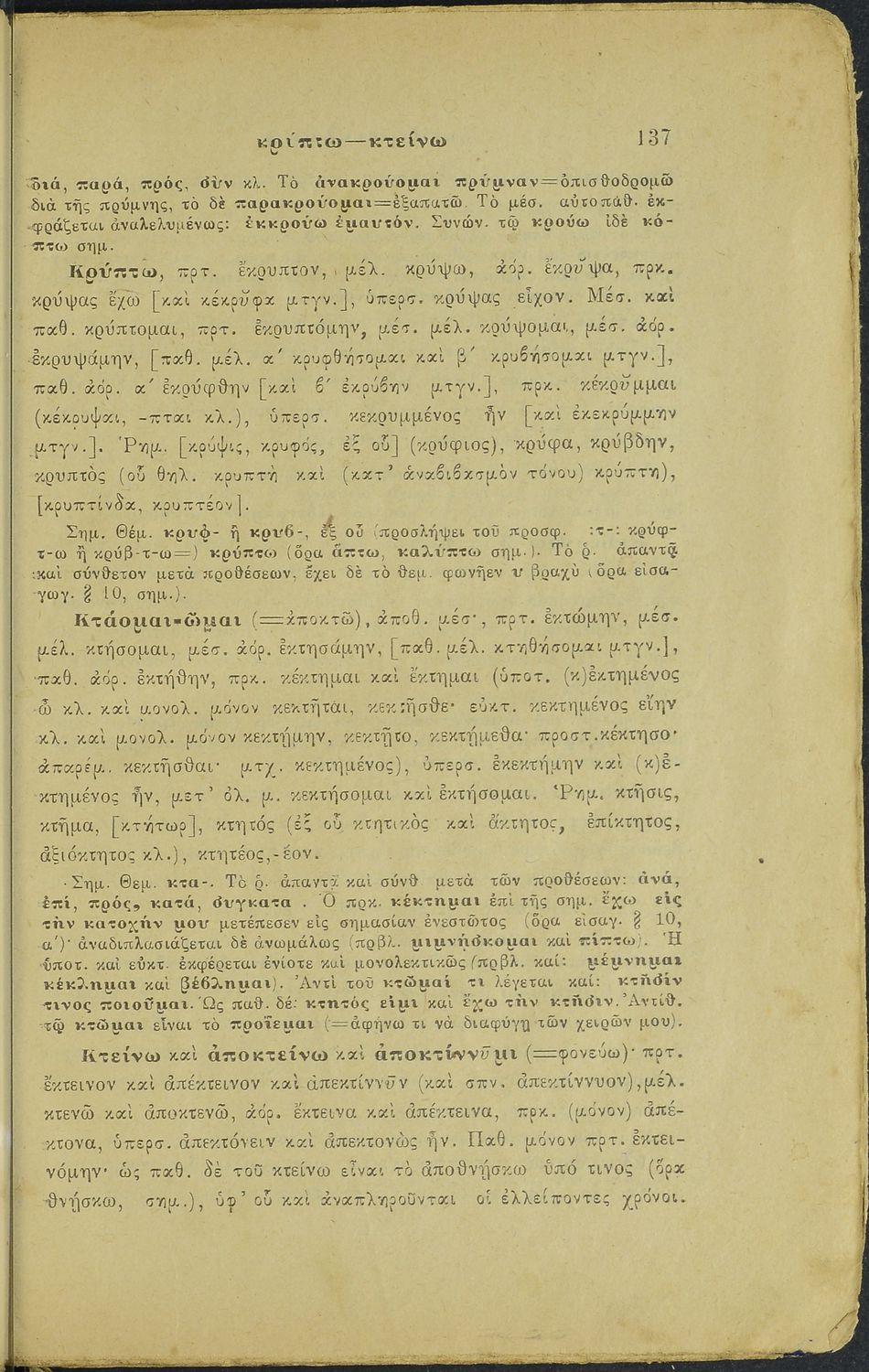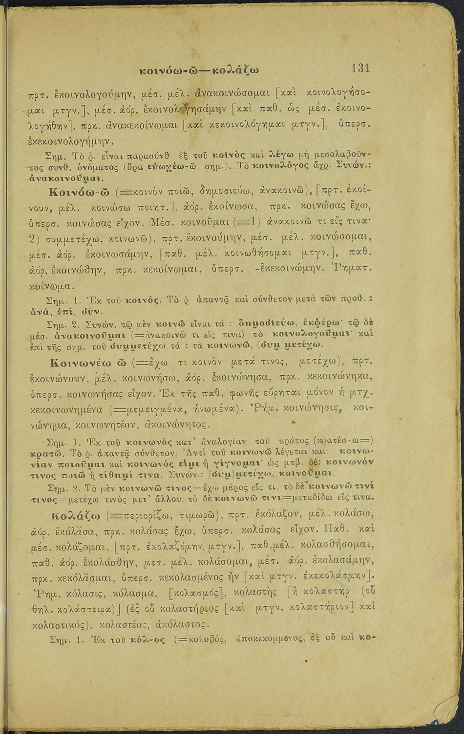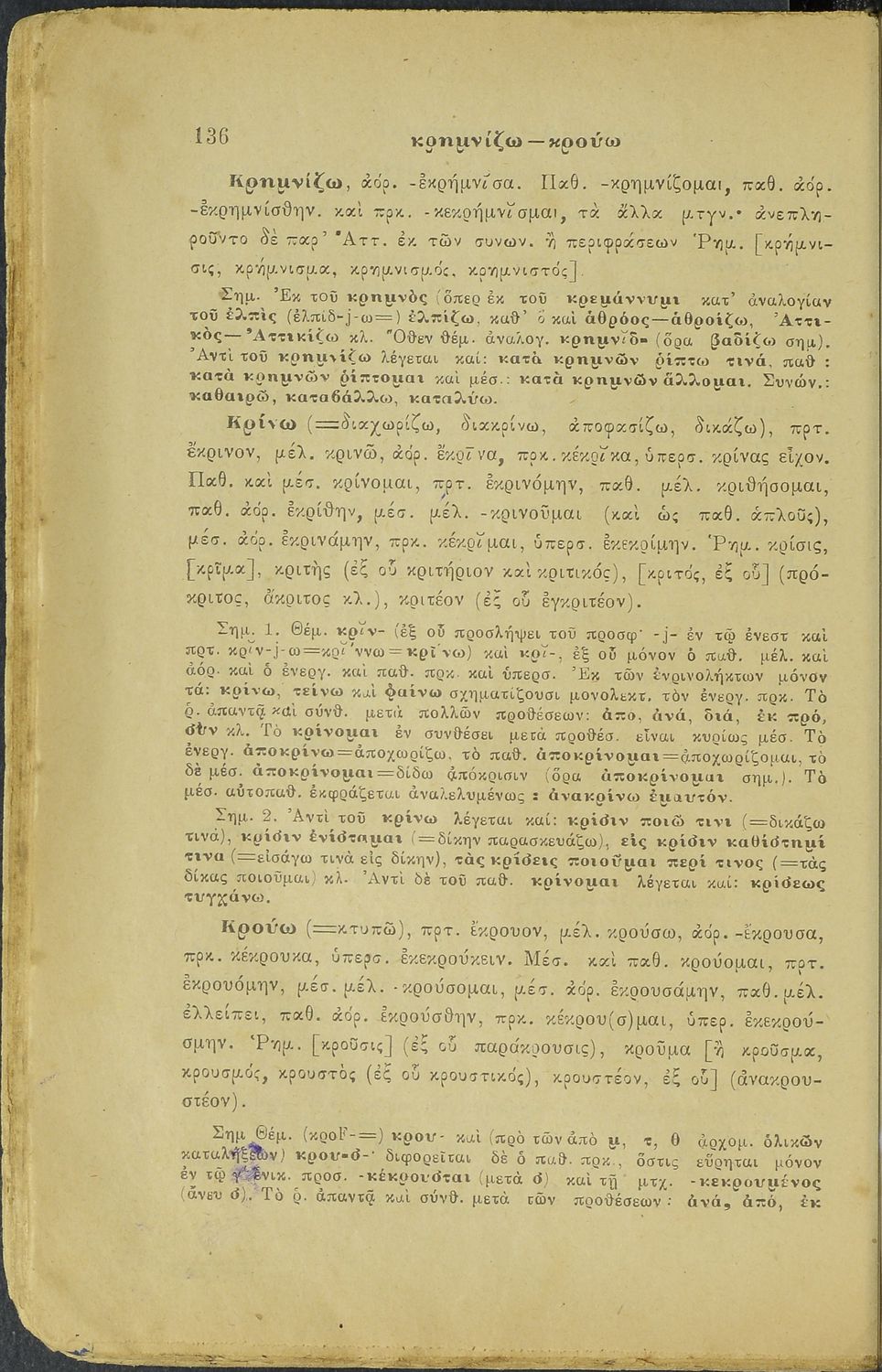 LDR 01428 2200205 4500 035 ## _a01-18524 040 ## _aΙνστιτούτο Εκπαιδευτικής Πολιτικής 041 ## _ael 100 ## _aΙωάν. Θ. Ρώσσης 110 ## _a18524 245 0# _aΛεξικόν Ανωμάλων Ρημάτων της αρχαίας ελληνικής γλώσσης. Μάλιστα δε της Αττικής διαλέκτου μετά ποικίλων προτύπων τεχνολογικών σημειώσεων. Προς χρήσιν των μαθητών των Ελλ. Σχολείων, Παρθεναγωγείων και Γυμνασίων 250 ## _a4η Έκδοση 260 ## _aΑθήνα _bΤυπογραφείο: Παρ. Λεώνης _c1914 300 ## _a272 520 ## _aΜαθητικό βοήθημα Αρχαίων Ελληνικών για τα Ελληνικά Σχολεία, Παρθεναγωγεία και Γυμνάσια που περιλαμβάνει γραμματική της αρχαίας ελληνικής και κατάλογο ανωμάλων ρημάτων. 521 ## _aΕλληνικό Σχολείο / Παρθεναγωγείο / Γυμνάσιο 522 ## _aΕλλάδα 546 ## _aΚαθαρεύουσα 563 ## _aΜαλακό Εξώφυλλο 650 #4 _aΑπαρέμφατο _aΑρχαία _aΕνεργητική φωνή _aΜέση φωνή _aΡήματα _aΧρόνοι