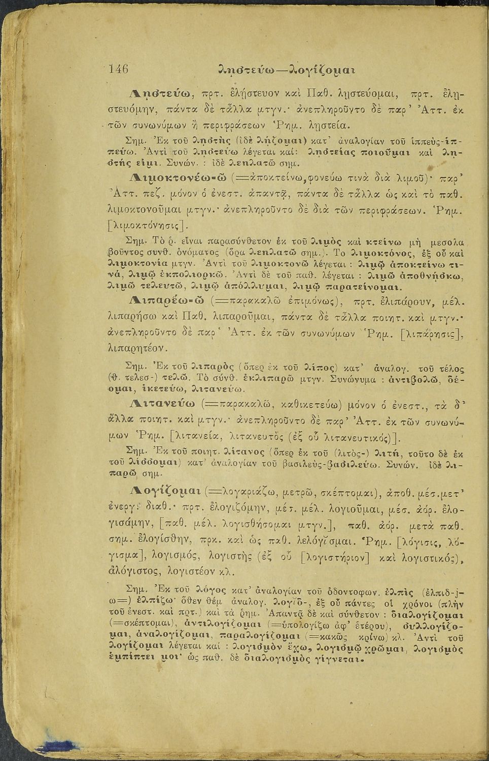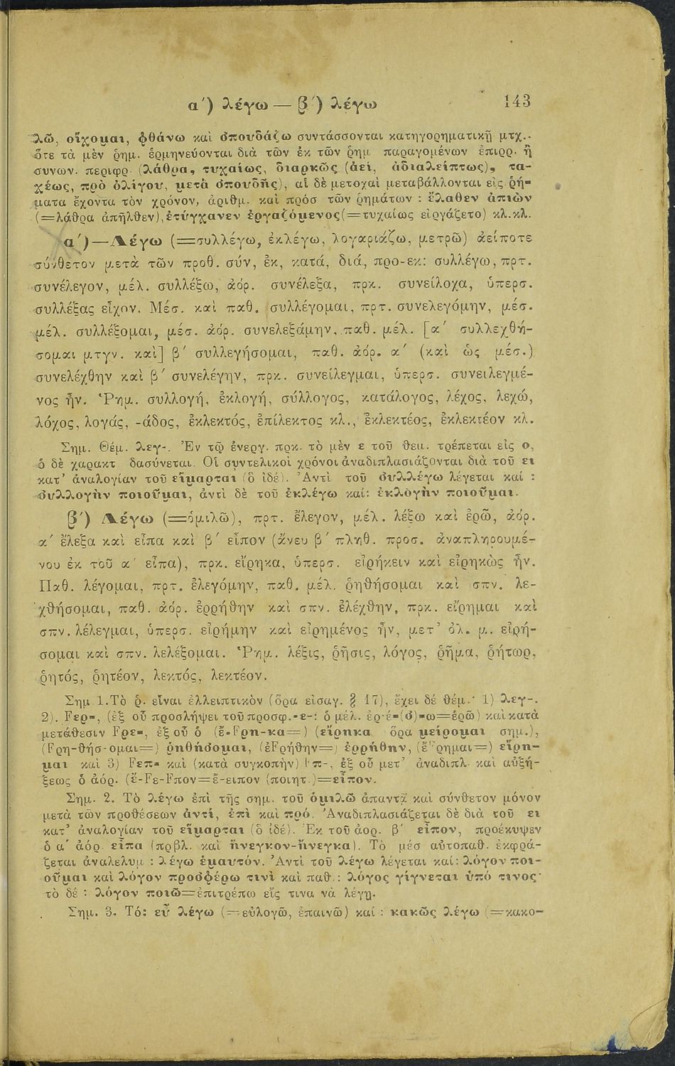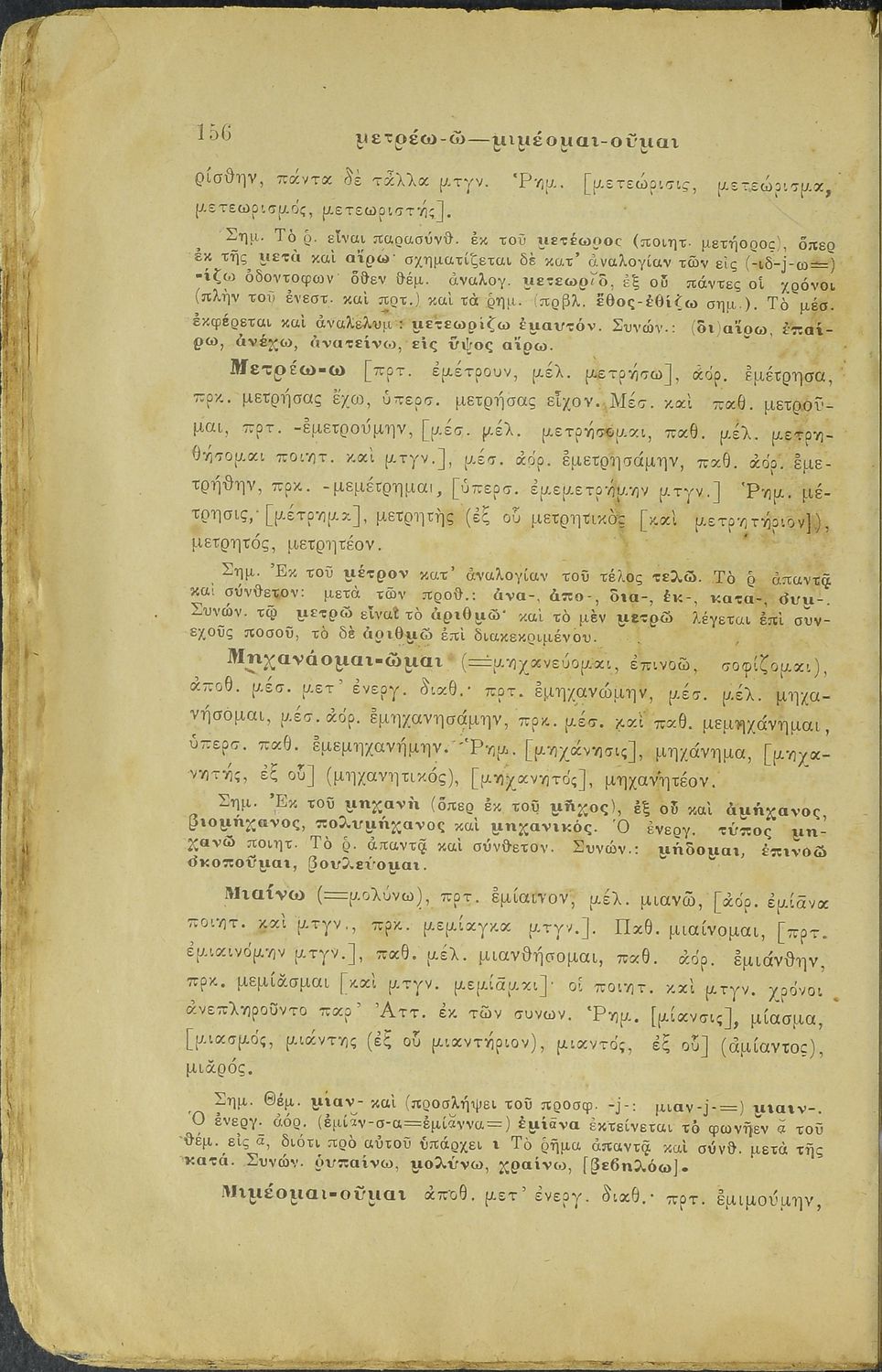 Μαθητικό βοήθημα Αρχαίων Ελληνικών για τα Ελληνικά Σχολεία, Παρθεναγωγεία και Γυμνάσια που περιλαμβάνει γραμματική της αρχαίας ελληνικής και κατάλογο ανωμάλων ρημάτων.