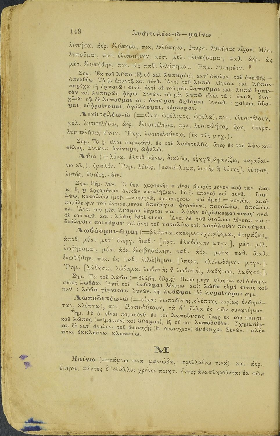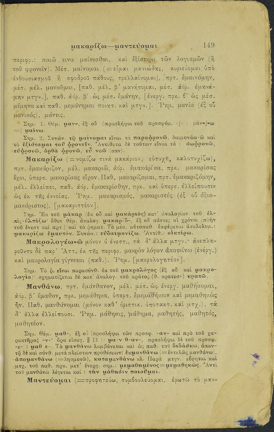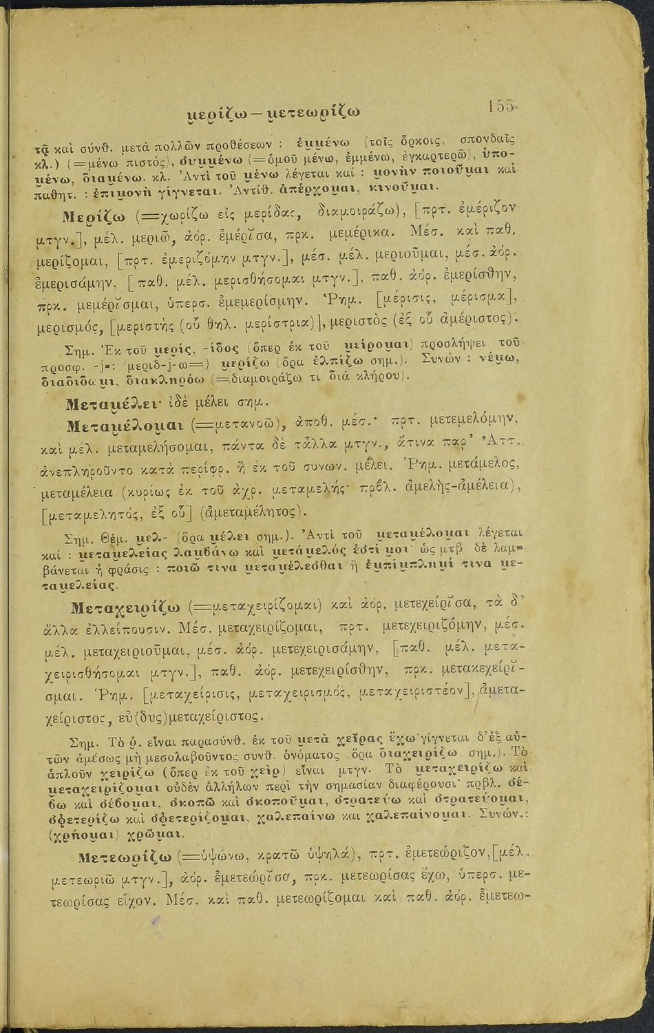 Μαθητικό βοήθημα Αρχαίων Ελληνικών για τα Ελληνικά Σχολεία, Παρθεναγωγεία και Γυμνάσια που περιλαμβάνει γραμματική της αρχαίας ελληνικής και κατάλογο ανωμάλων ρημάτων.