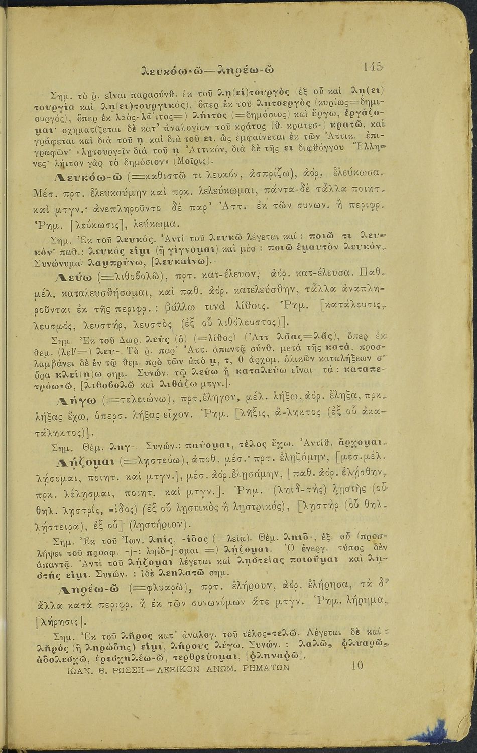 Λεξικόν Ανωμάλων Ρημάτων της αρχαίας ελληνικής γλώσσης. Μάλιστα δε της Αττικής διαλέκτου μετά ποικίλων προτύπων τεχνολογικών σημειώσεων. Προς χρήσιν των μαθητών των Ελλ. Σχολείων, Παρθεναγωγείων και Γυμνασίων