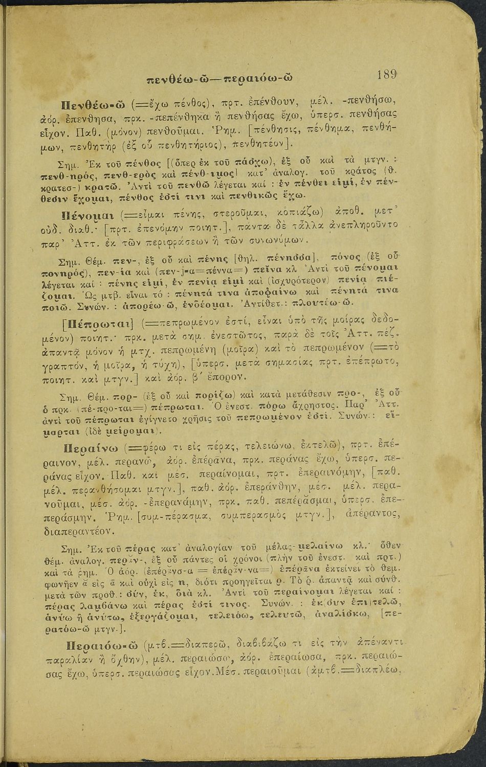 Μαθητικό βοήθημα Αρχαίων Ελληνικών για τα Ελληνικά Σχολεία, Παρθεναγωγεία και Γυμνάσια που περιλαμβάνει γραμματική της αρχαίας ελληνικής και κατάλογο ανωμάλων ρημάτων.