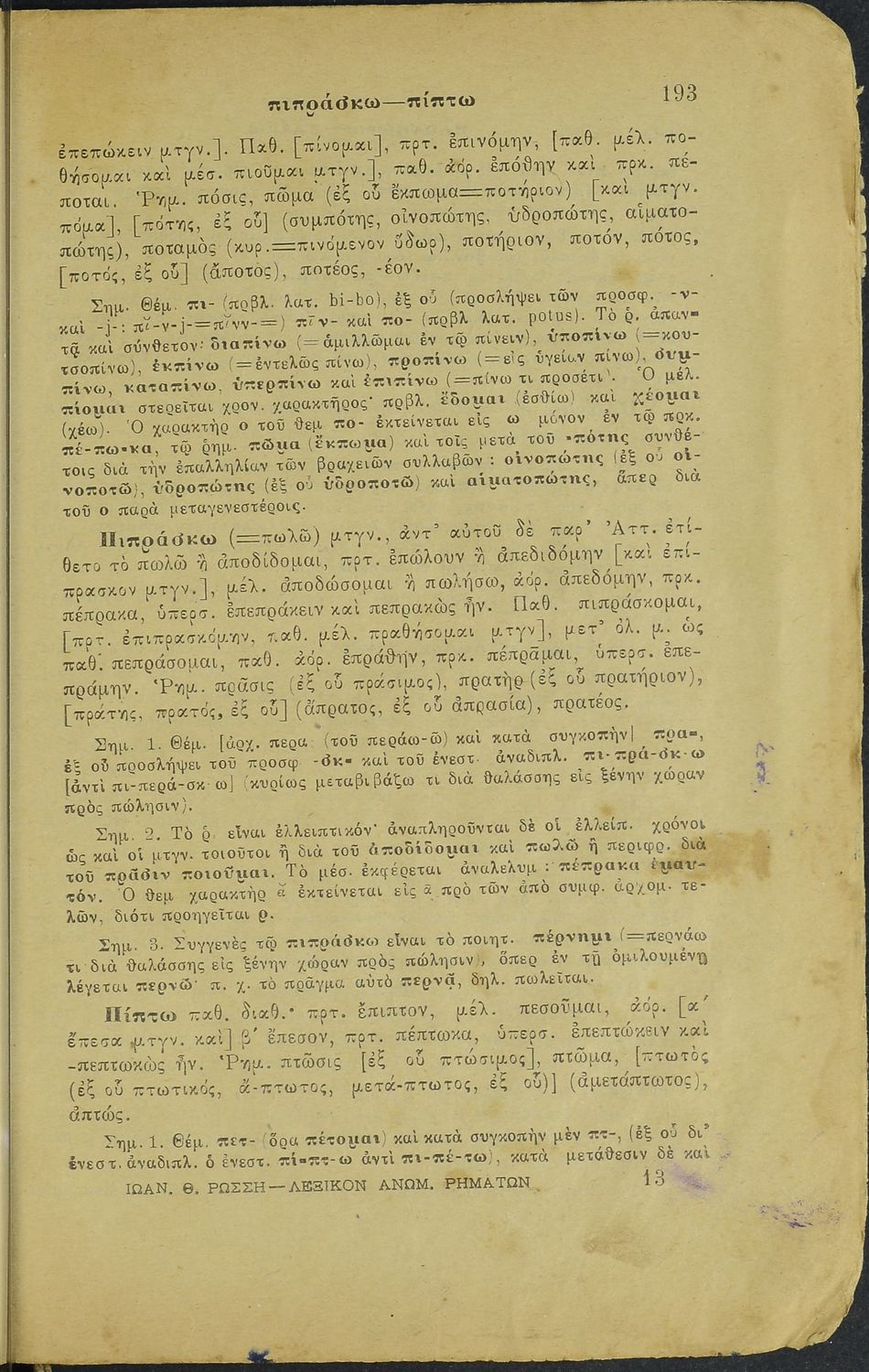 Μαθητικό βοήθημα Αρχαίων Ελληνικών για τους μαθητές των Ημιγυμνασίων, Παρθεναγωγείων, Αστικών σχολείων και Παρθεναγωγείων που περιλαμβάνει κατάλογο ανωμάλων ρημάτων και σειρά σημειώσεων και ασκήσεων για ...