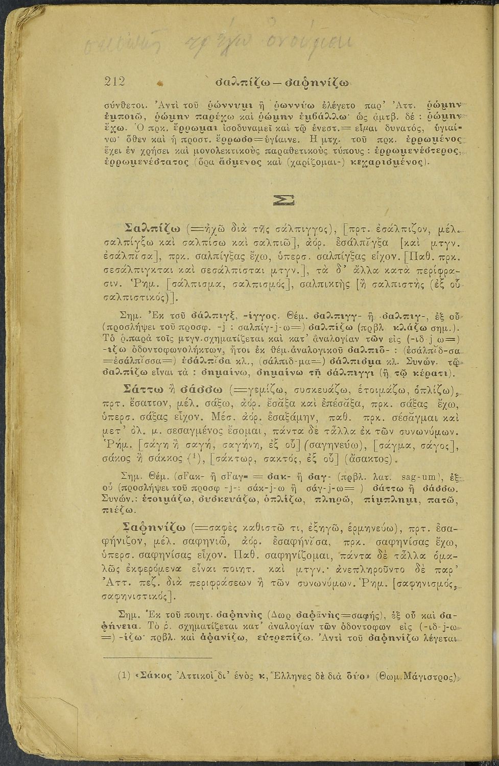 Μαθητικό βοήθημα Αρχαίων Ελληνικών Ελληνικού Σχολείου και Παρθεναγωγείου που περιέχει κατάλογο των ανώμαλων ρημάτων και ονομάτων της αρχαίας ελληνικής γραμματείας και ετυμολογικές, γραμματικές και ...