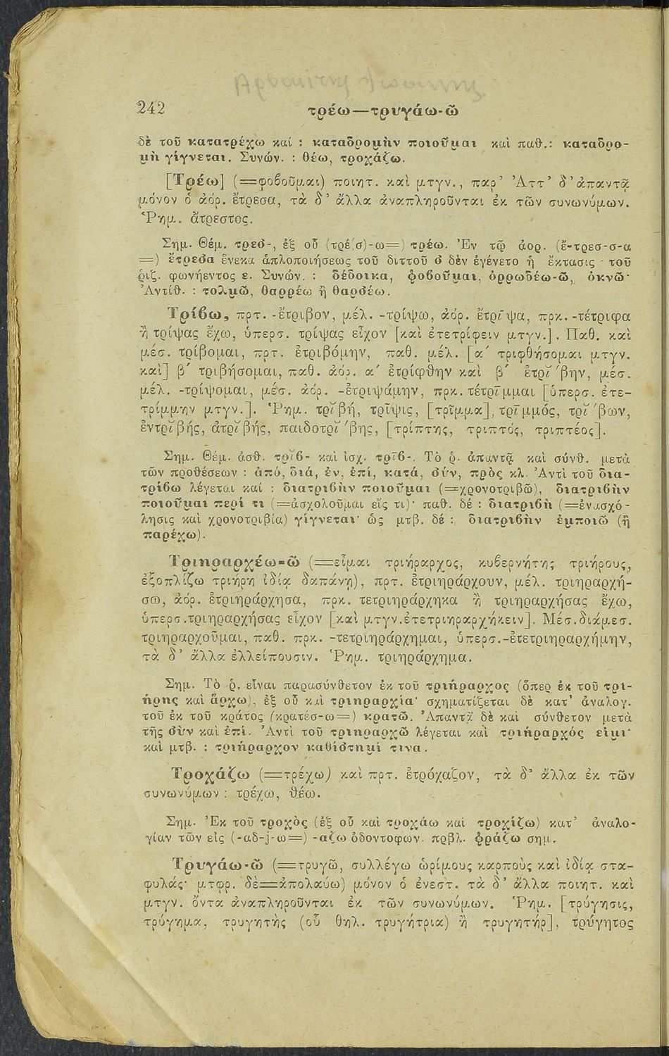Μαθητικό βοήθημα Αρχαίων Ελληνικών για τους μαθητές των Ημιγυμνασίων, Παρθεναγωγείων, Αστικών σχολείων και Παρθεναγωγείων που περιλαμβάνει κατάλογο ανωμάλων ρημάτων και σειρά σημειώσεων και ασκήσεων για ...