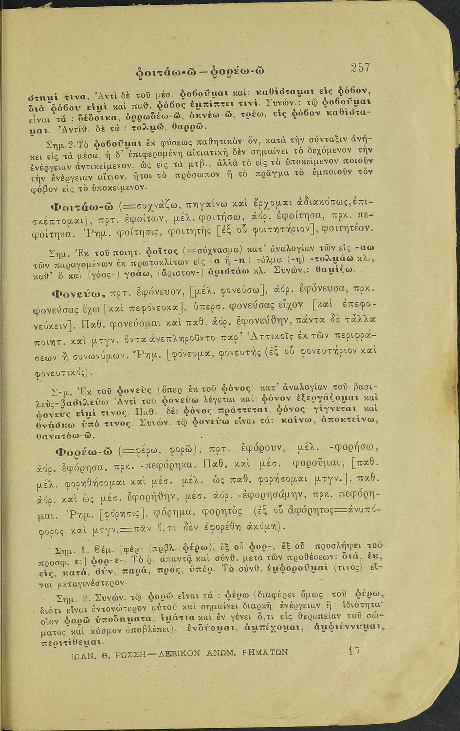 Λεξικόν Ανωμάλων Ρημάτων της αρχαίας ελληνικής γλώσσης. Μάλιστα δε της Αττικής διαλέκτου μετά ποικίλων προτύπων τεχνολογικών σημειώσεων. Προς χρήσιν των μαθητών των Ελλ. Σχολείων, Παρθεναγωγείων και Γυμνασίων
