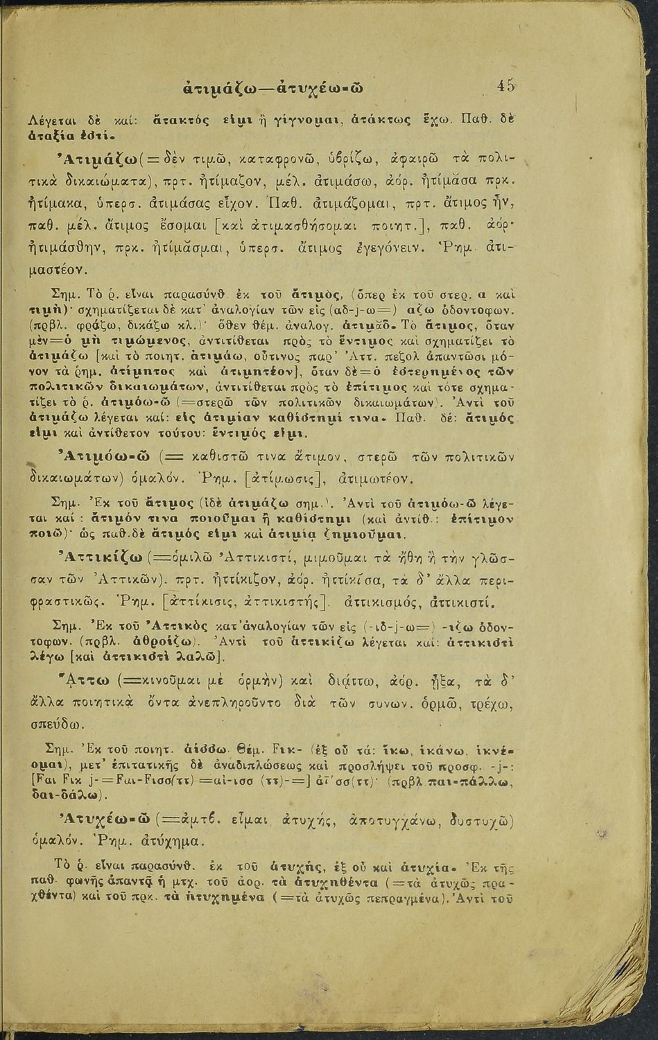 Μαθητικό βοήθημα Αρχαίων Ελληνικών για τα Γυμνάσια, Παρθεναγωγεία και Ελληνικά σχολεία το οποίο περιέχει κατάλογο ανωμάλων ρημάτων της Αττικής διαλέκτου.