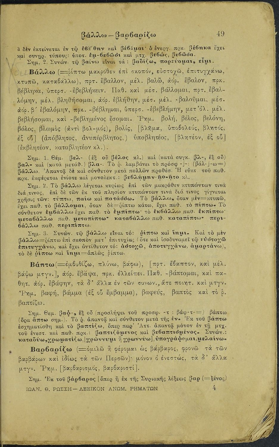 Λεξικόν Ανωμάλων Ρημάτων της αρχαίας ελληνικής γλώσσης. Μάλιστα δε της Αττικής διαλέκτου μετά ποικίλων προτύπων τεχνολογικών σημειώσεων. Προς χρήσιν των μαθητών των Ελλ. Σχολείων, Παρθεναγωγείων και Γυμνασίων