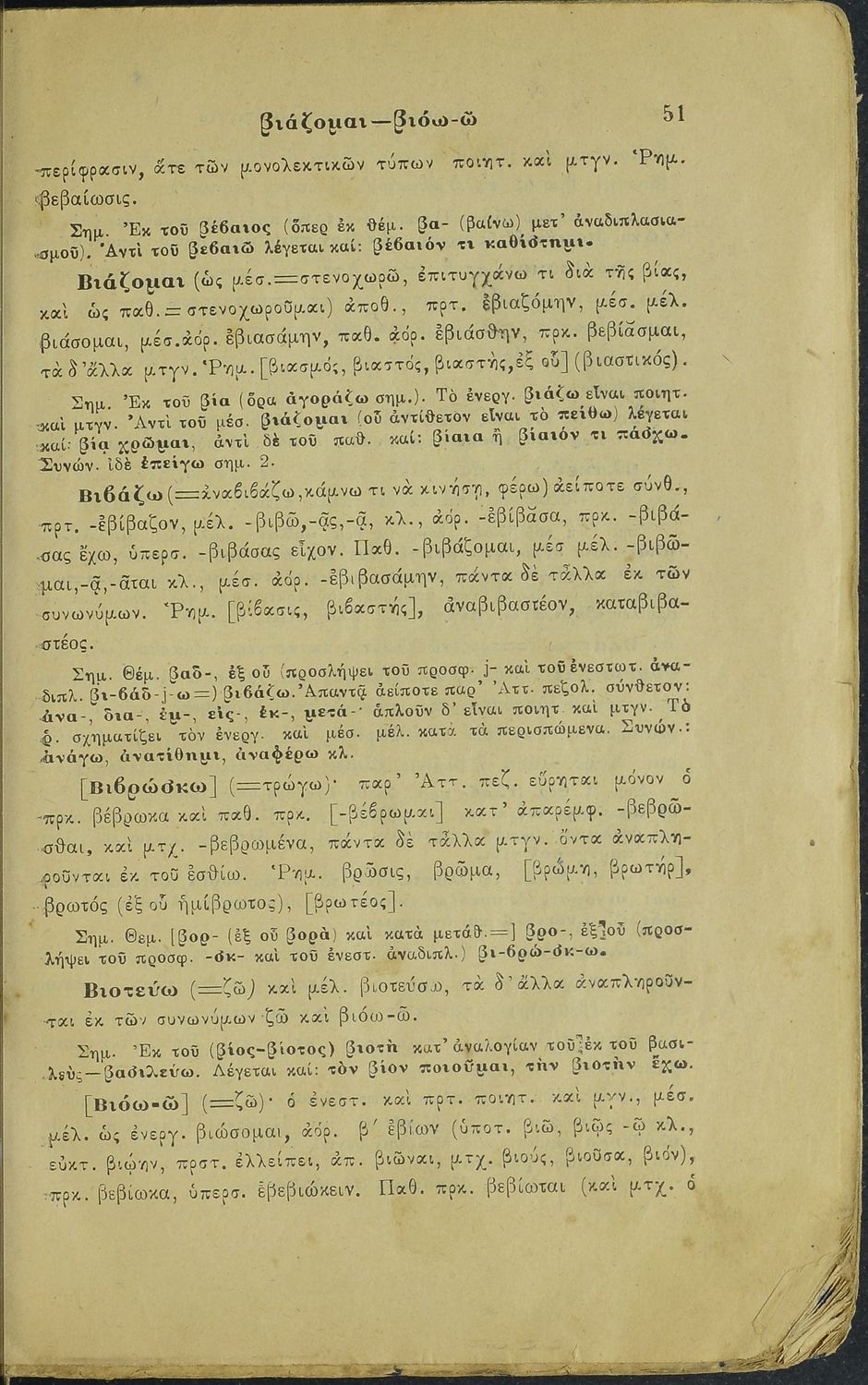 Μαθητικό βοήθημα Αρχαίων Ελληνικών για τα Ελληνικά Σχολεία, Παρθεναγωγεία και Γυμνάσια που περιλαμβάνει γραμματική της αρχαίας ελληνικής και κατάλογο ανωμάλων ρημάτων.