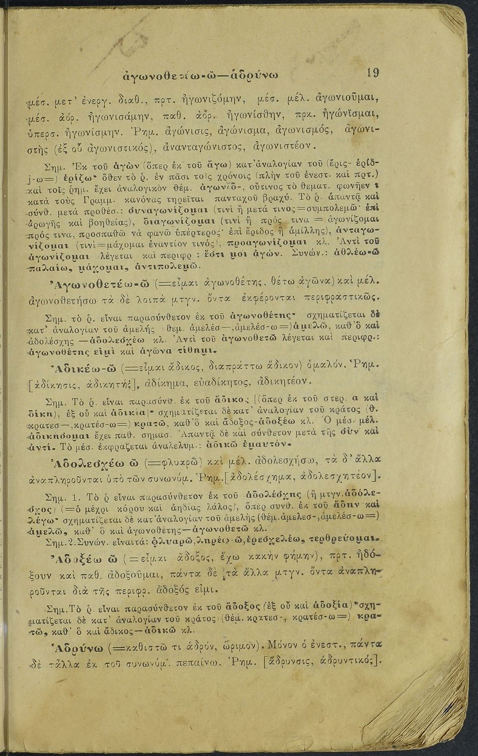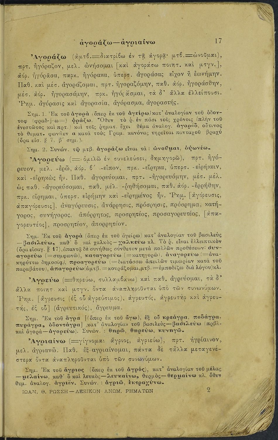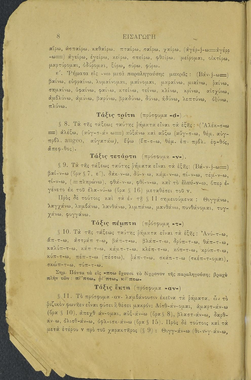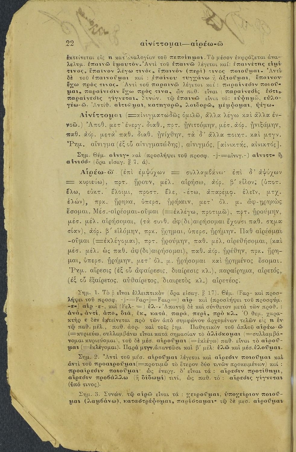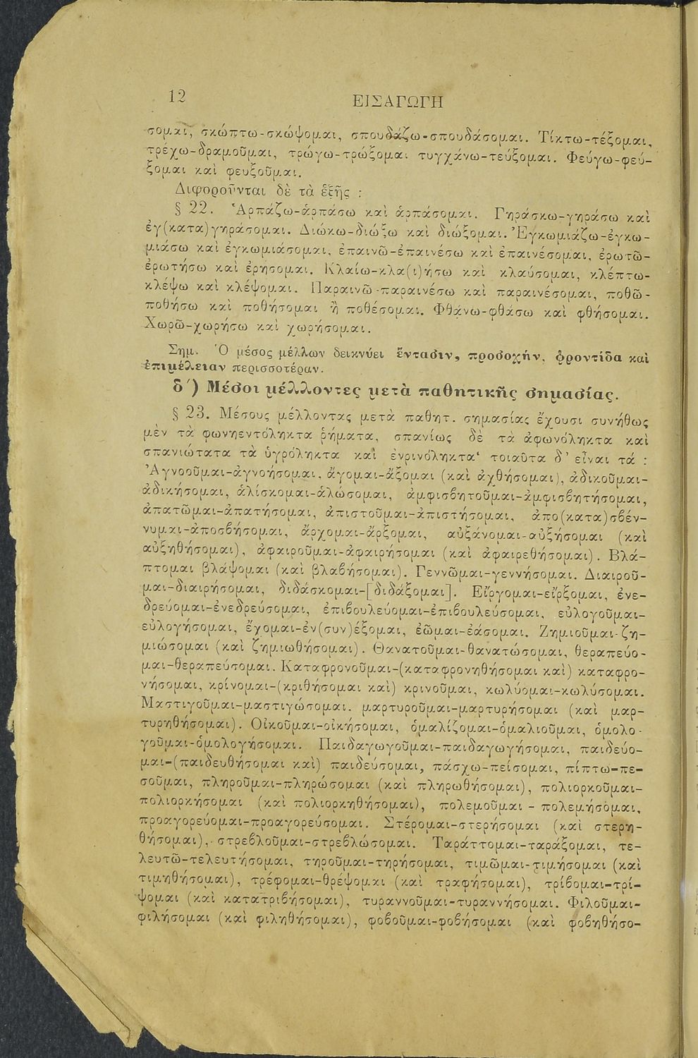 Μαθητικό βοήθημα Αρχαίων Ελληνικών για τα Ελληνικά Σχολεία, Παρθεναγωγεία και Γυμνάσια που περιλαμβάνει γραμματική της αρχαίας ελληνικής και κατάλογο ανωμάλων ρημάτων.
