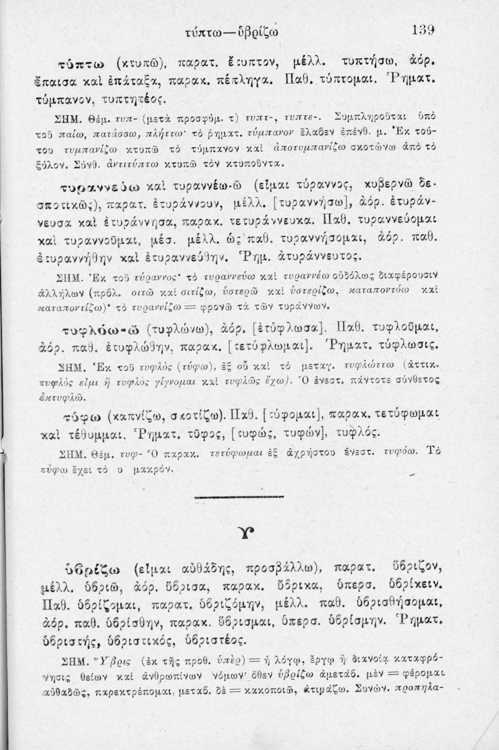 Μαθητικό βοήθημα Αρχαίων Ελληνικών για τις Α΄, Β΄, Γ' Ελληνικού Σχολείου και Παρθεναγωγείου για το μάθημα των Αρχαίων που περιλαμβάνει λεξικό ανωμάλων ρημάτων και γραμματικές σημειώσεις