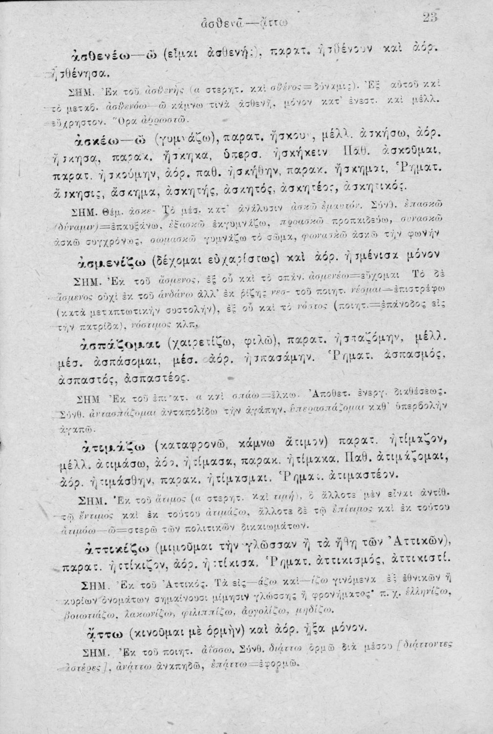 Μαθητικό βοήθημα Αρχαίων Ελληνικών για τα Γυμνάσια, Παρθεναγωγεία και Ελληνικά σχολεία το οποίο περιέχει κατάλογο ανωμάλων ρημάτων της Αττικής διαλέκτου.