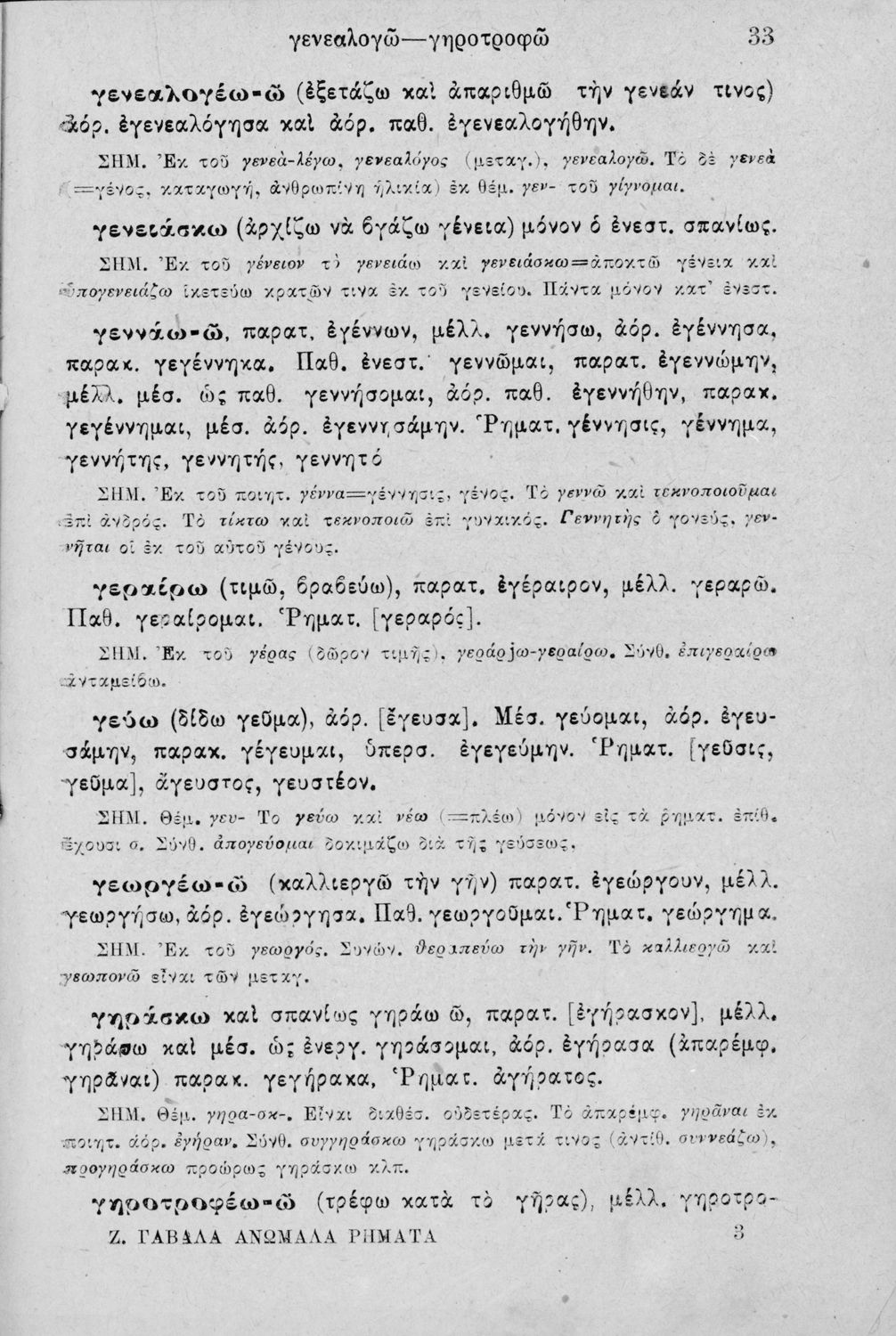 Μαθητικό βοήθημα Αρχαίων Ελληνικών για τις Α΄, Β΄, Γ' Ελληνικού Σχολείου και Παρθεναγωγείου για το μάθημα των Αρχαίων που περιλαμβάνει λεξικό ανωμάλων ρημάτων και γραμματικές σημειώσεις