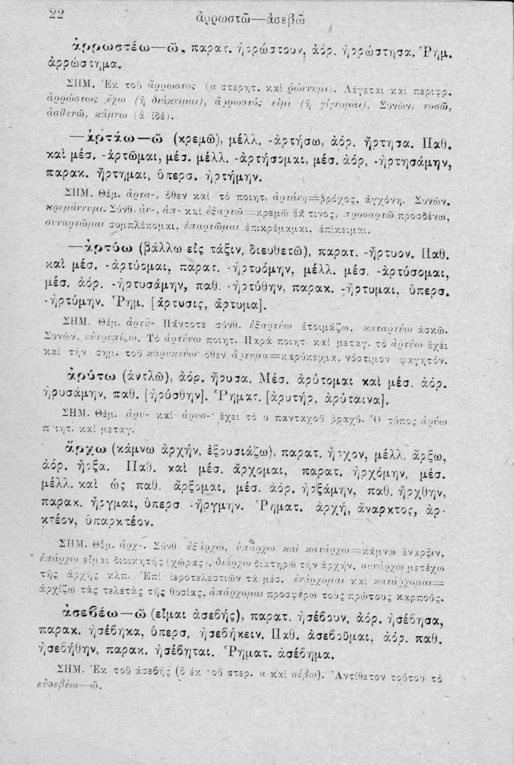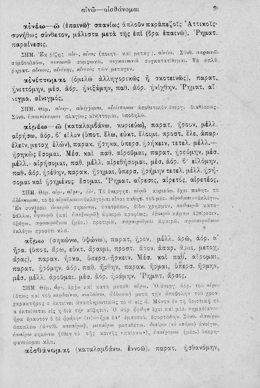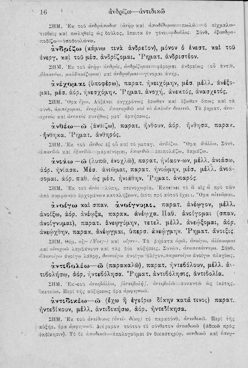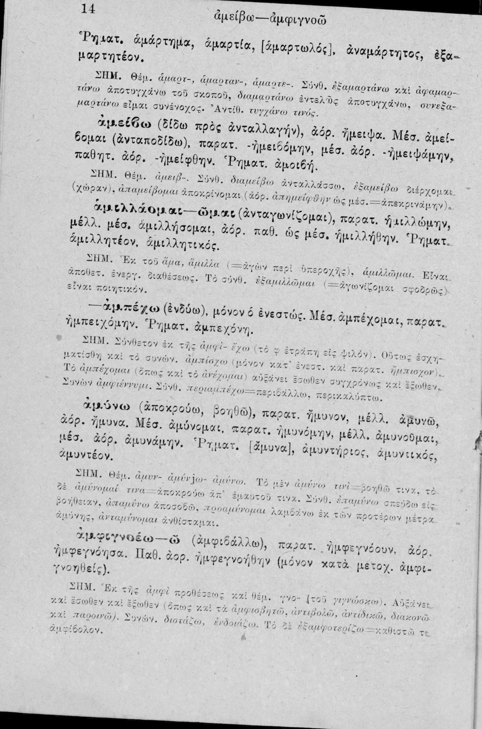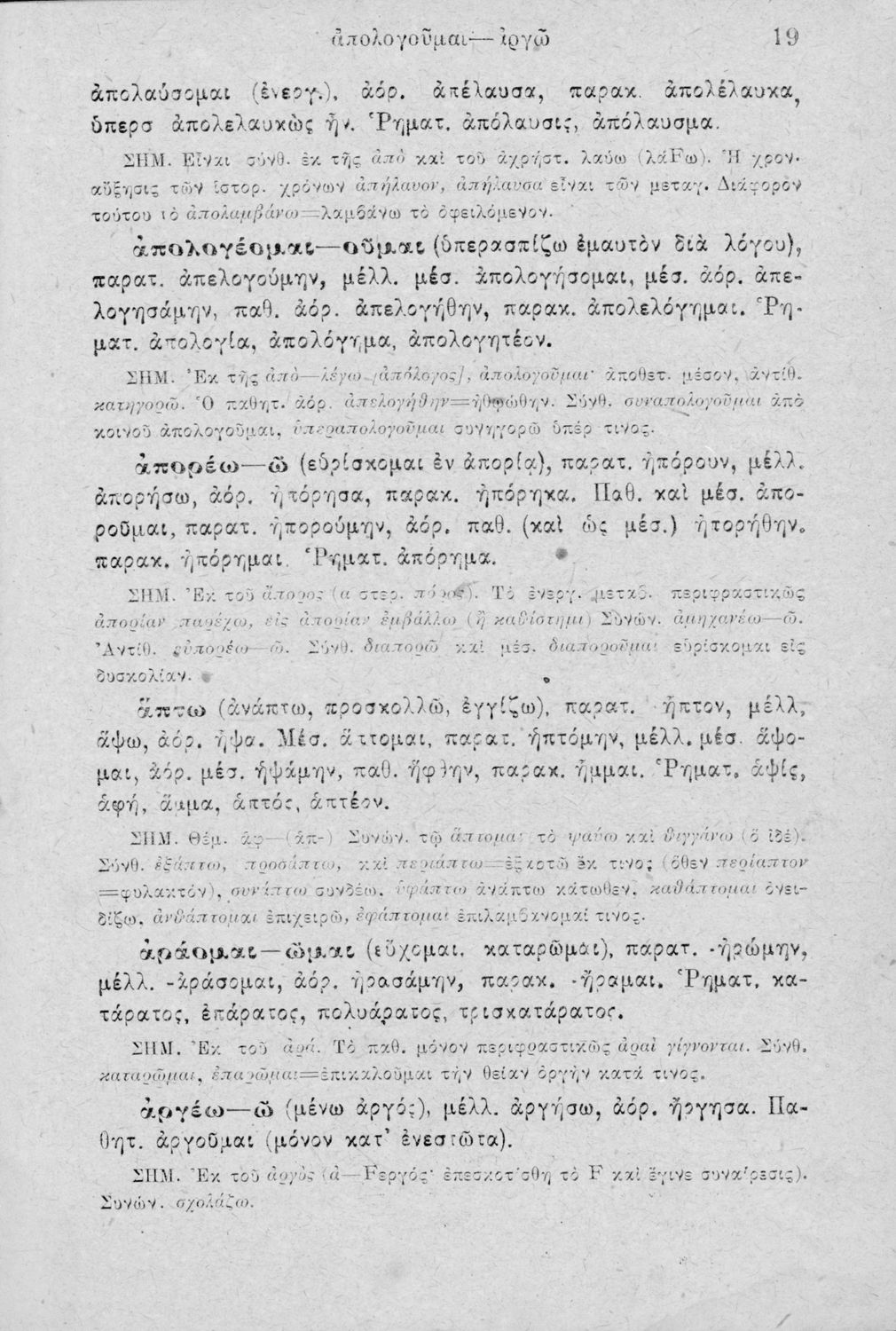 Μαθητικό βοήθημα Αρχαίων Ελληνικών για τις Α΄, Β΄, Γ' Ελληνικού Σχολείου και Παρθεναγωγείου για το μάθημα των Αρχαίων που περιλαμβάνει λεξικό ανωμάλων ρημάτων και γραμματικές σημειώσεις