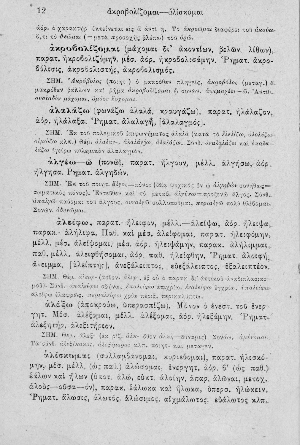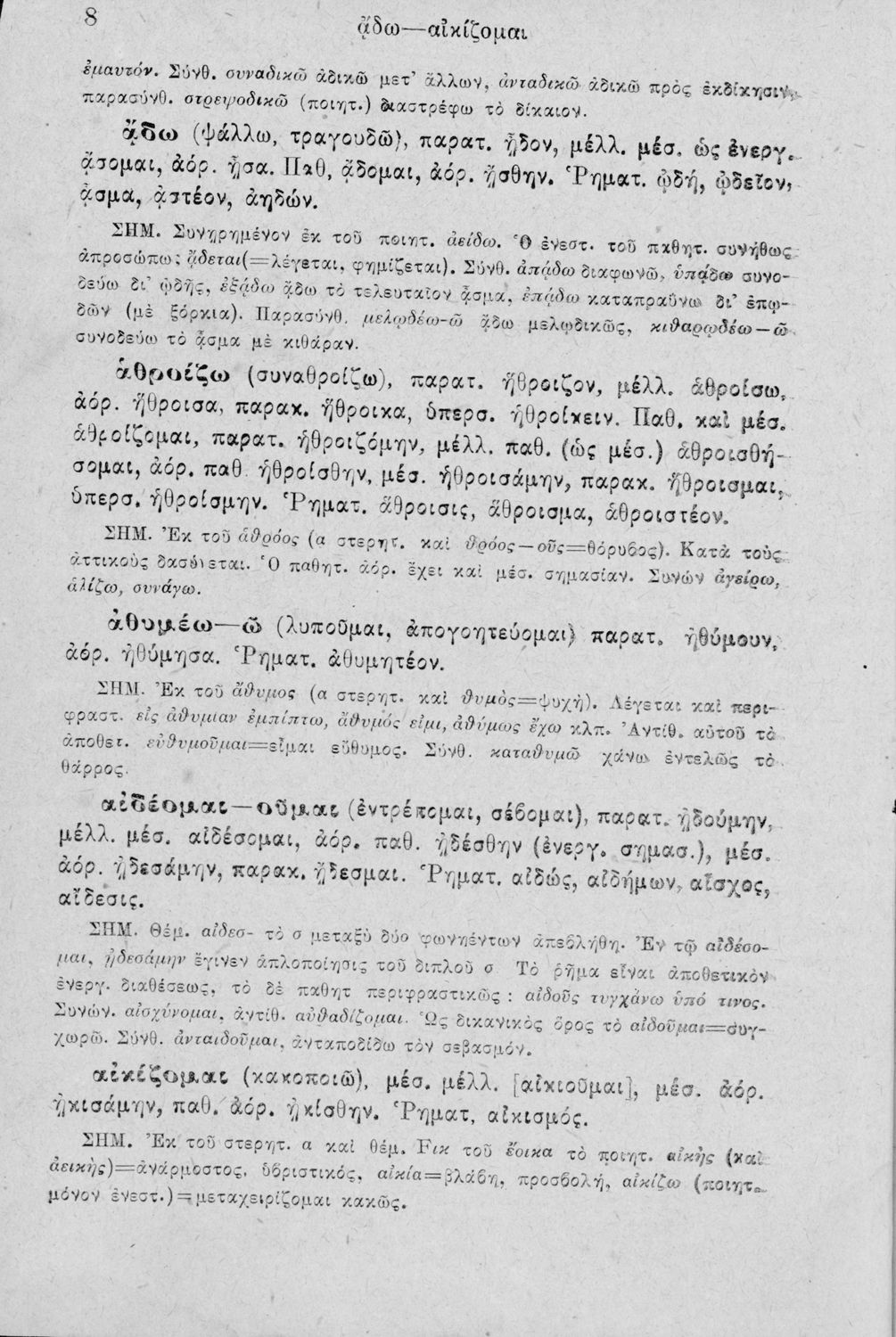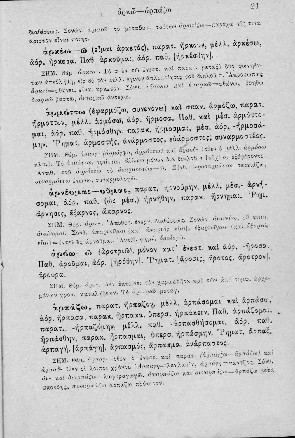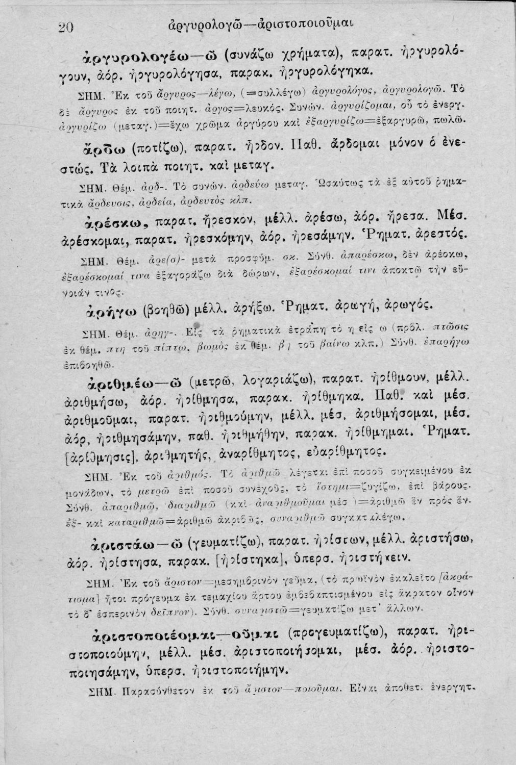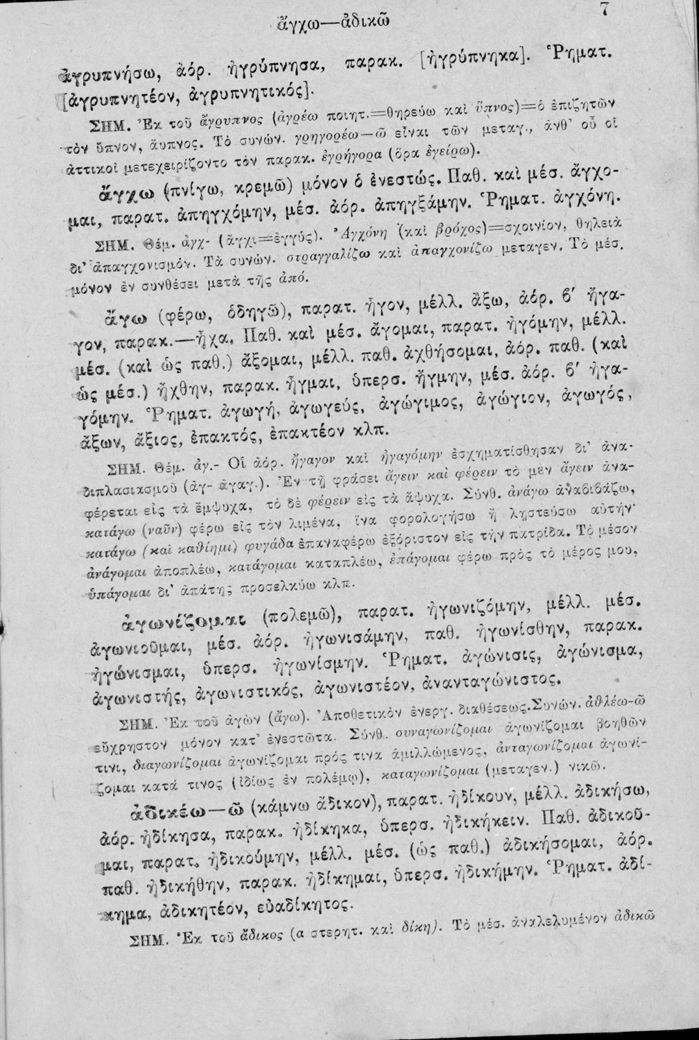 Μαθητικό βοήθημα Αρχαίων Ελληνικών για τις Α΄, Β΄, Γ' Ελληνικού Σχολείου και Παρθεναγωγείου για το μάθημα των Αρχαίων που περιλαμβάνει λεξικό ανωμάλων ρημάτων και γραμματικές σημειώσεις