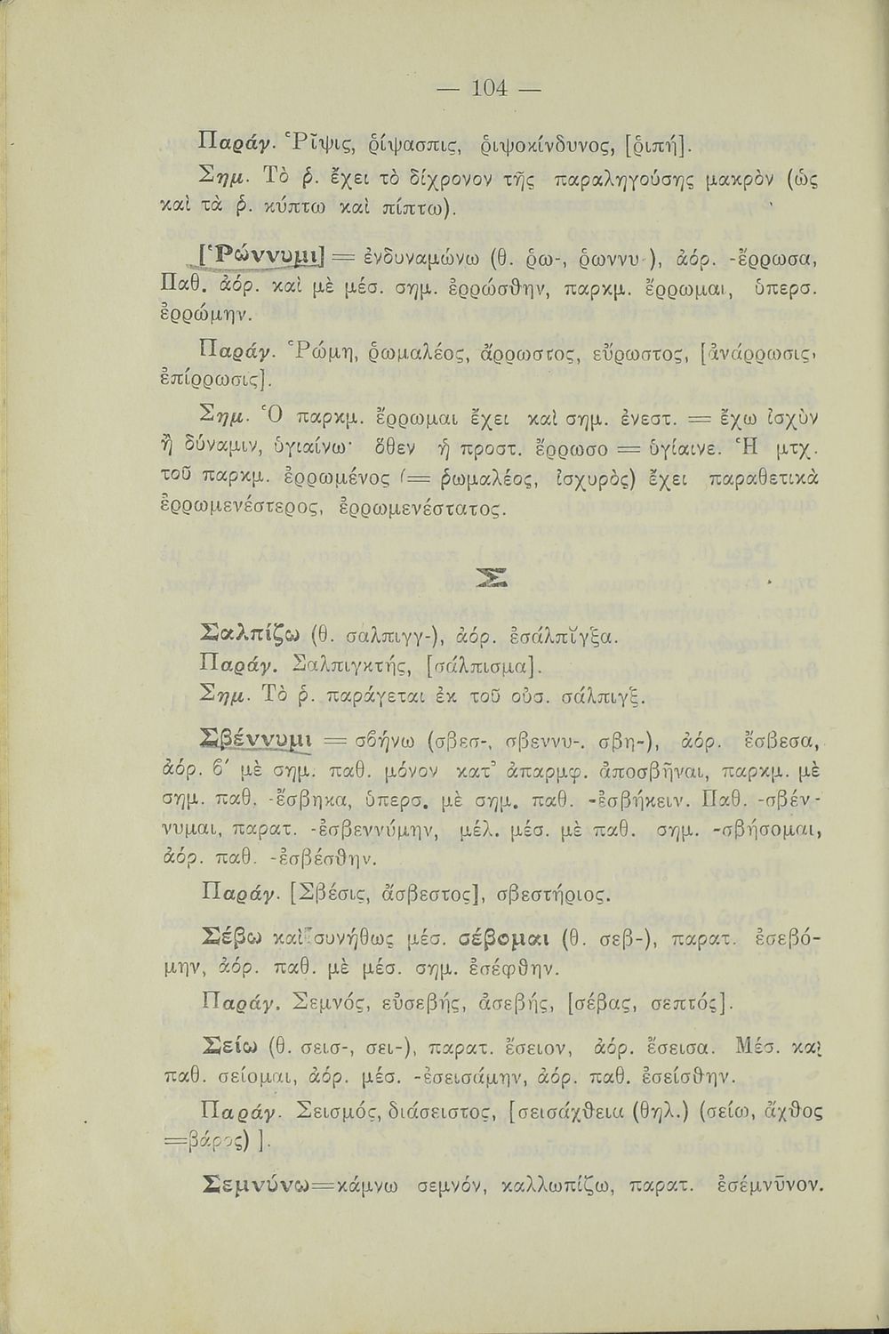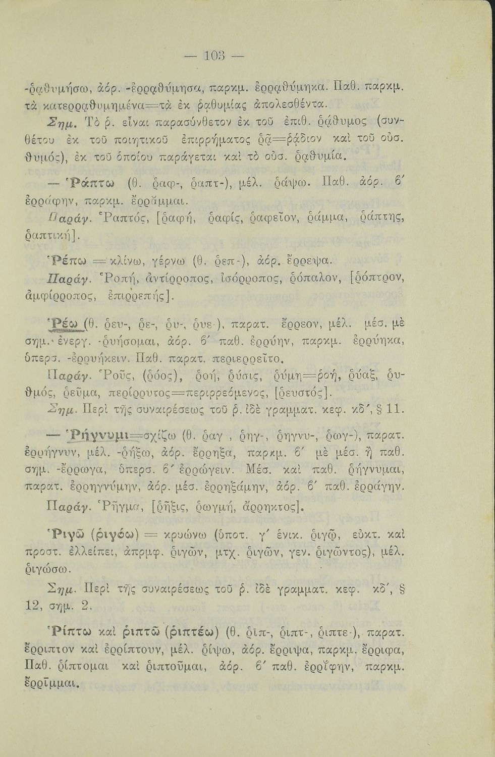 Μαθητικό βοήθημα Αρχαίων Ελληνικών για τα Ελληνικά Σχολεία και Παρθεναγωγεία που περιλαμβάνει τα ανώμαλα και ελλιπή ρήματα της αττικής διαλέκτου.