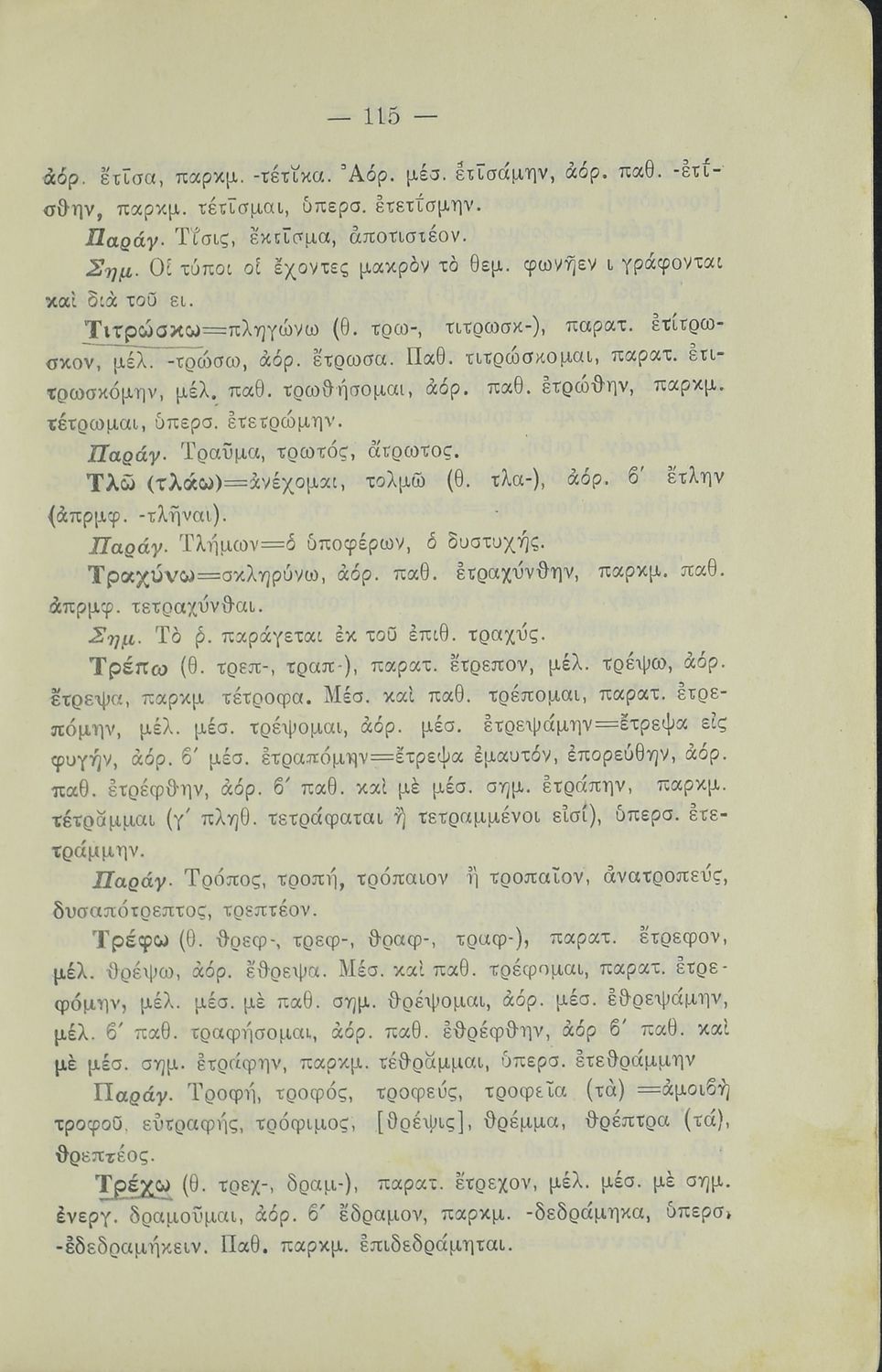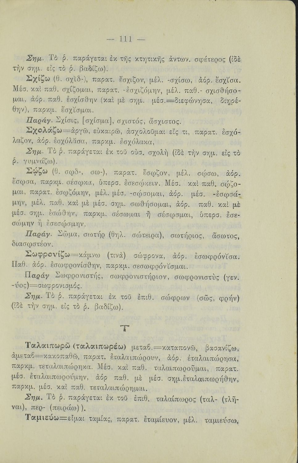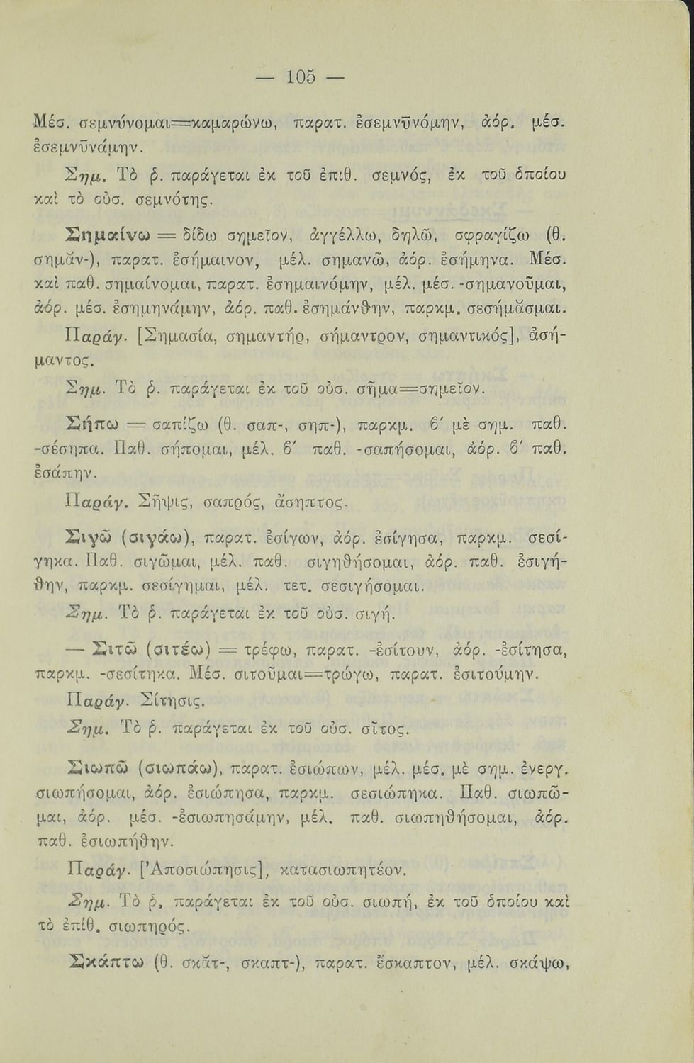 Μαθητικό βοήθημα Αρχαίων Ελληνικών για τα Γυμνάσια, Παρθεναγωγεία και Ελληνικά σχολεία το οποίο περιέχει κατάλογο ανωμάλων ρημάτων της Αττικής διαλέκτου.
