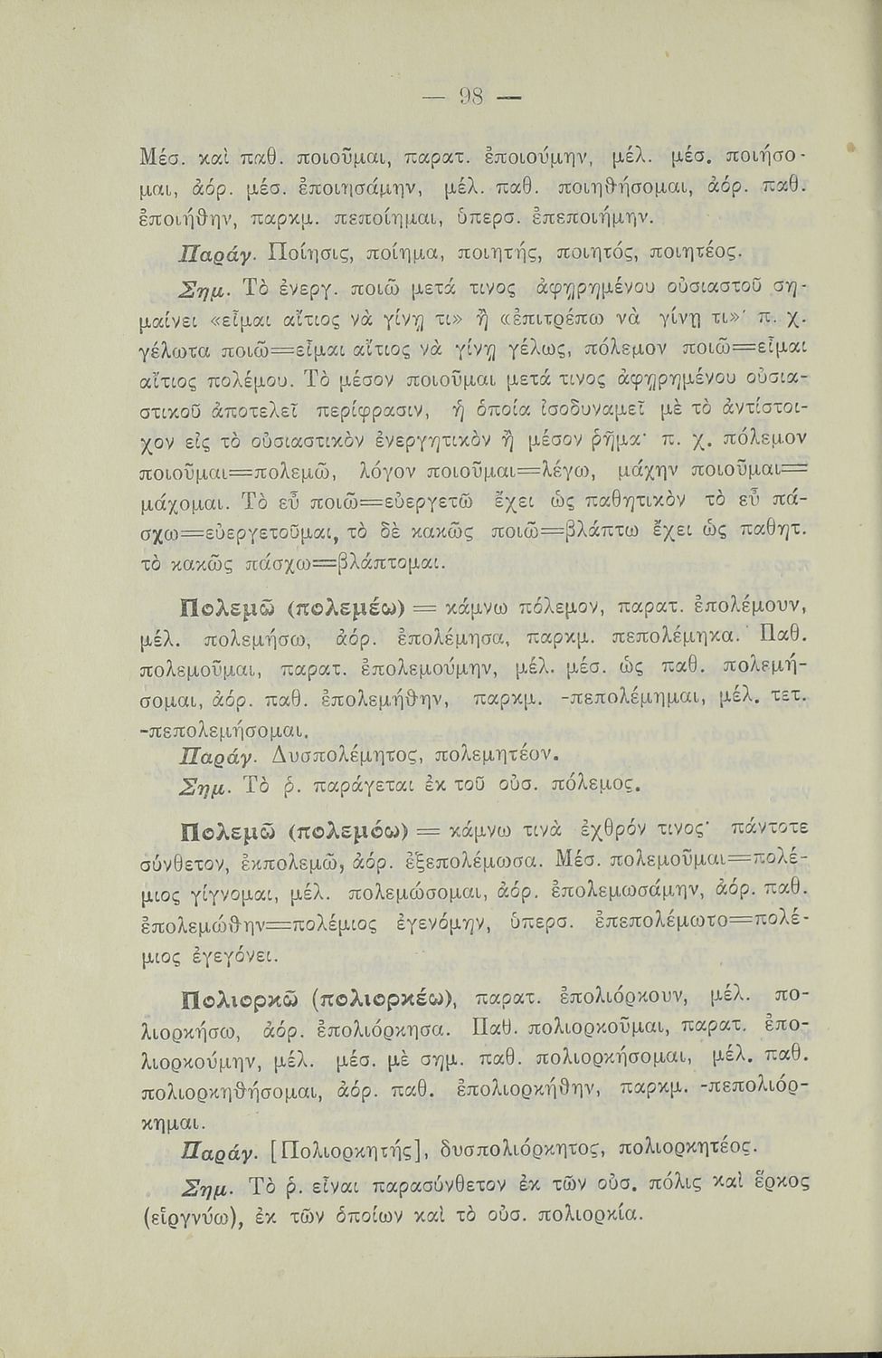 LDR 00989 2200205 4500 035 ## _a01-18526 040 ## _aΙνστιτούτο Εκπαιδευτικής Πολιτικής 041 ## _ael 100 ## _aΔημ. Ι. Φιλικός 110 ## _a18526 245 0# _aΑνώμαλα Ρήμα της Αττικής Διαλέκτου. Προς χρήσιν των μαθητών του Γυμνασίου 250 ## _a2η Έκδοση 260 ## _aΑθήνα _bΤυπογραφείο Α. Ζ Διαλήσμας _c1929 300 ## _a128 520 ## _aΜαθητικό βοήθημα Αρχαίων Ελληνικών Γυμνασίου που περιέχει γραμματικές και λεξικολογικές σημειώσεις για τα ανώμαλα ρήματα της αττικής διαλέκτου. 521 ## _aΓυμνάσιο 522 ## _aΕλλάδα 546 ## _aΚαθαρεύουσα 563 ## _aΣκληρό Εξώφυλλο 650 #4 _aΑνώμαλα ρήματα