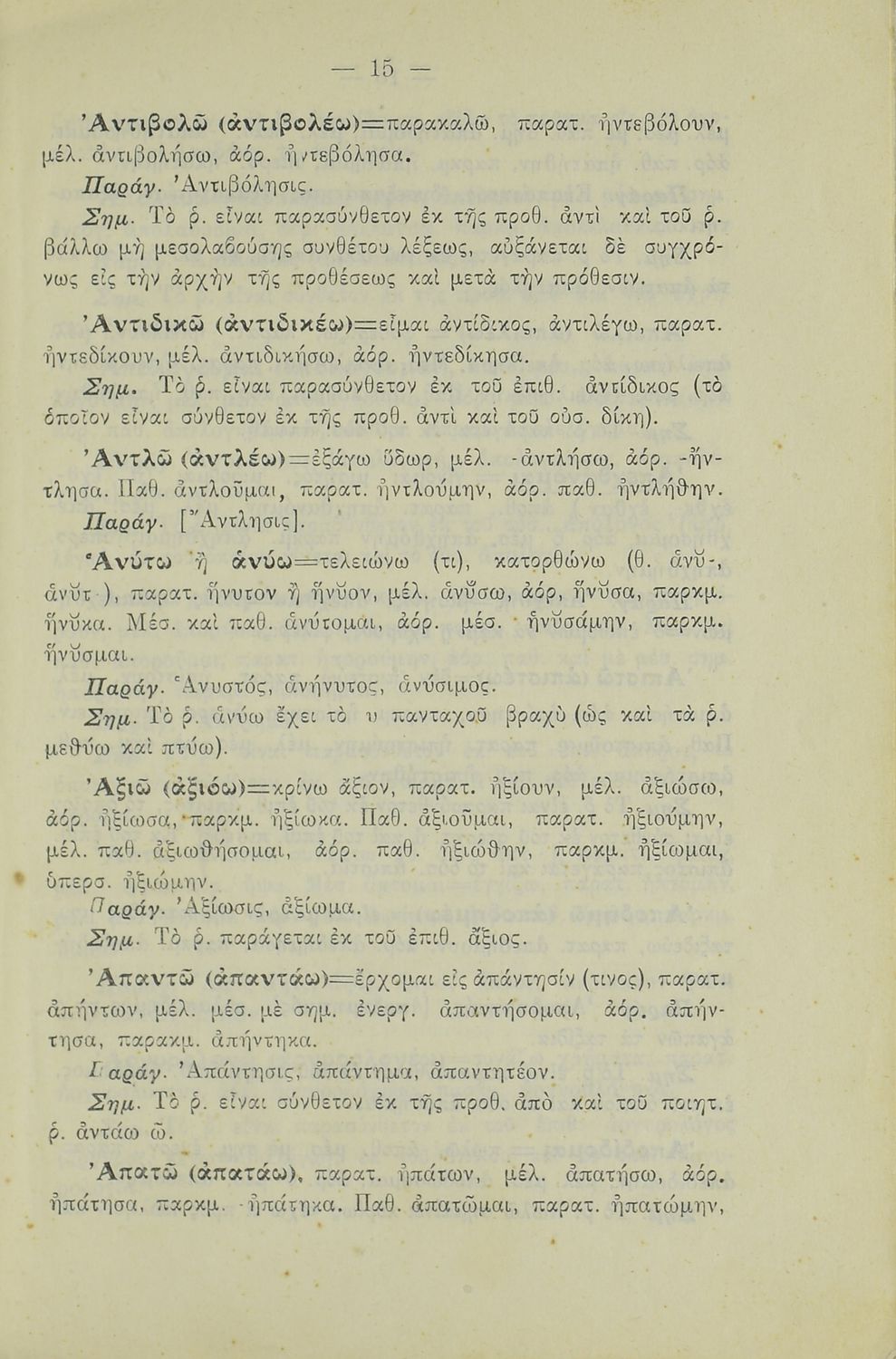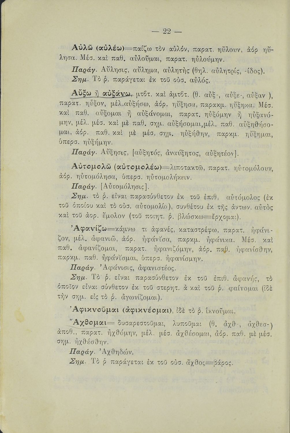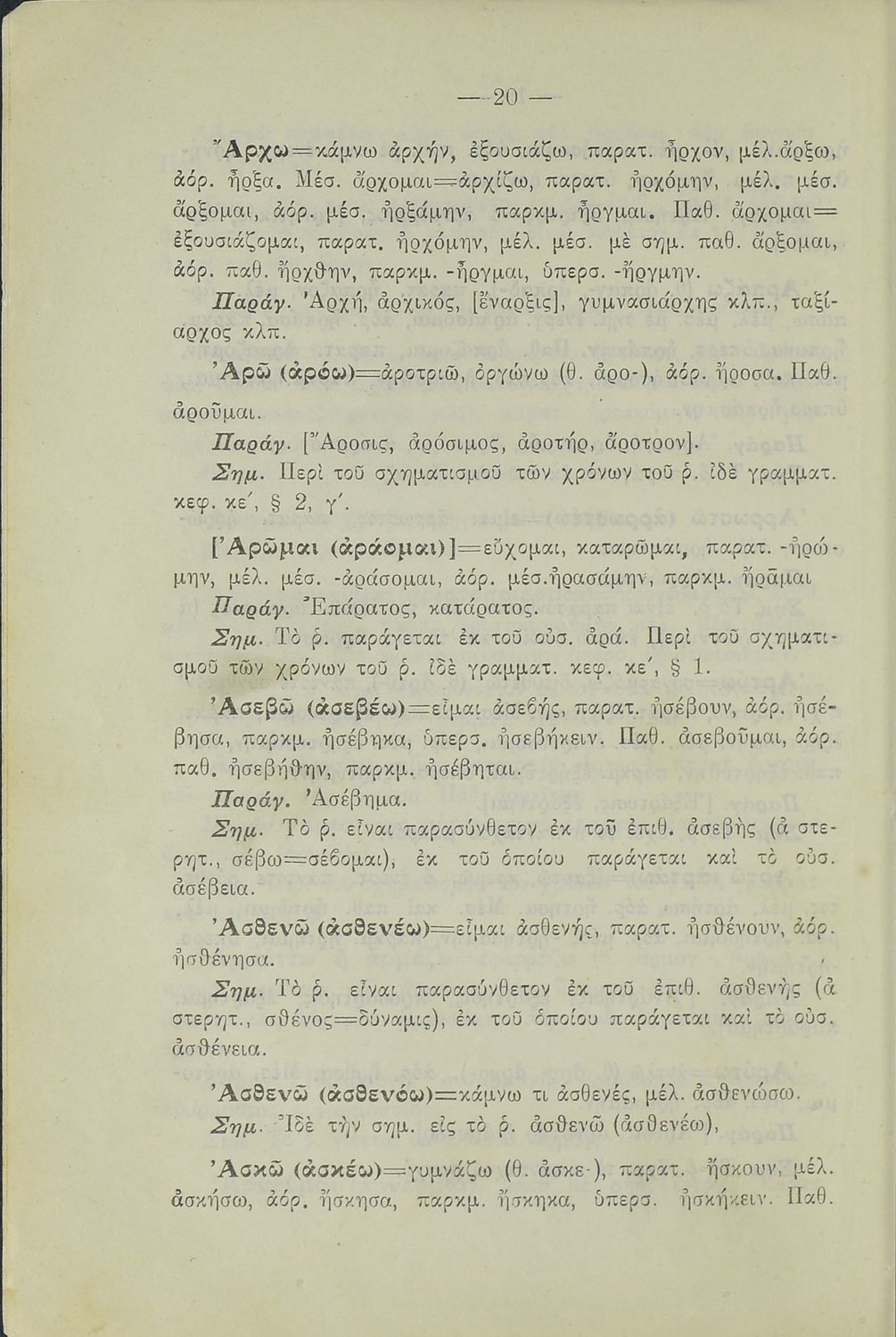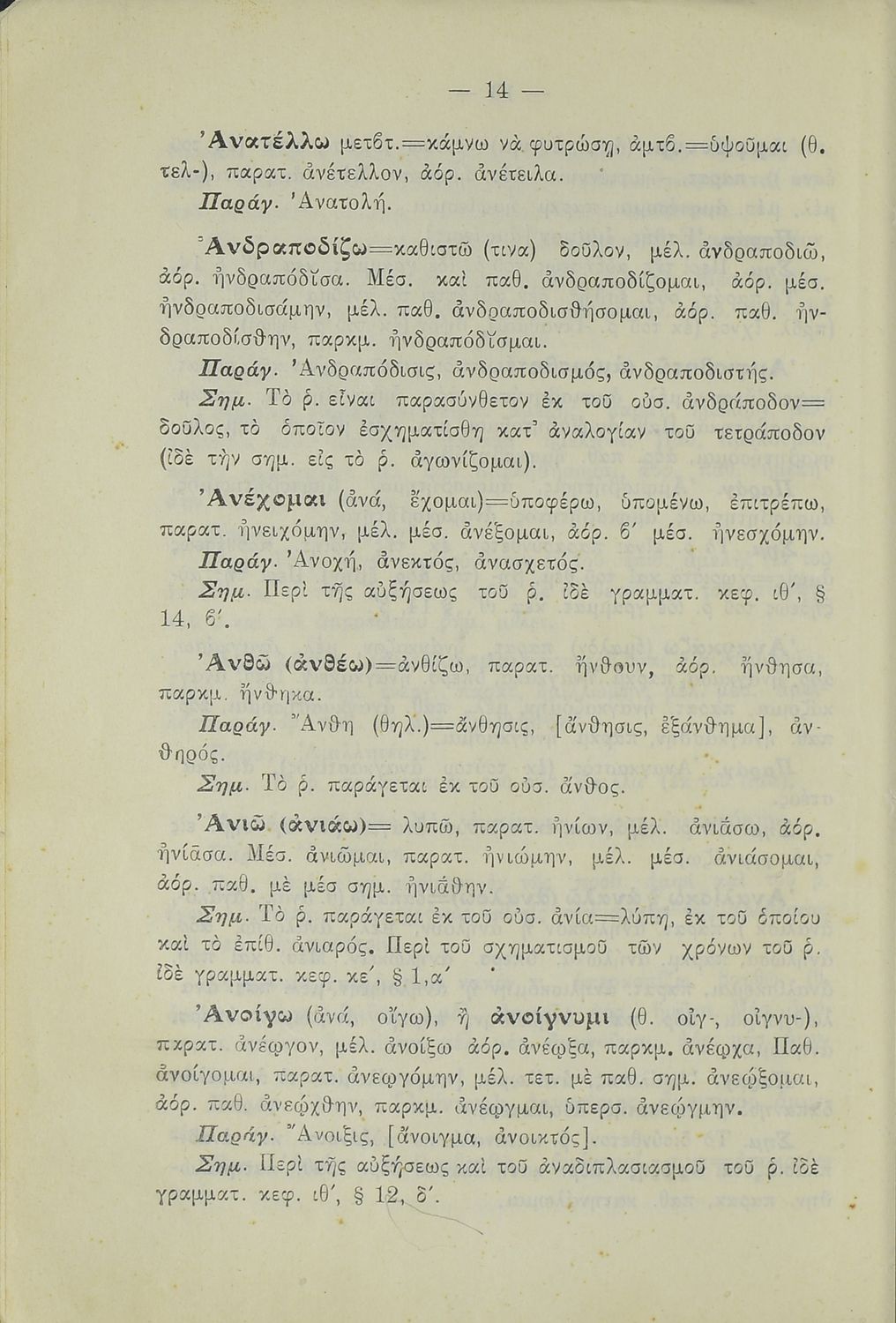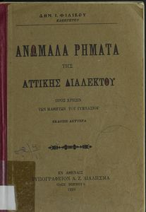 Μαθητικό βοήθημα Αρχαίων Ελληνικών για τα Γυμνάσια, Παρθεναγωγεία και Ελληνικά σχολεία το οποίο περιέχει κατάλογο ανωμάλων ρημάτων της Αττικής διαλέκτου.