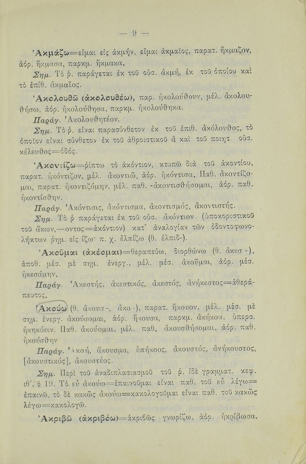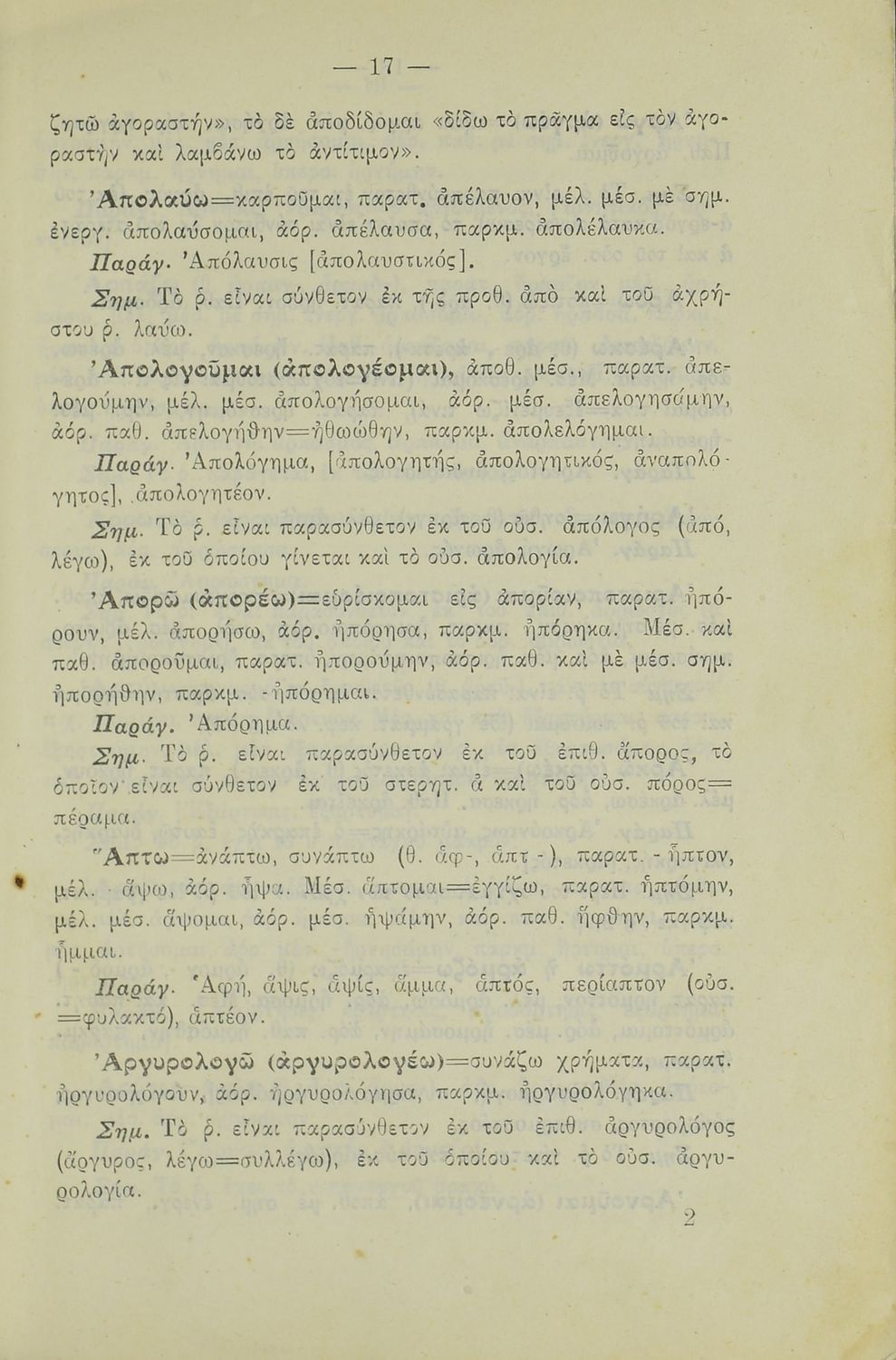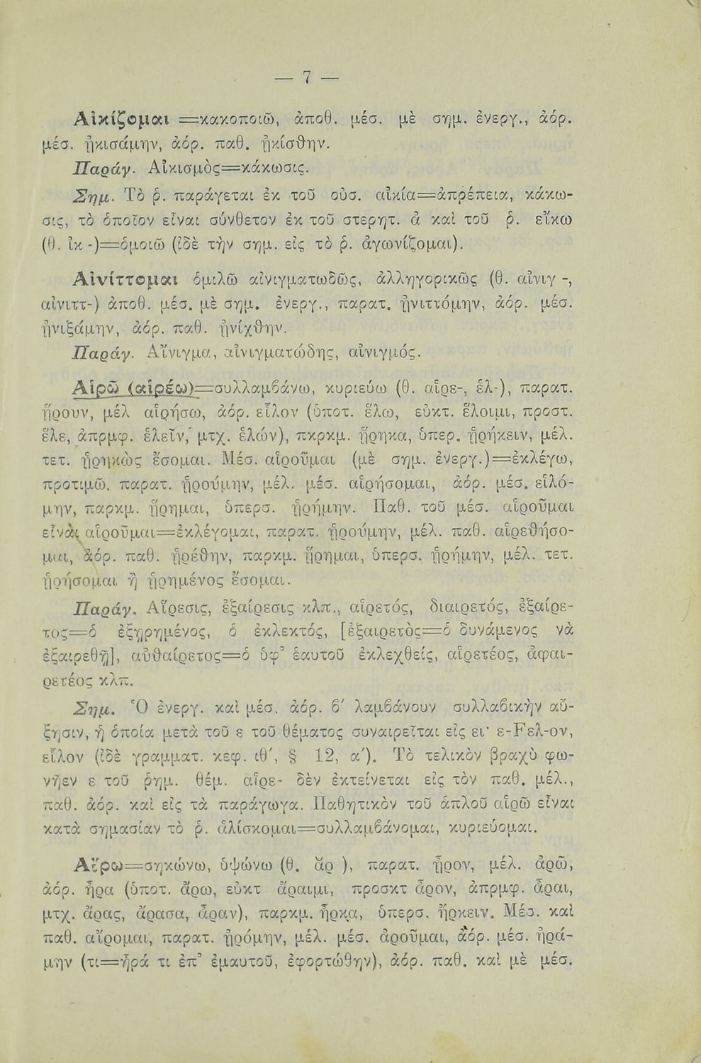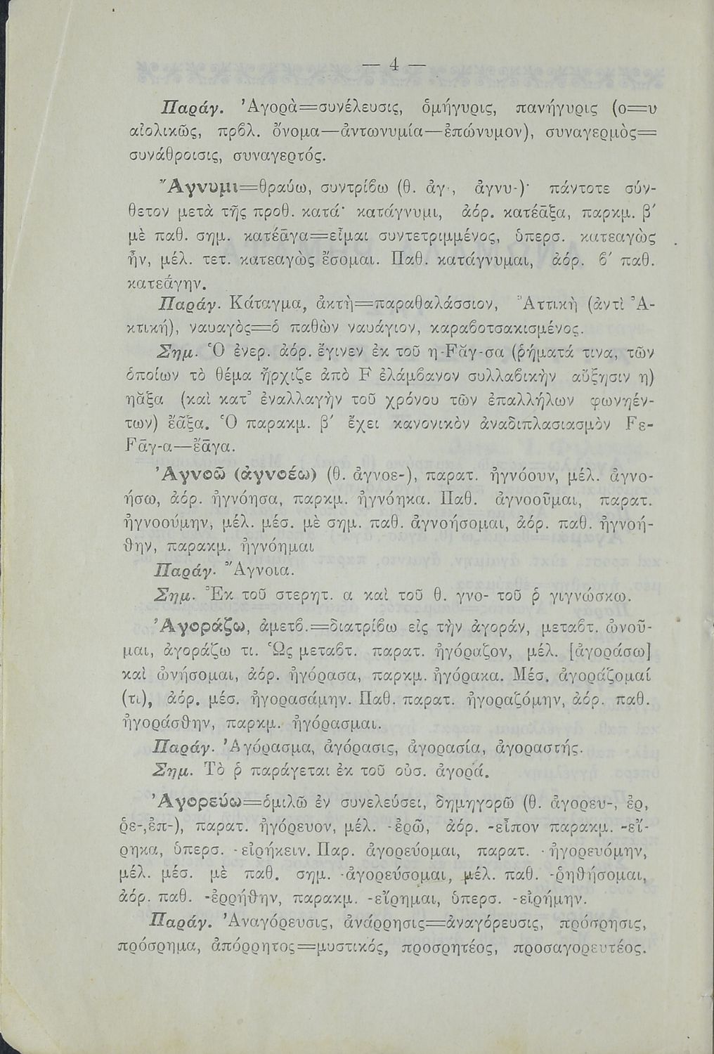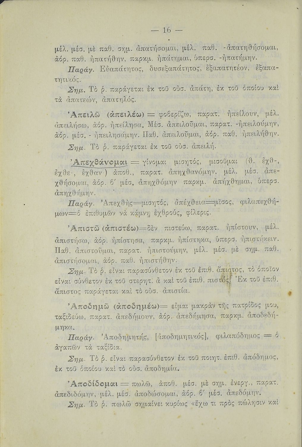 Μαθητικό βοήθημα Αρχαίων Ελληνικών για τα Γυμνάσια, Παρθεναγωγεία και Ελληνικά σχολεία το οποίο περιέχει κατάλογο ανωμάλων ρημάτων της Αττικής διαλέκτου.