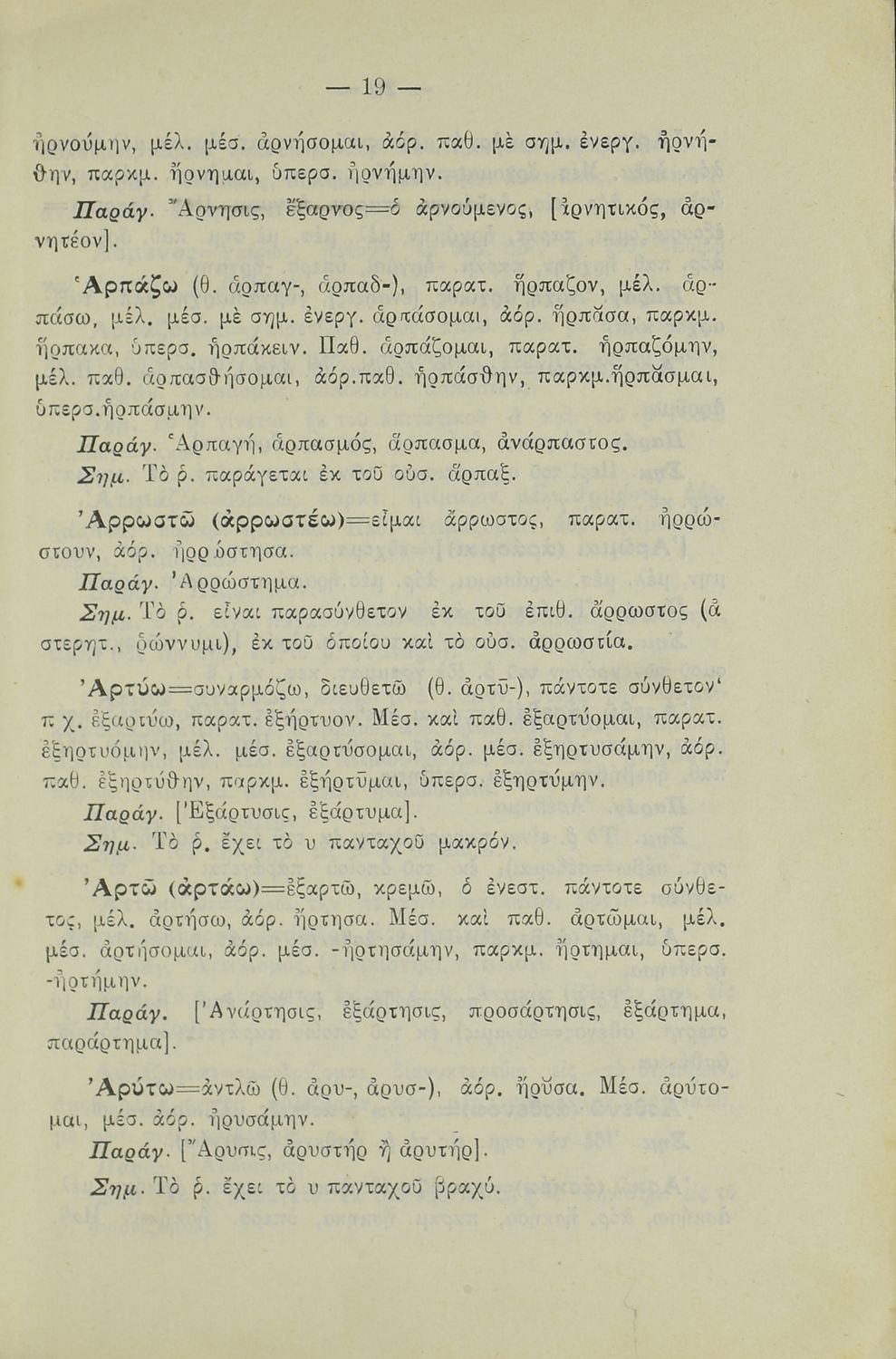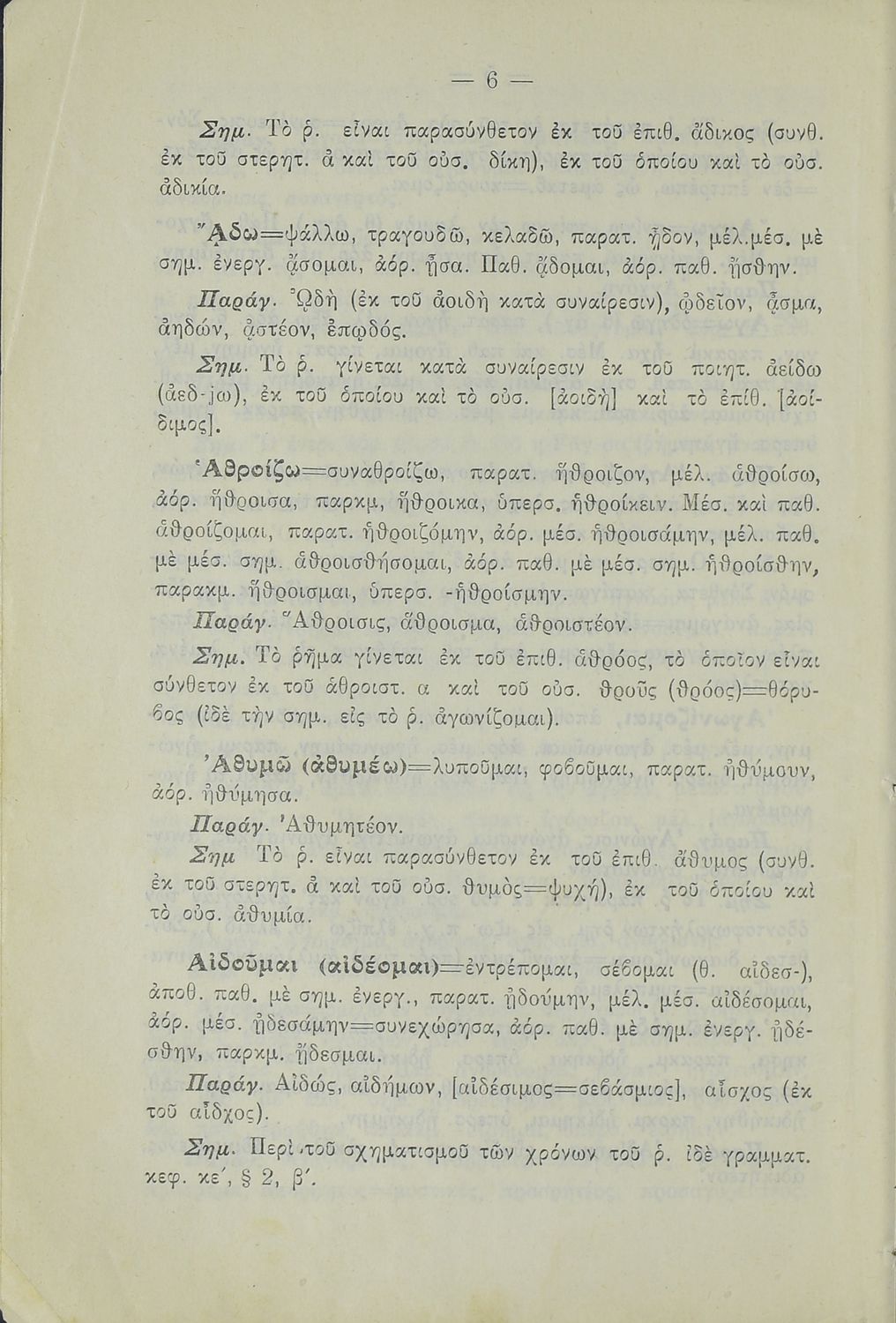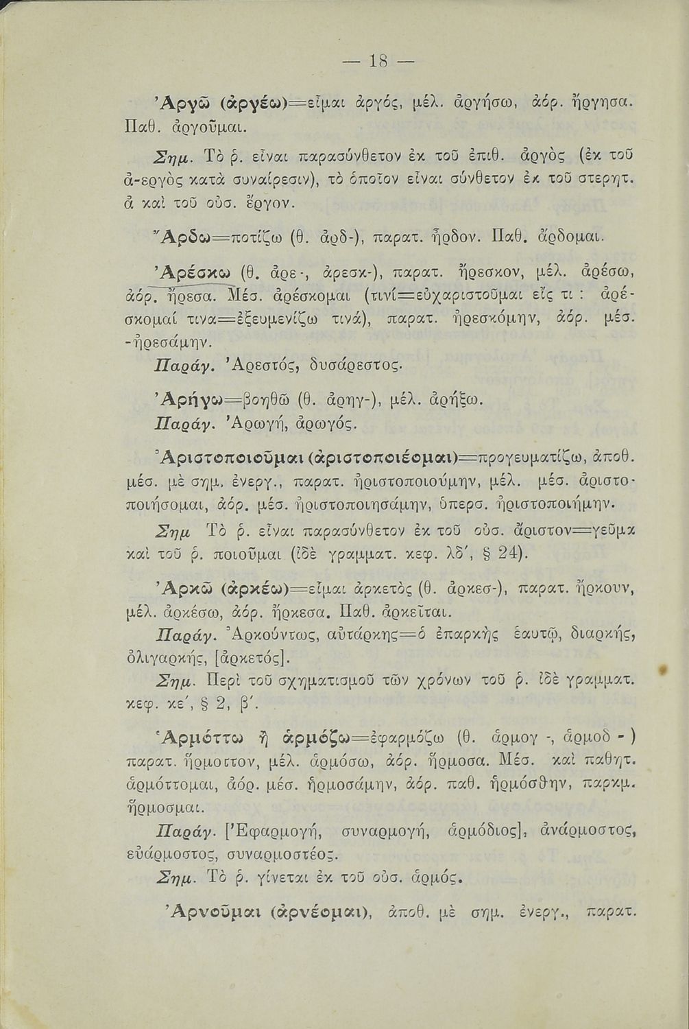 Μαθητικό βοήθημα Αρχαίων Ελληνικών για τα Ελληνικά Σχολεία και Παρθεναγωγεία που περιλαμβάνει τα ανώμαλα και ελλιπή ρήματα της αττικής διαλέκτου.