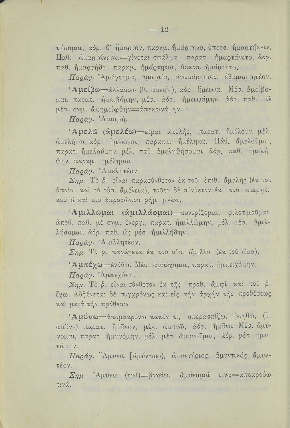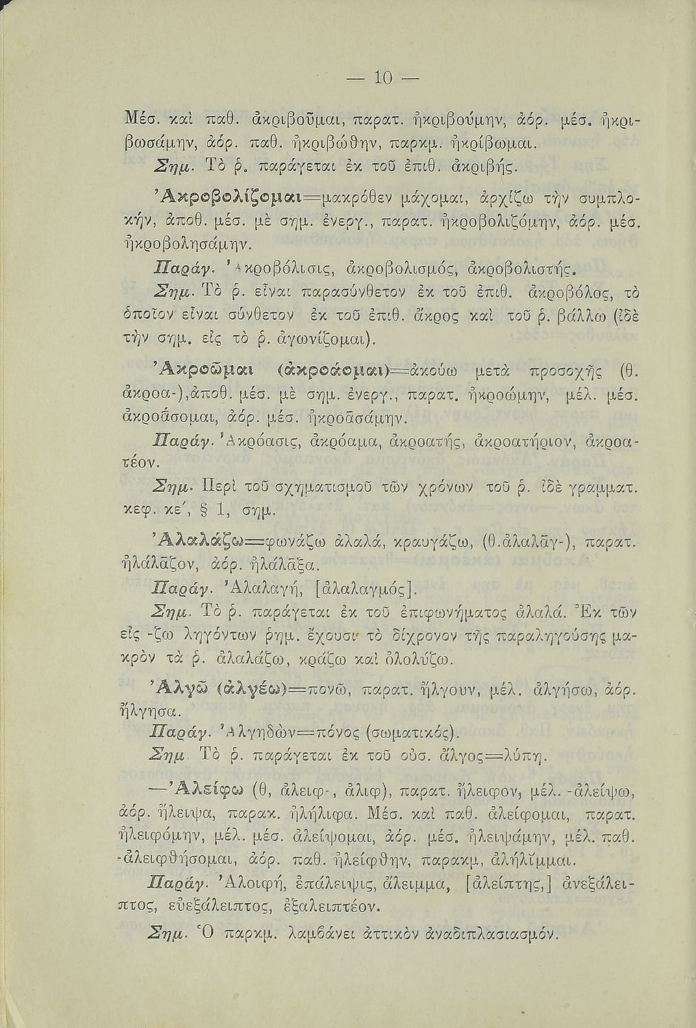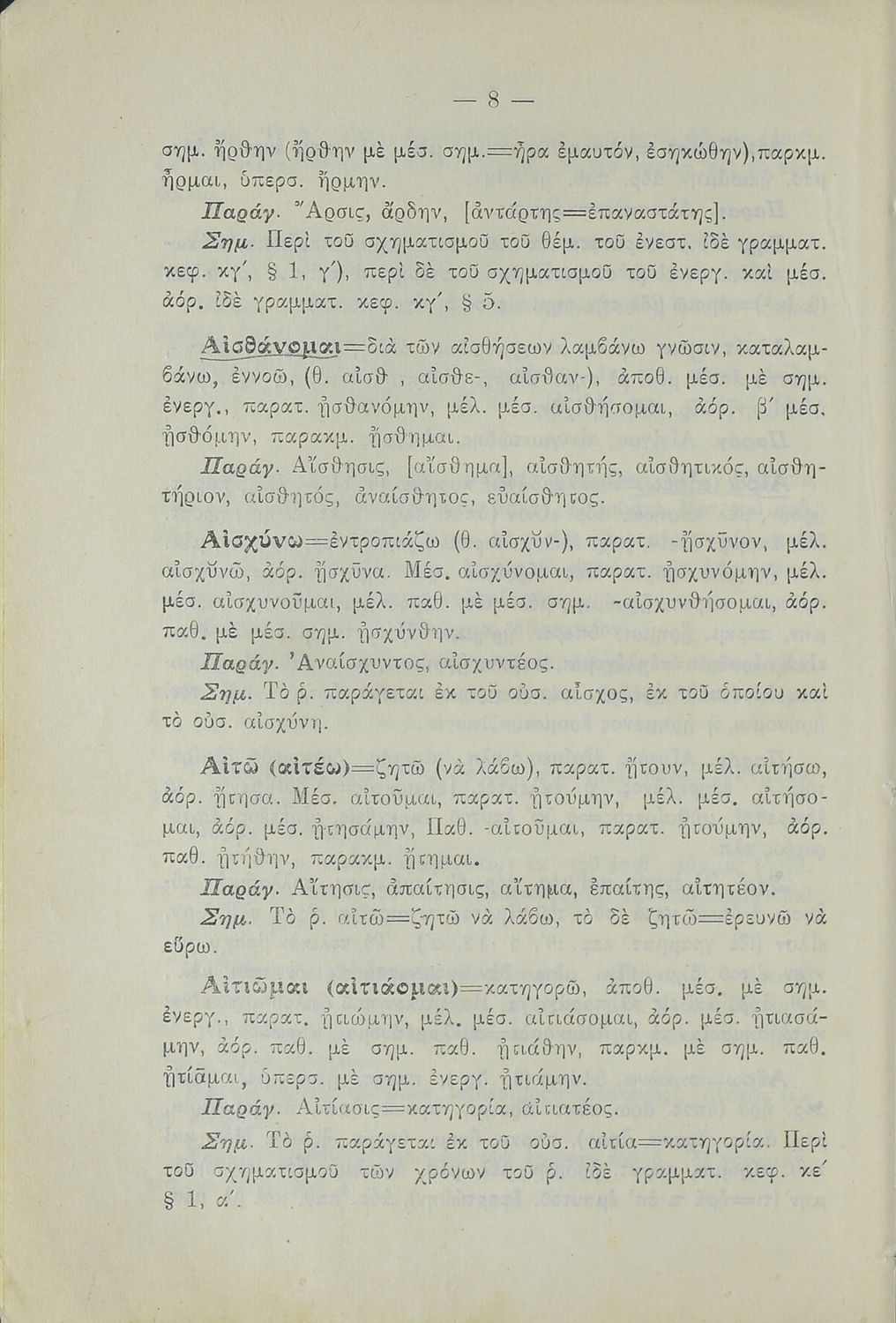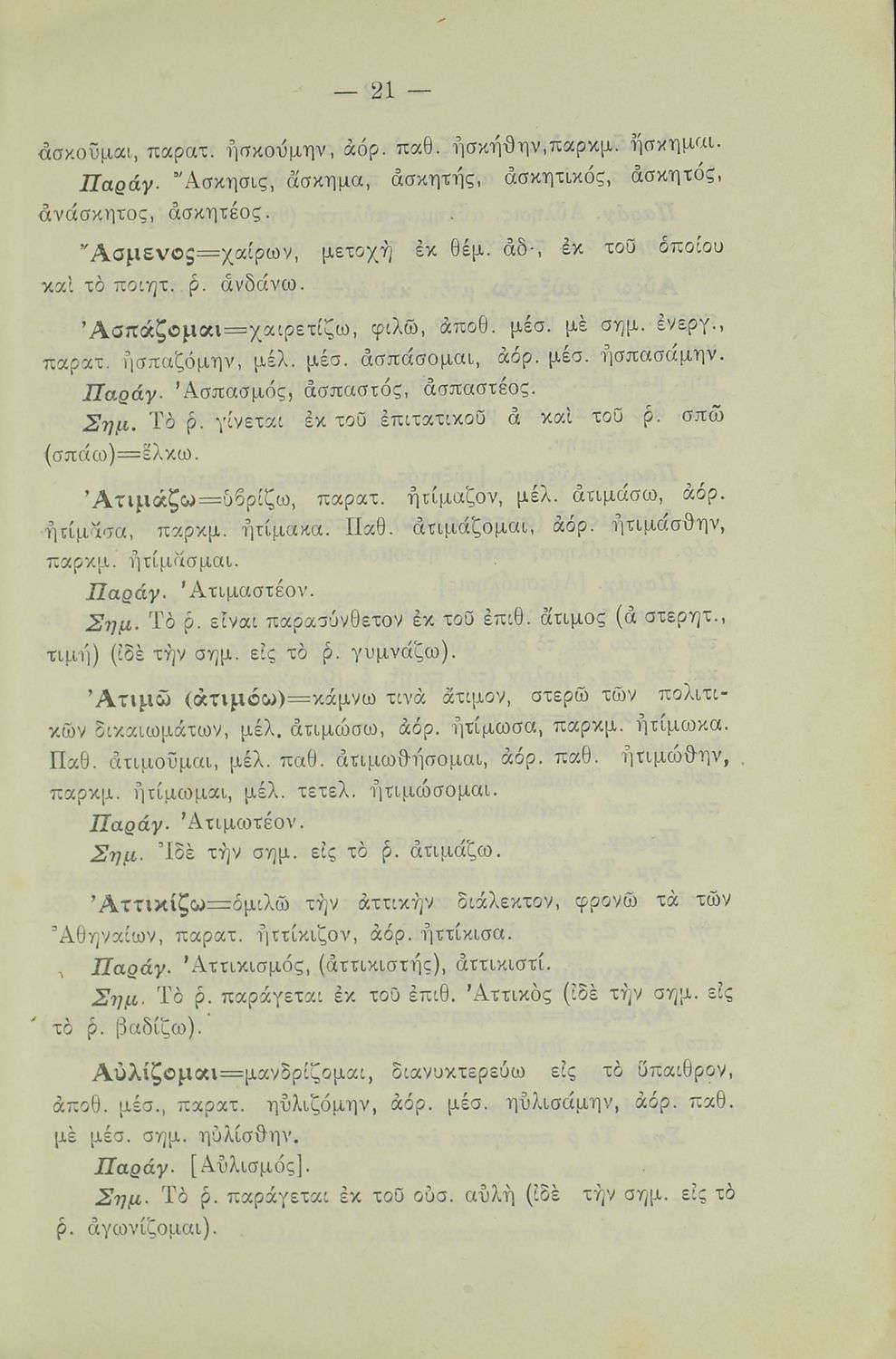 Μαθητικό βοήθημα Αρχαίων Ελληνικών για τα Ελληνικά Σχολεία και Παρθεναγωγεία που περιλαμβάνει τα ανώμαλα και ελλιπή ρήματα της αττικής διαλέκτου.