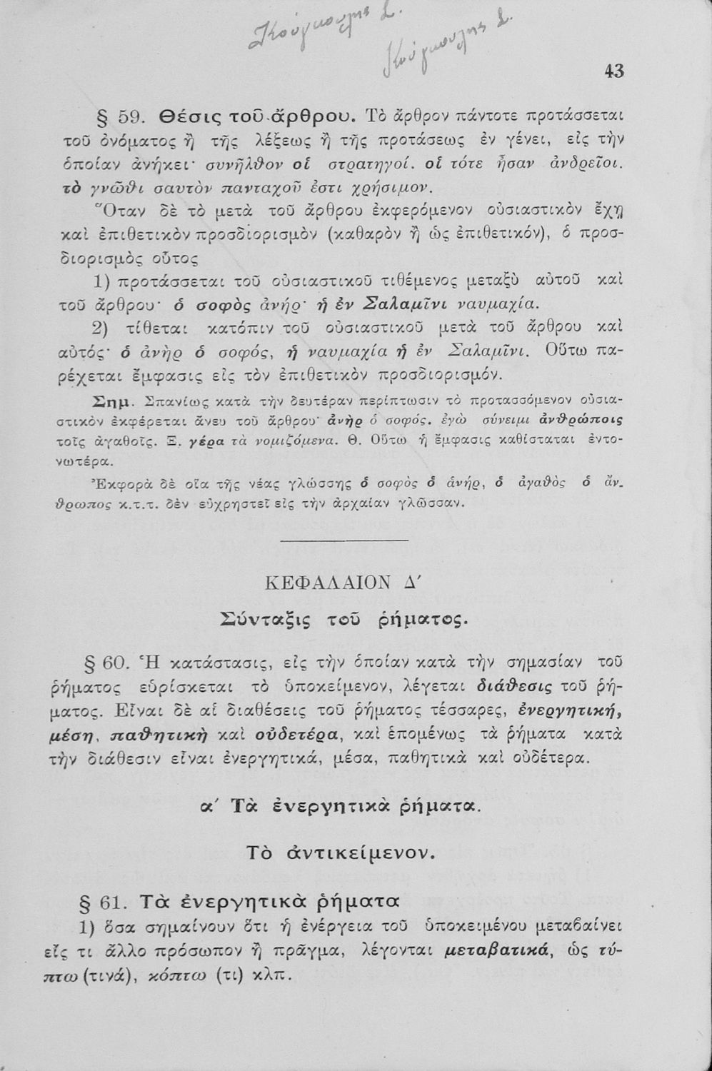 Τίτλος: Συντακτικό της αρχαίας ελληνικής γλώσσης