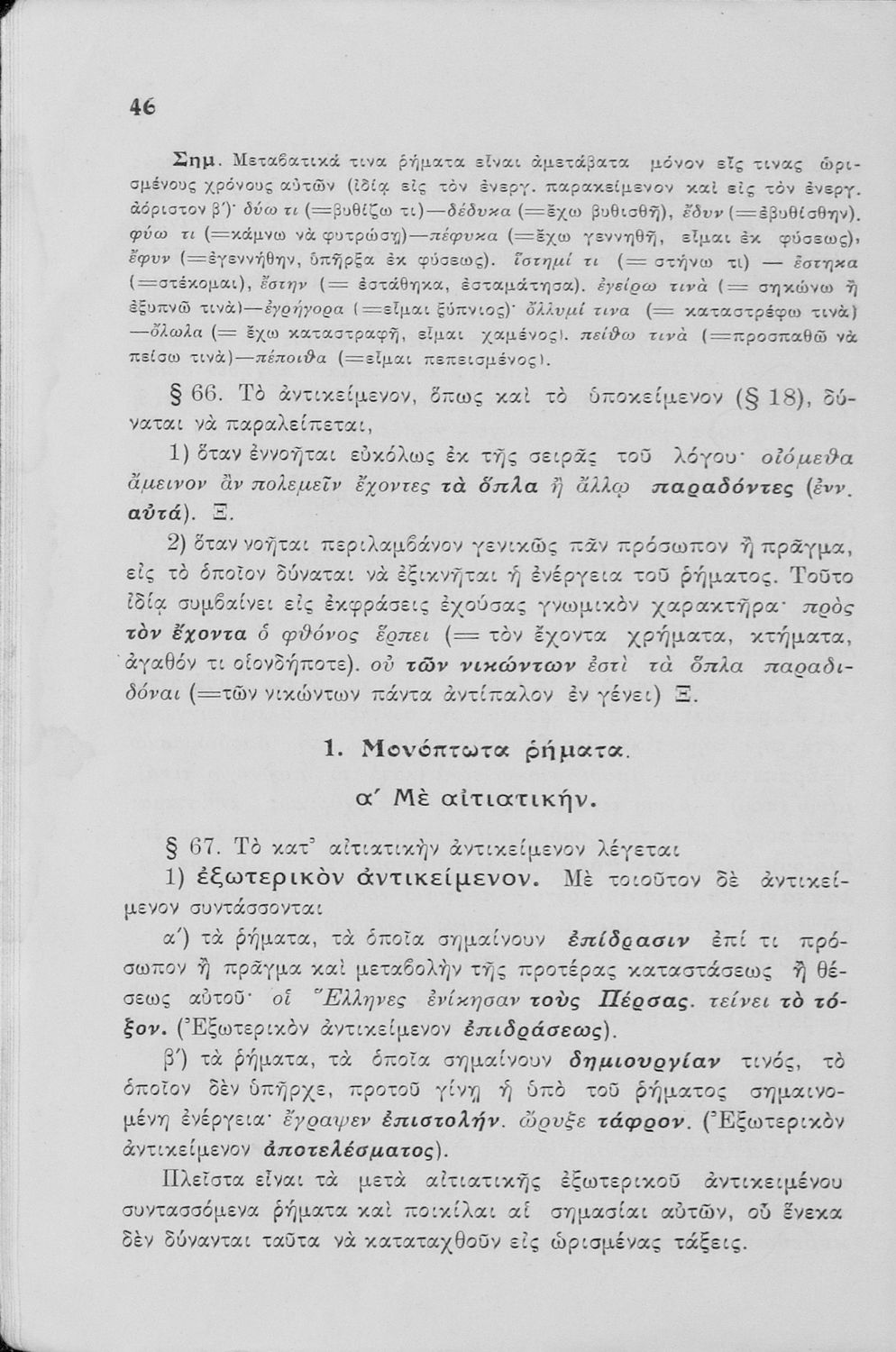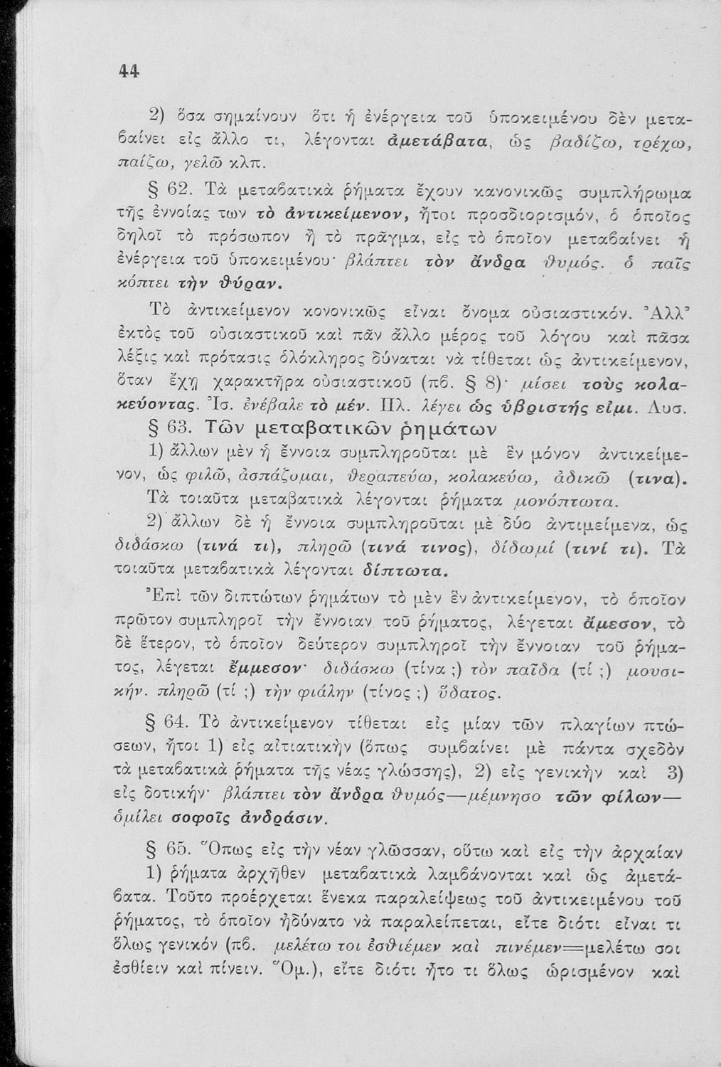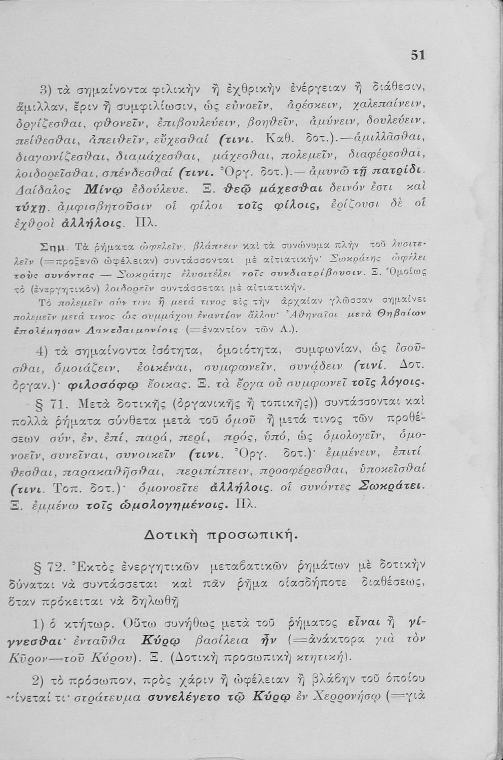 Σχολικό Εγχειρίδιο Αρχαίων Ελληνικών που περιλαμβάνει κείμενα προσαρμοσμένα στη διδασκαλία των γραμματικών και συντακτικών φαινομένων, και ερμηνευτικές και λεξιλογικές σημειώσεις.