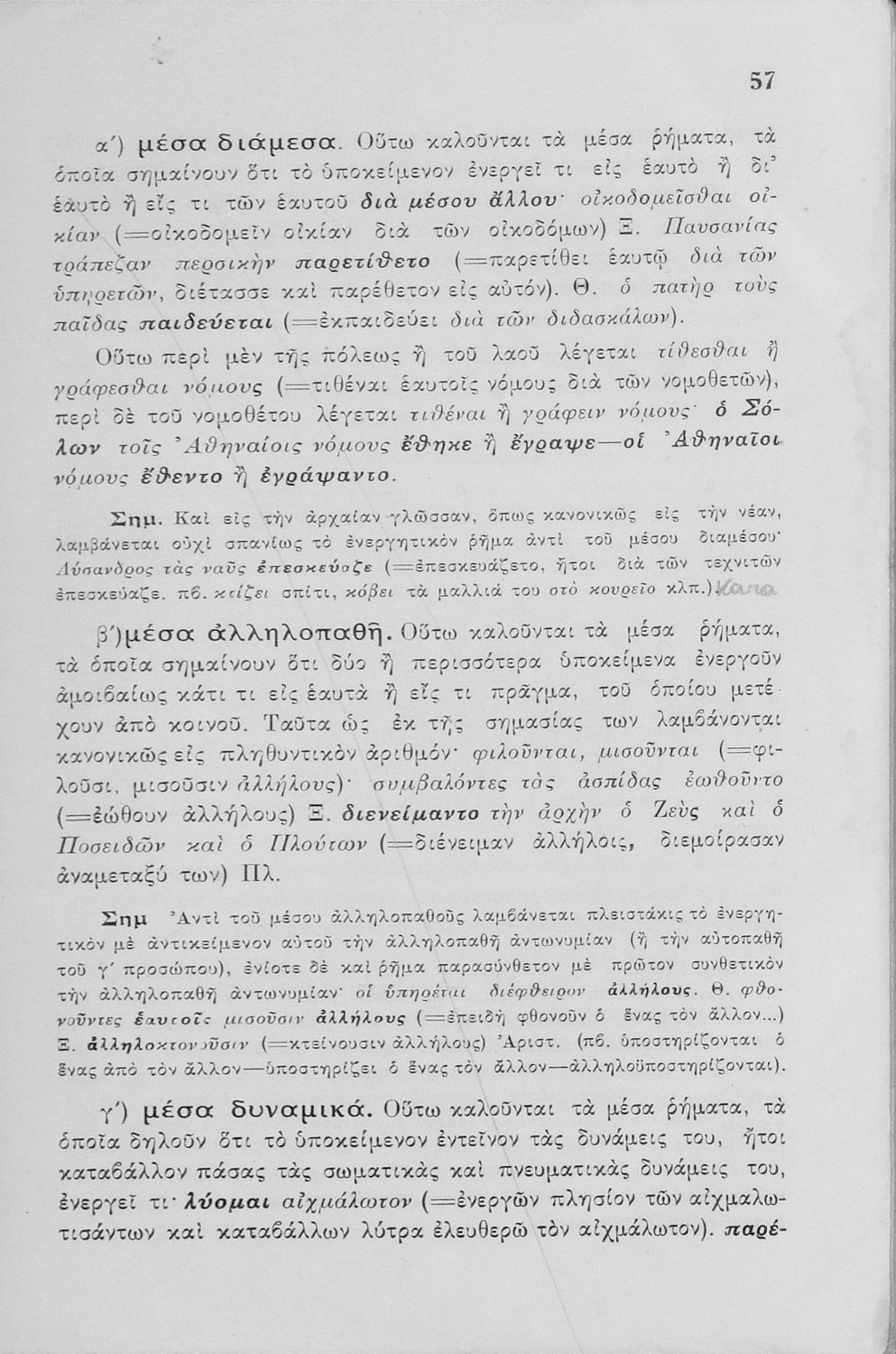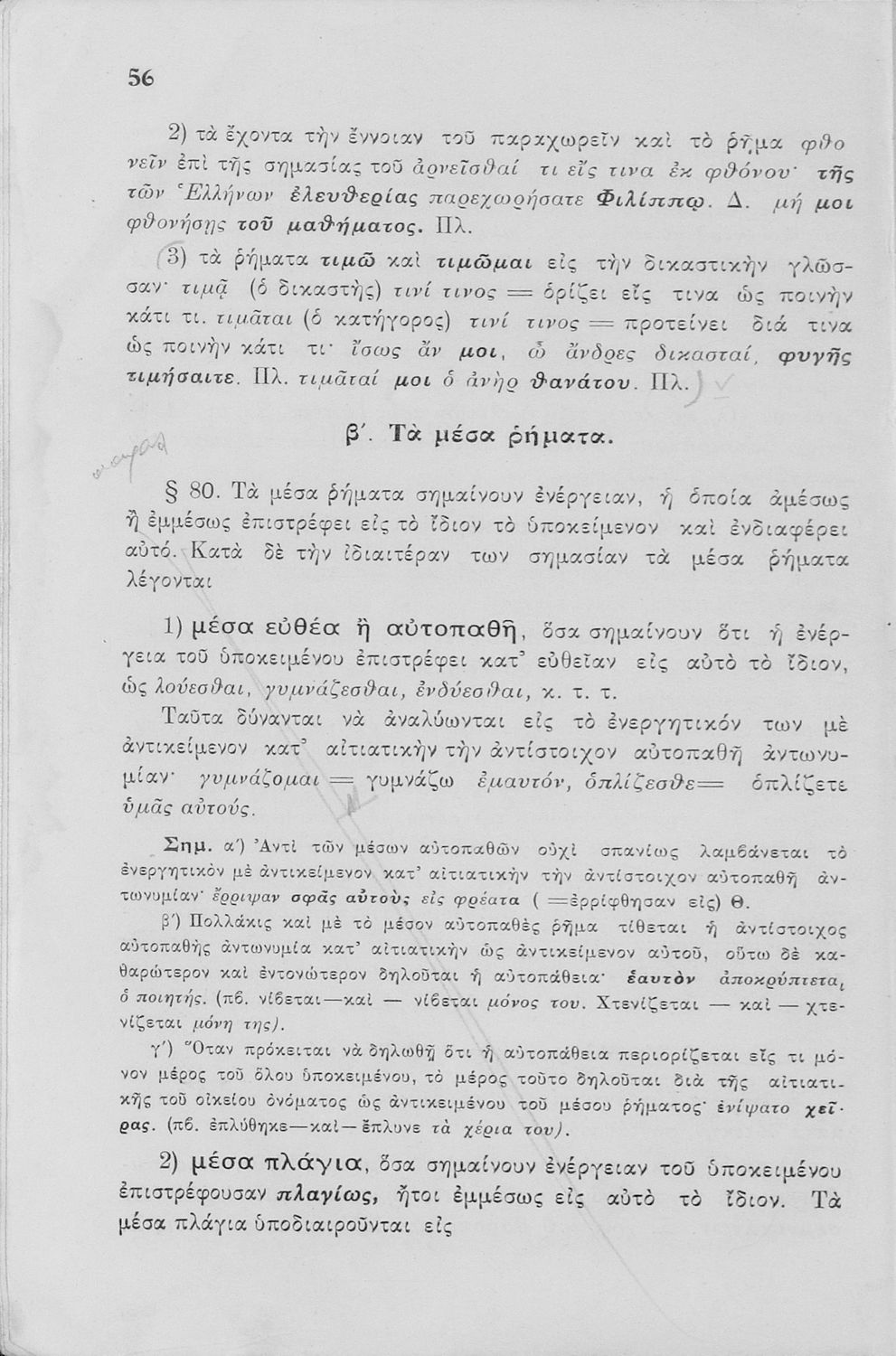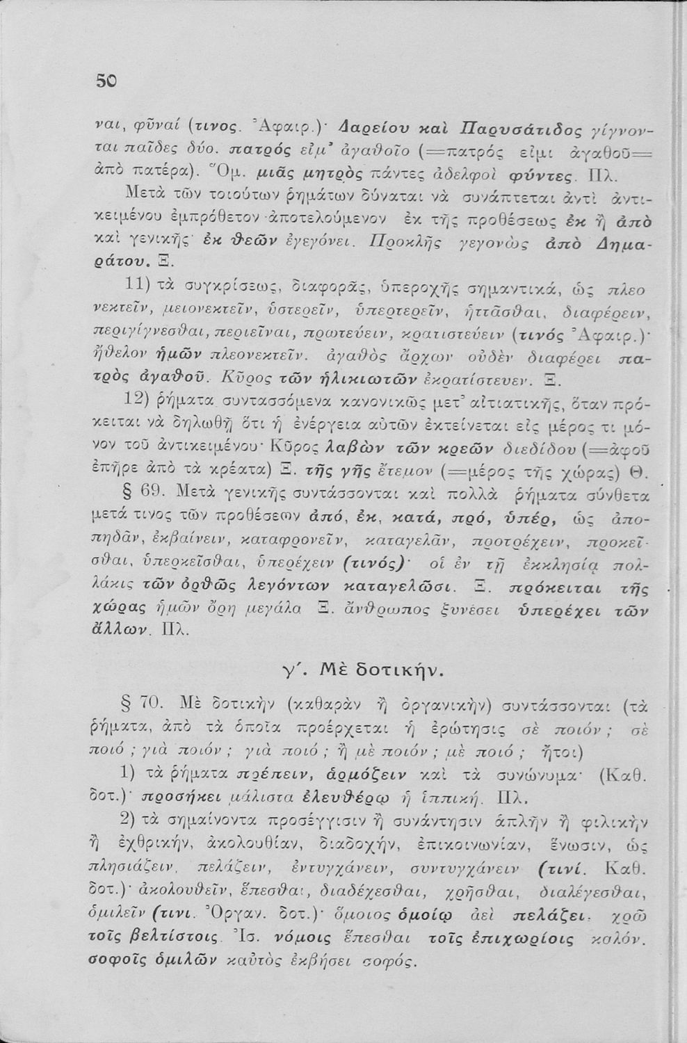 Σχολικό εγχειρίδιο Αρχαίων Ελληνικών Γυμνασίου που εξετάζει τα μέρη του λόγου και την σύνταξή τους.