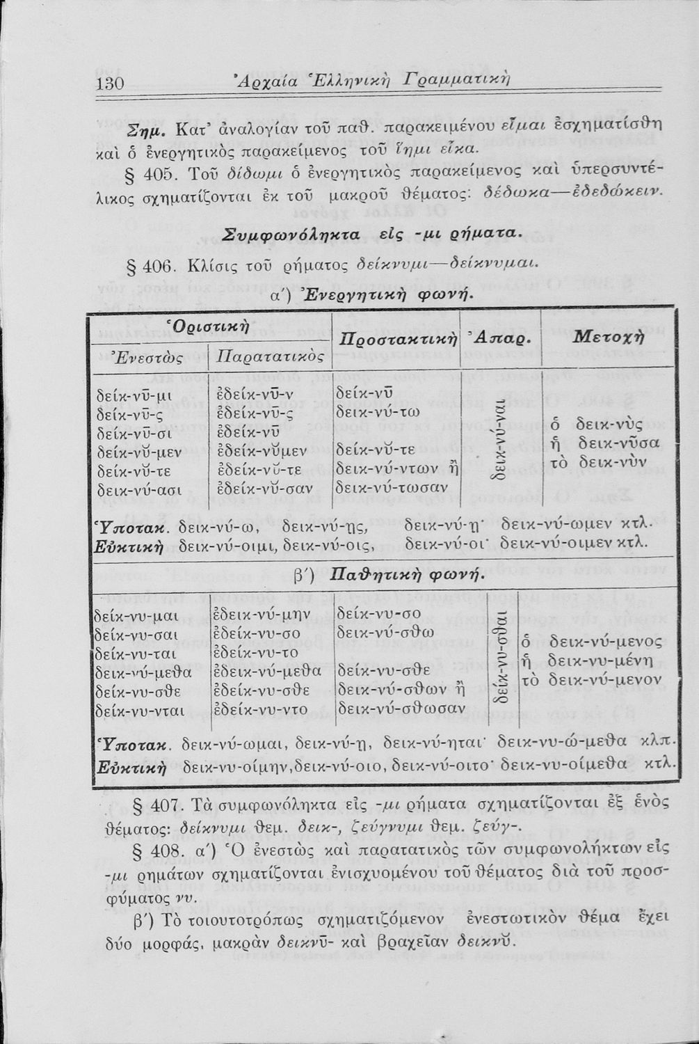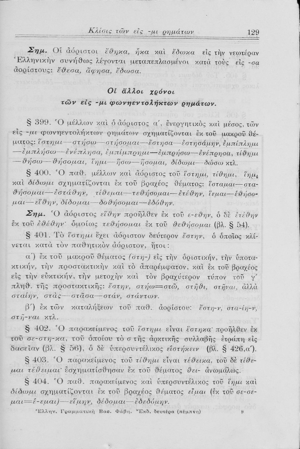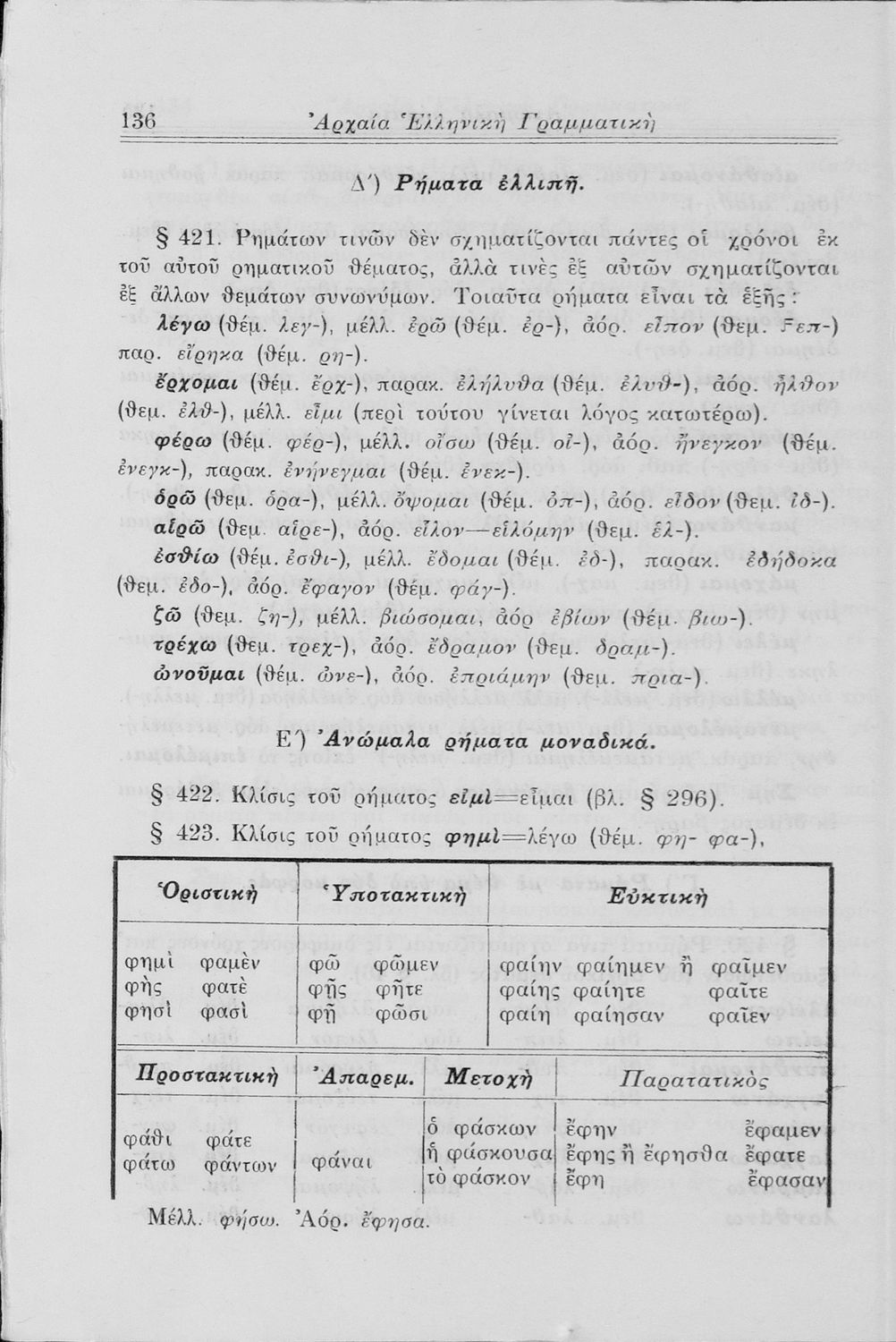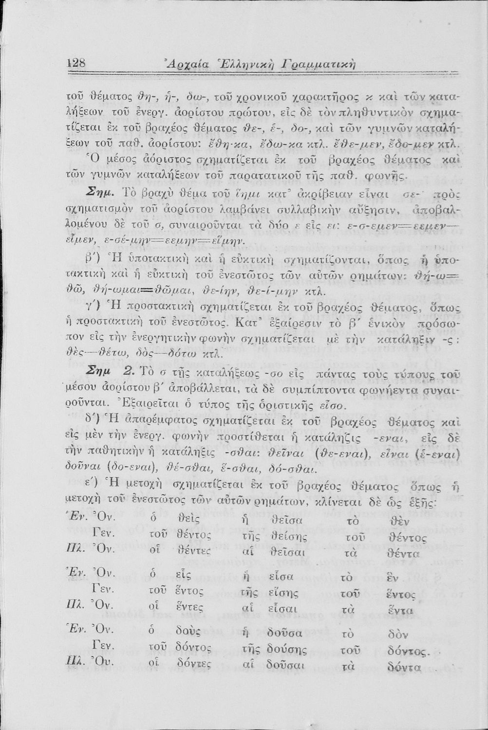 Σχολικό εγχειρίδιο Αρχαίων Ελληνικών Γυμνασίου που περιλαμβάνει τη γραμματική της αρχαίας ελληνικής και είναι χωρισμένο σε φθογγολογικό και τυπολογικό μέρος Περιέχει και κατάλογο ανωμάλων ρημάτων.