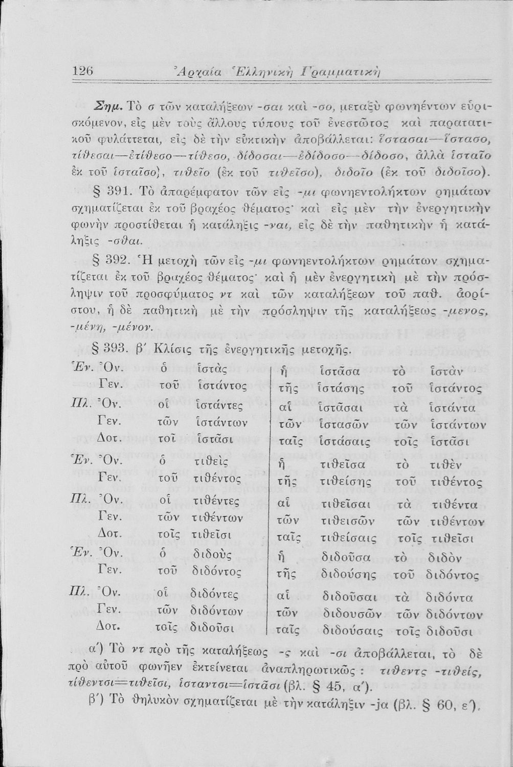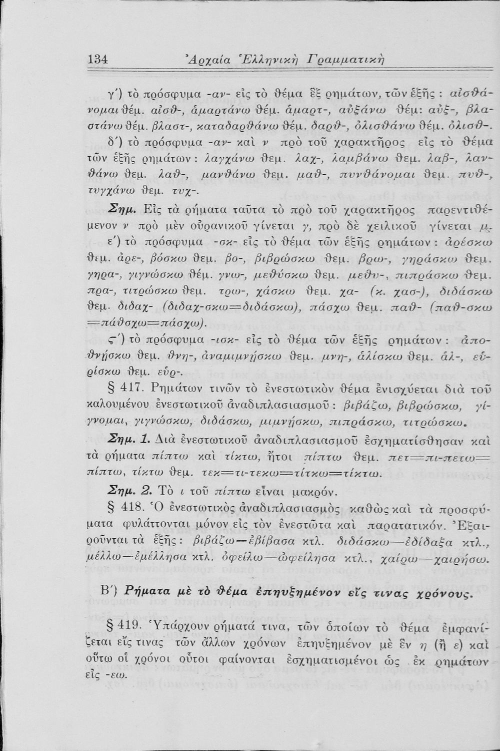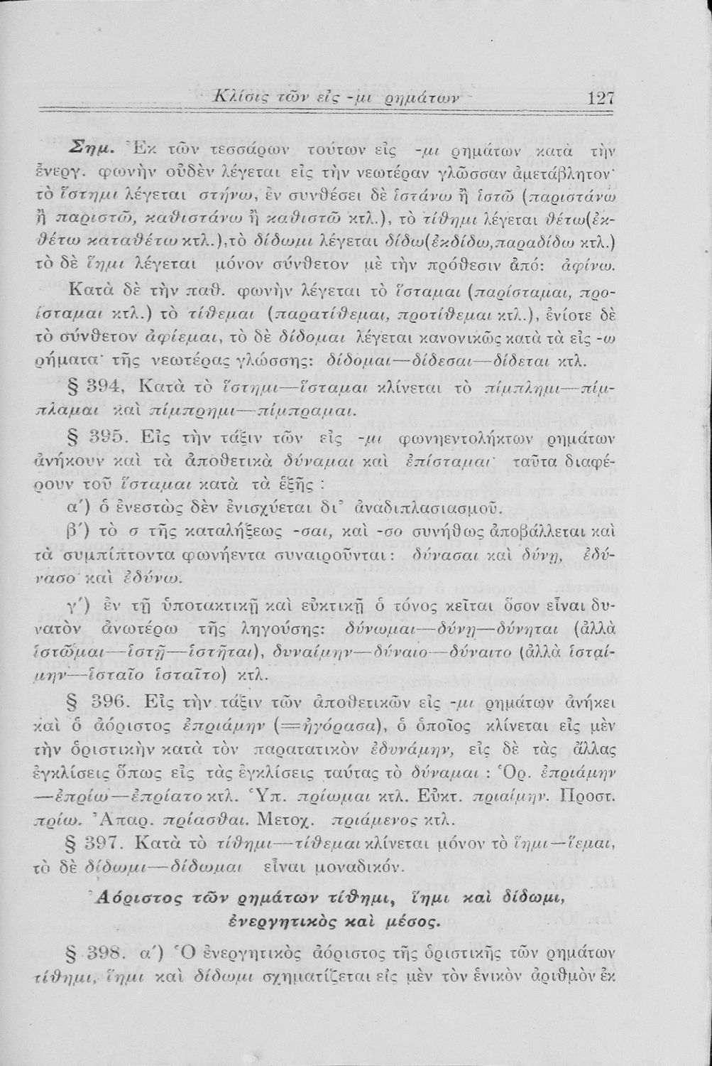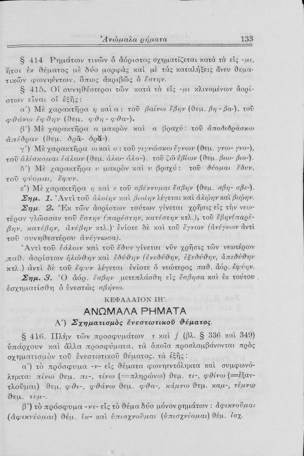 Σχολικό εγχειρίδιο Αρχαίων Ελληνικών Γυμνασίου που περιλαμβάνει τη γραμματική της αρχαίας ελληνικής και είναι χωρισμένο σε φθογγολογικό και τυπολογικό μέρος Περιέχει και κατάλογο ανωμάλων ρημάτων.