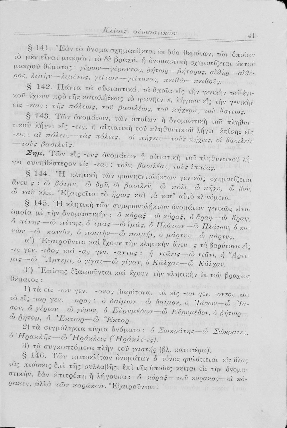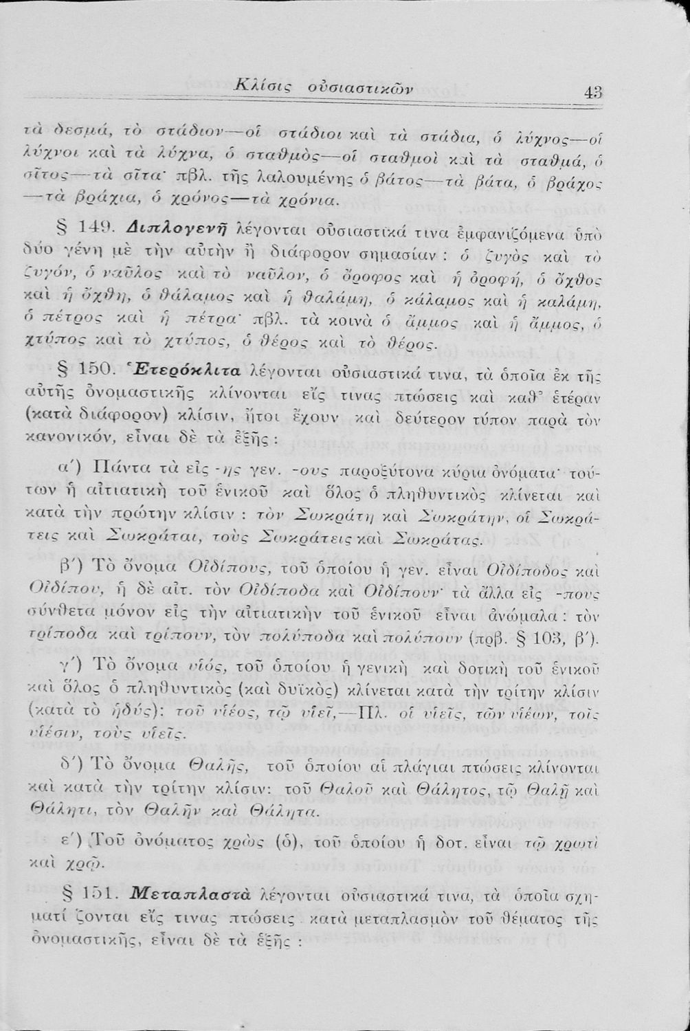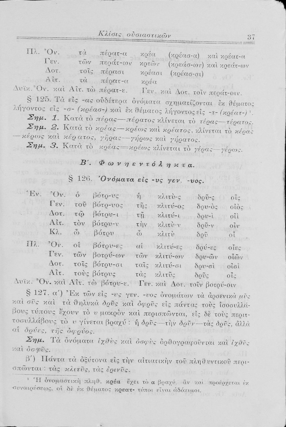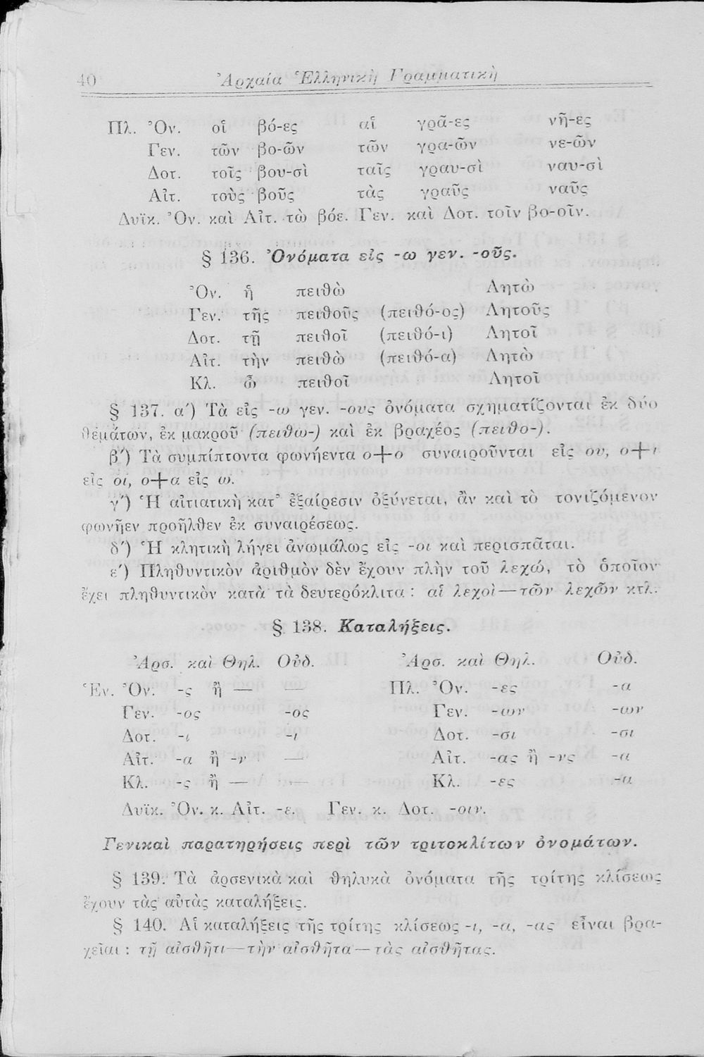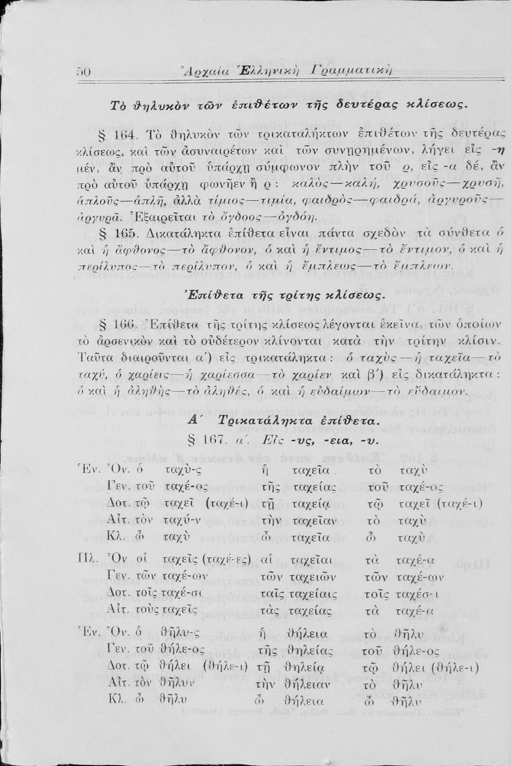 Σχολικό εγχειρίδιο Αρχαίων Ελληνικών Γυμνασίου που περιλαμβάνει τη γραμματική της αρχαίας ελληνικής και είναι χωρισμένο σε φθογγολογικό και τυπολογικό μέρος Περιέχει και κατάλογο ανωμάλων ρημάτων.