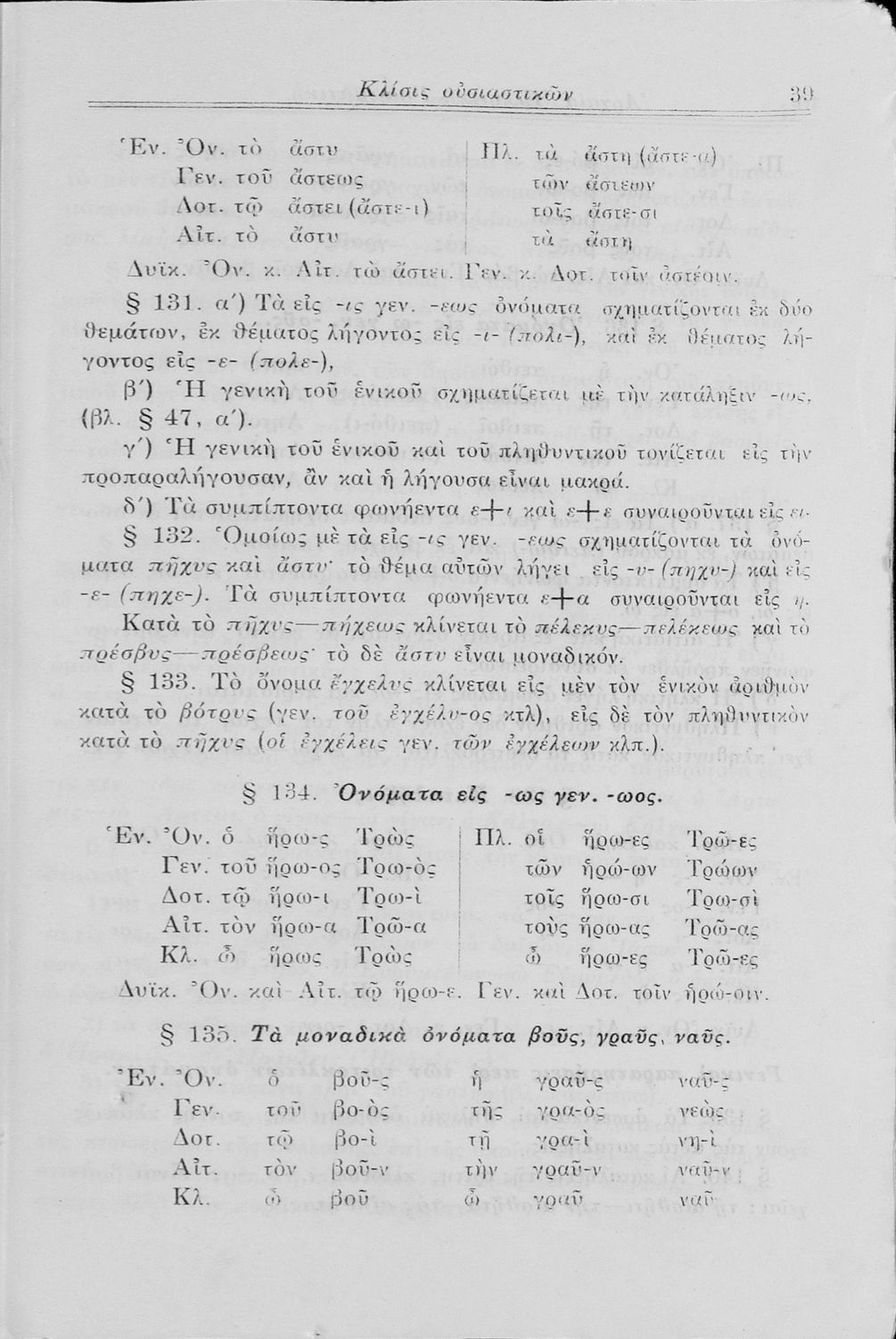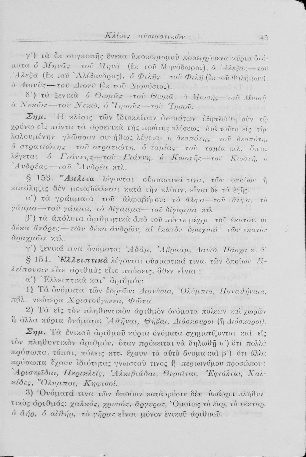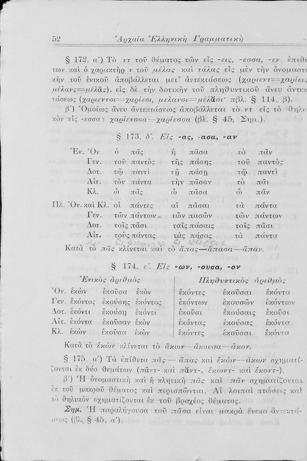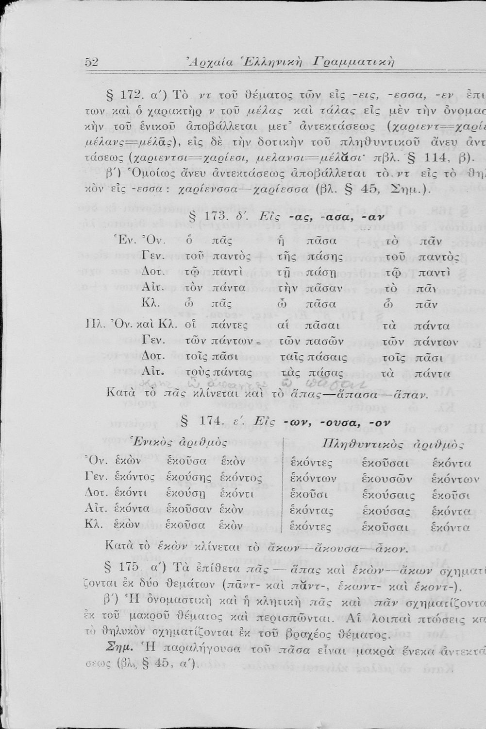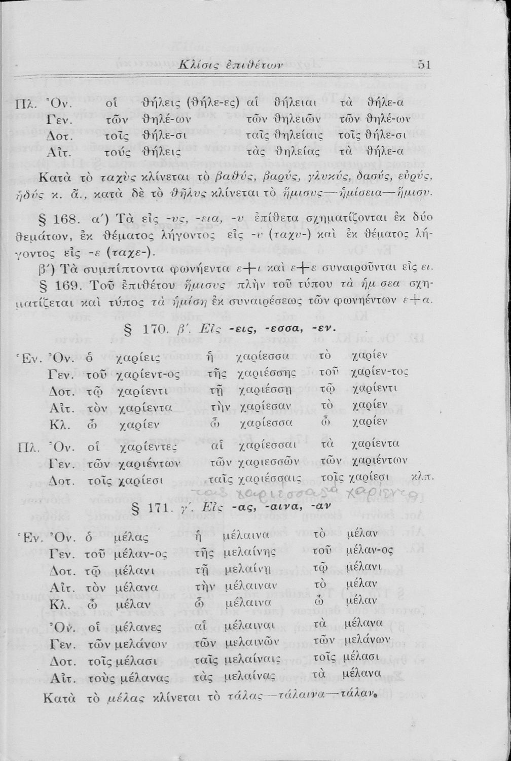 Σχολικό εγχειρίδιο Αρχαίων Ελληνικών Γυμνασίου που περιλαμβάνει τη γραμματική της αρχαίας ελληνικής και είναι χωρισμένο σε φθογγολογικό και τυπολογικό μέρος Περιέχει και κατάλογο ανωμάλων ρημάτων.
