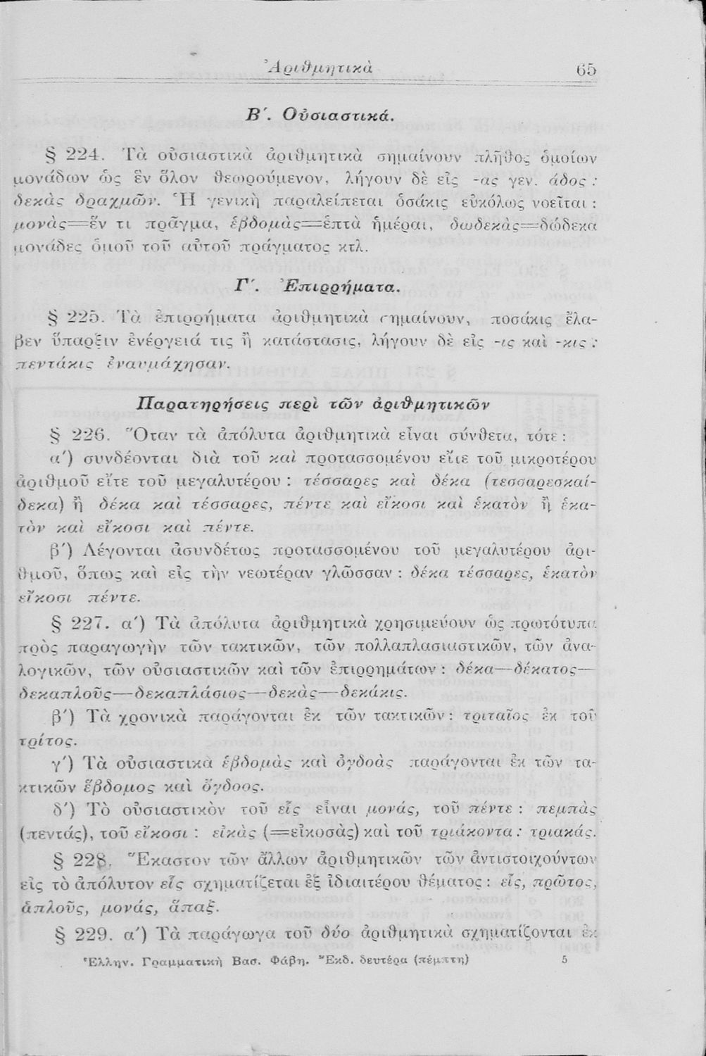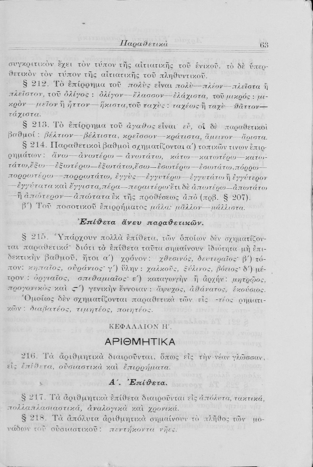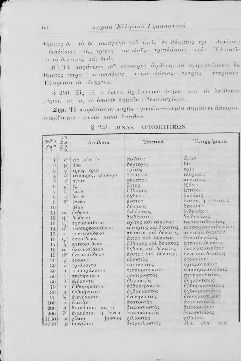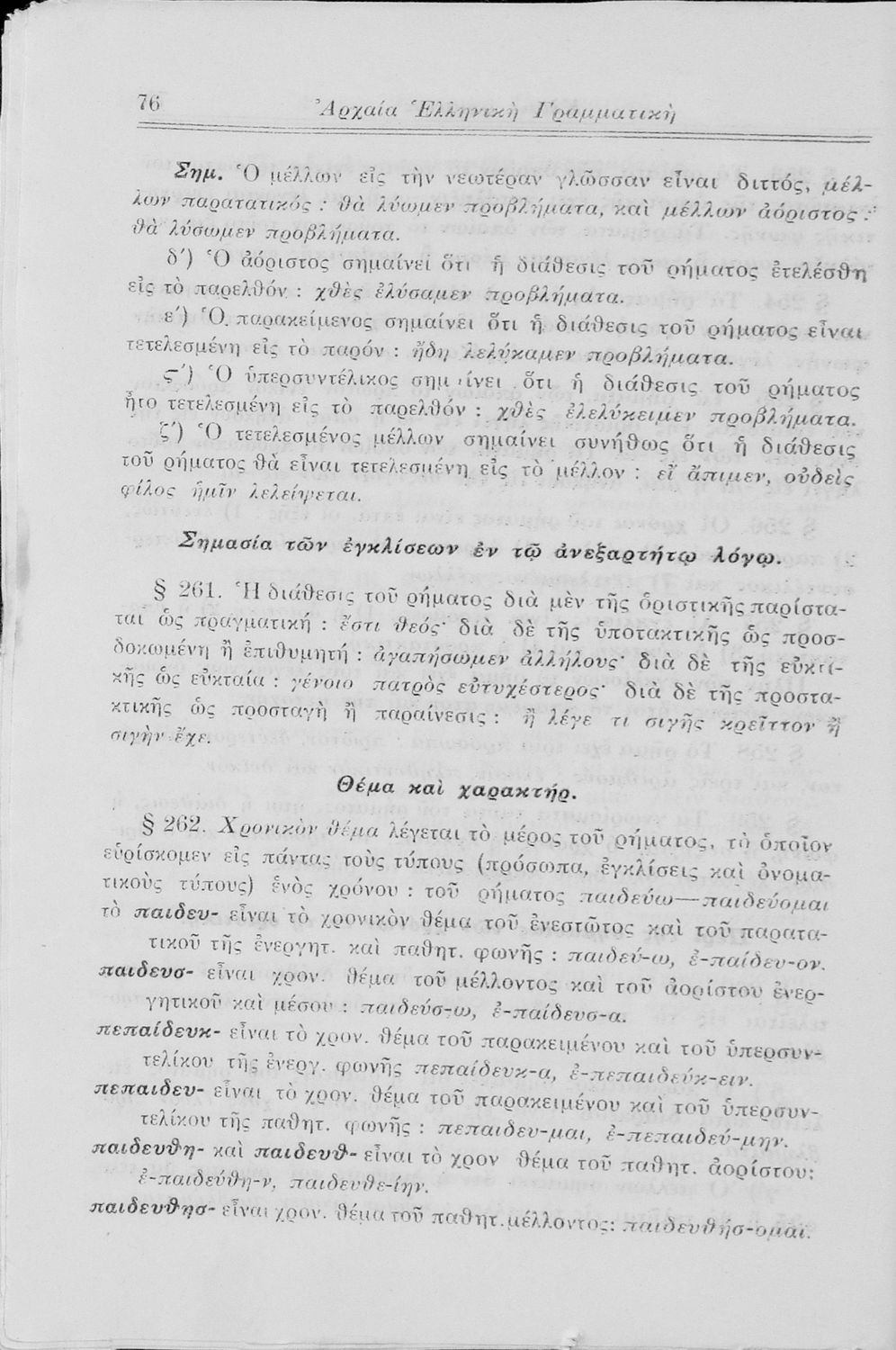 Σχολικό εγχειρίδιο Αρχαίων Ελληνικών για τα Ελληνικά Σχολεία, Παρθεναγωγεία και Γυμνάσια που περιέχει τους κανόνες γραμματικής και είναι χωρισμένο σε φθογγολογικό, τυπολογικό και ετυμολογικό μέρος.