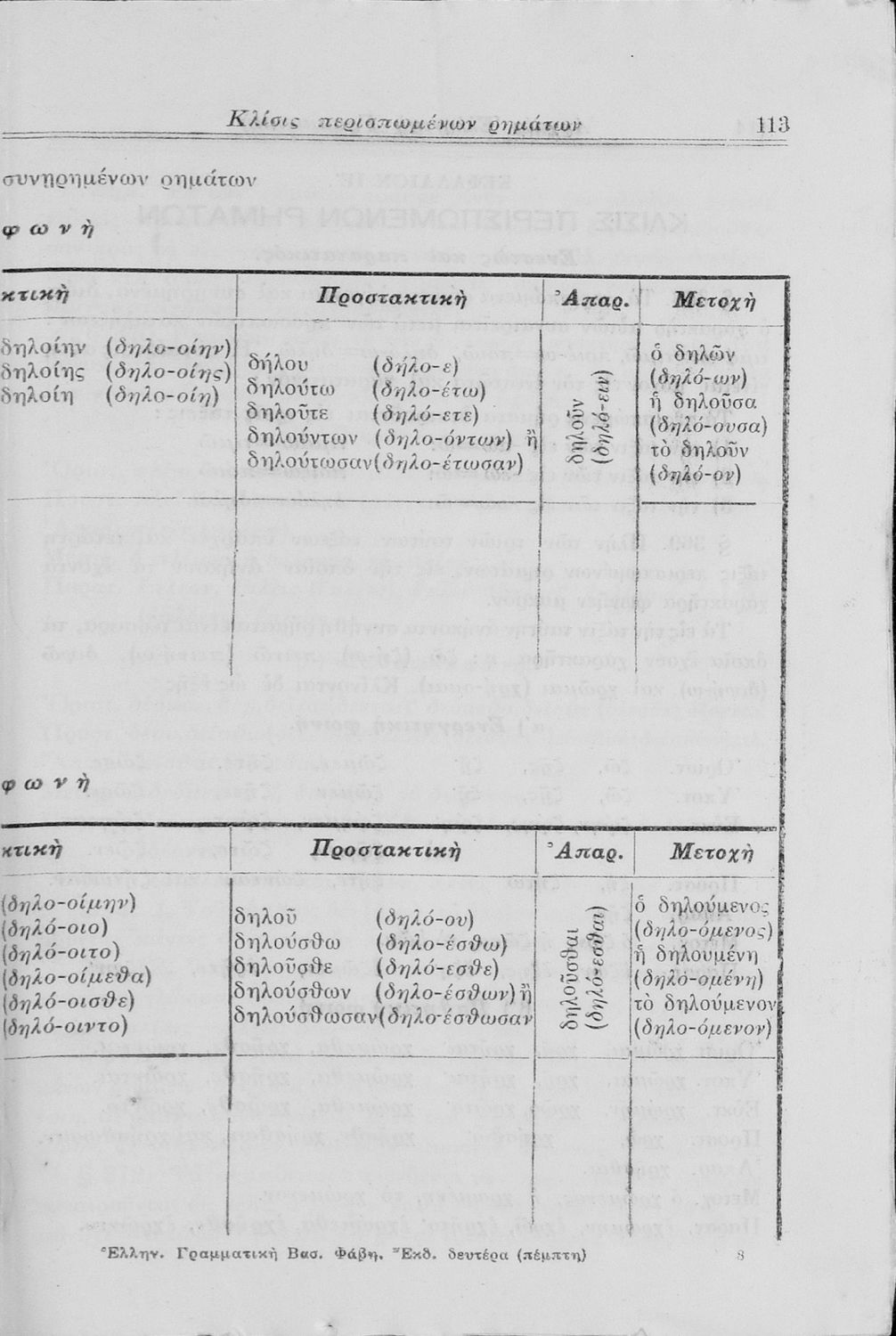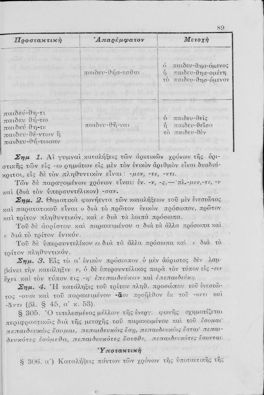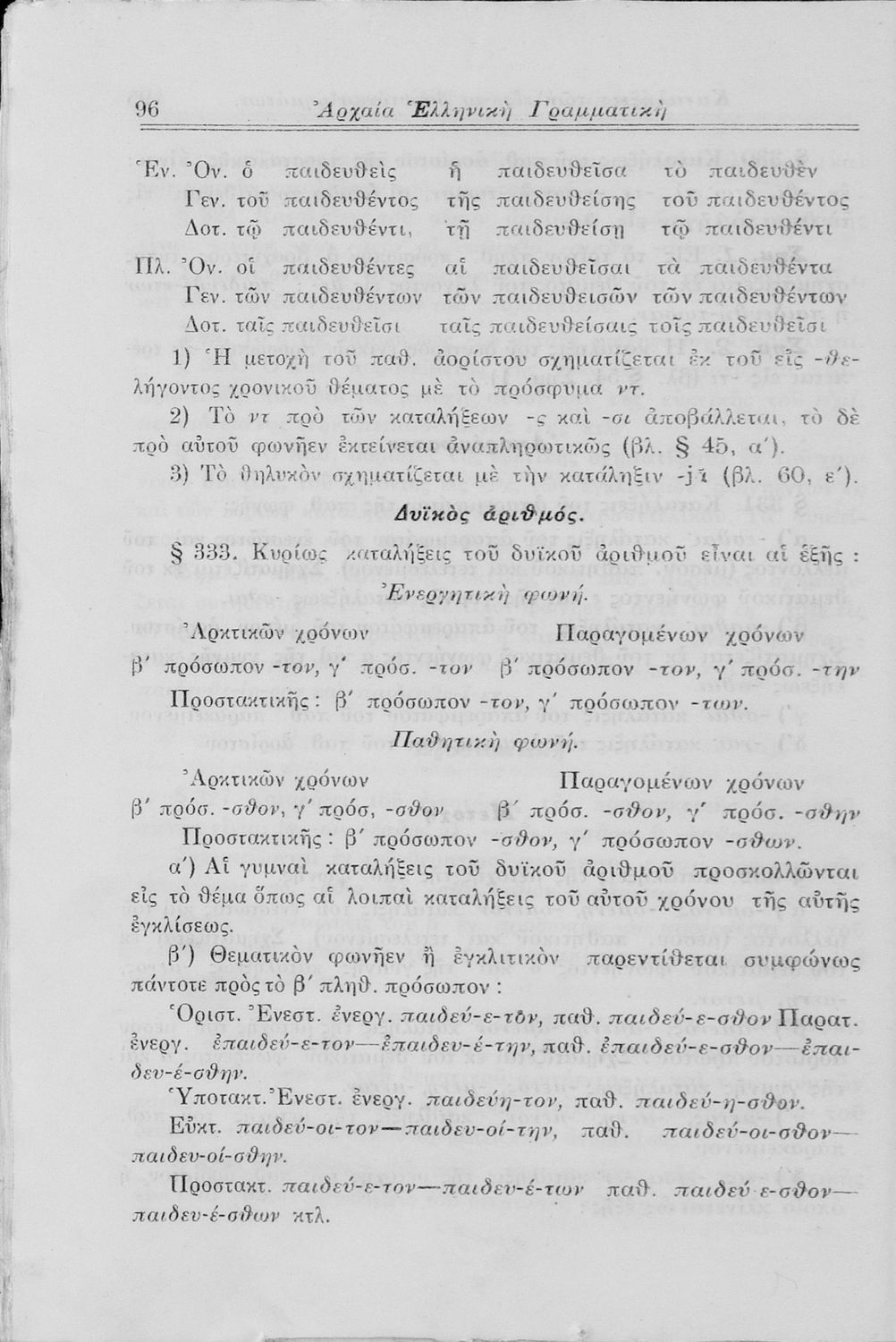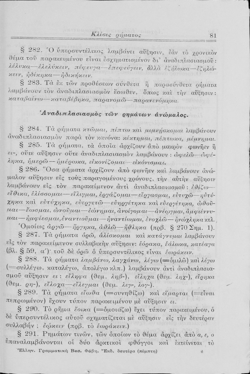 Σχολικό εγχειρίδιο Αρχαίων Ελληνικών Γυμνασίου που περιλαμβάνει τη γραμματική της αρχαίας ελληνικής και είναι χωρισμένο σε φθογγολογικό και τυπολογικό μέρος Περιέχει και κατάλογο ανωμάλων ρημάτων.