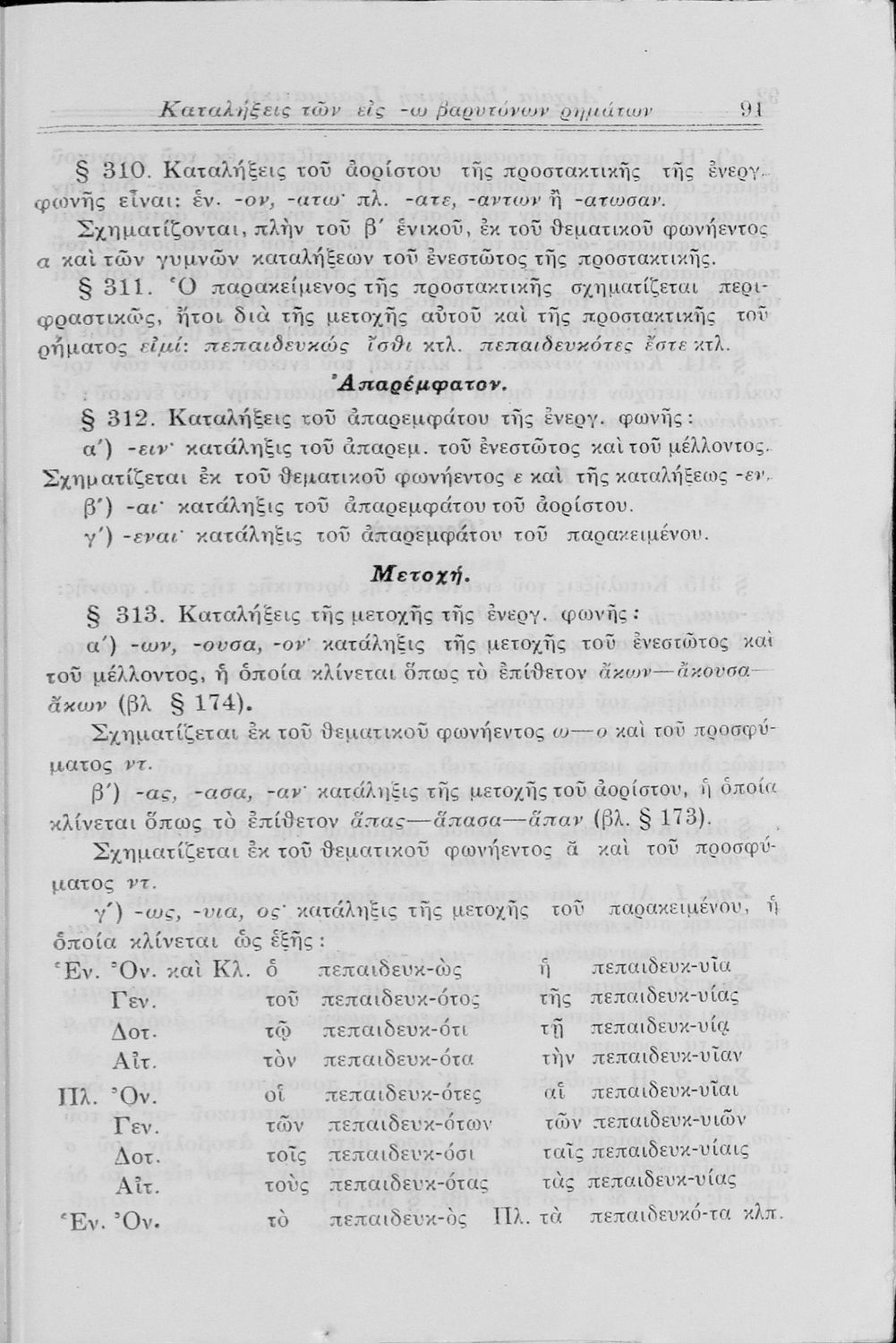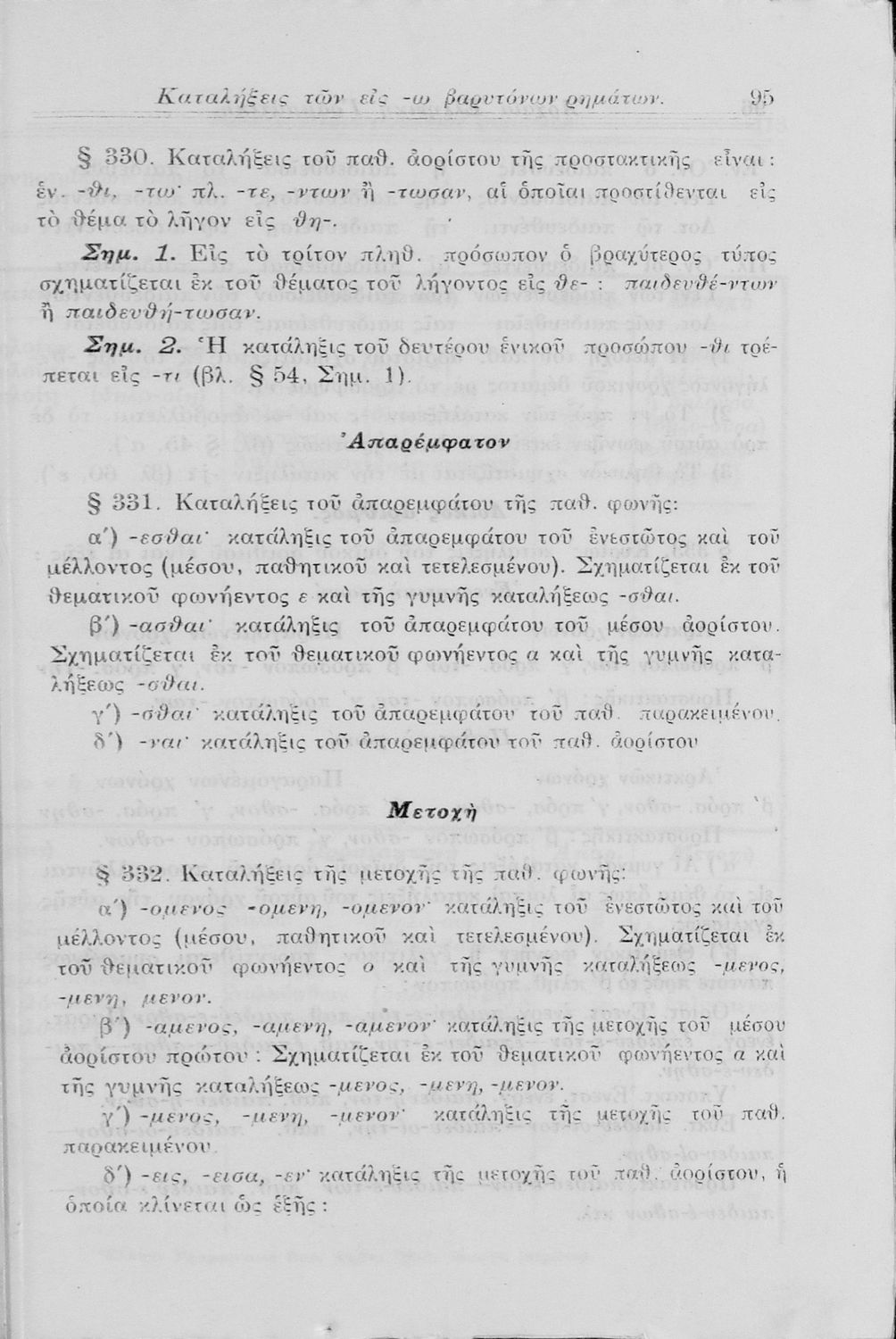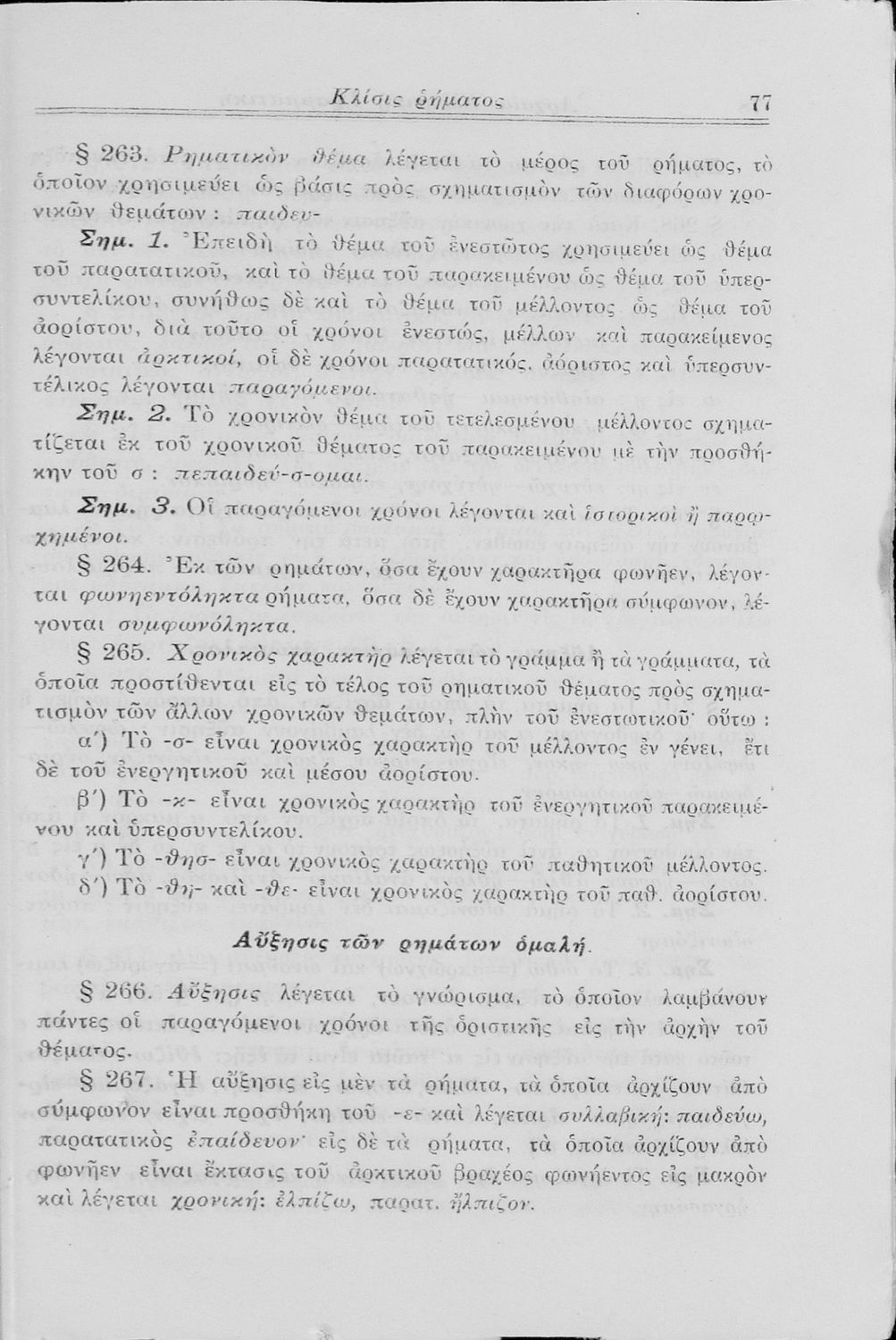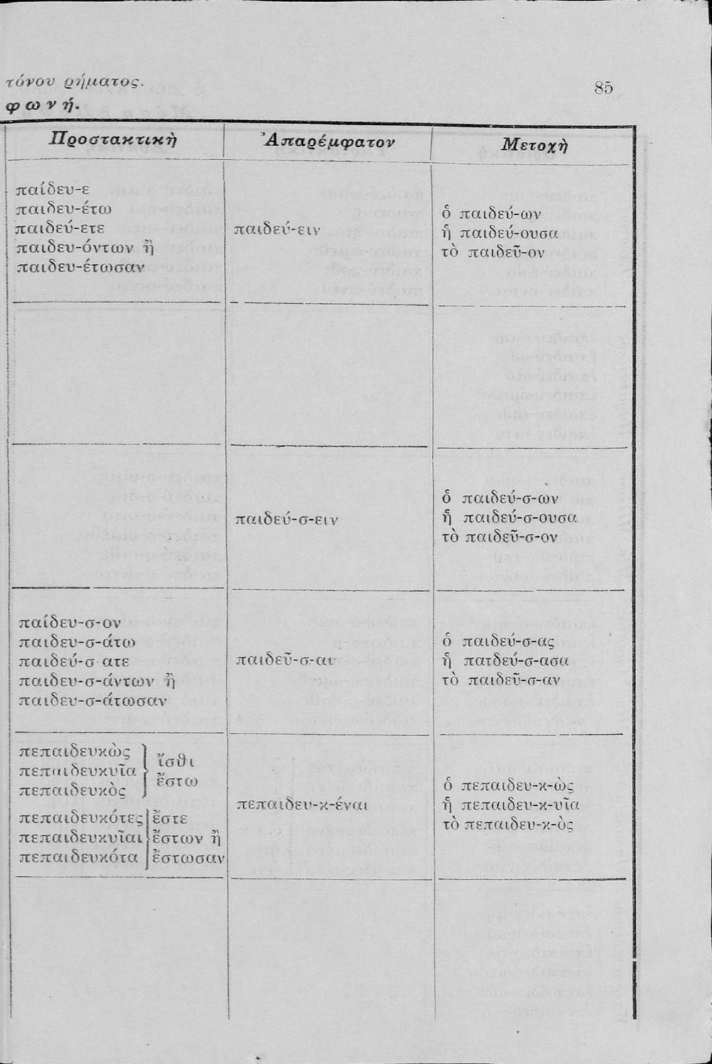 Σχολικό εγχειρίδιο Αρχαίων Ελληνικών Γυμνασίου που περιλαμβάνει τη γραμματική της αρχαίας ελληνικής και είναι χωρισμένο σε φθογγολογικό και τυπολογικό μέρος Περιέχει και κατάλογο ανωμάλων ρημάτων.