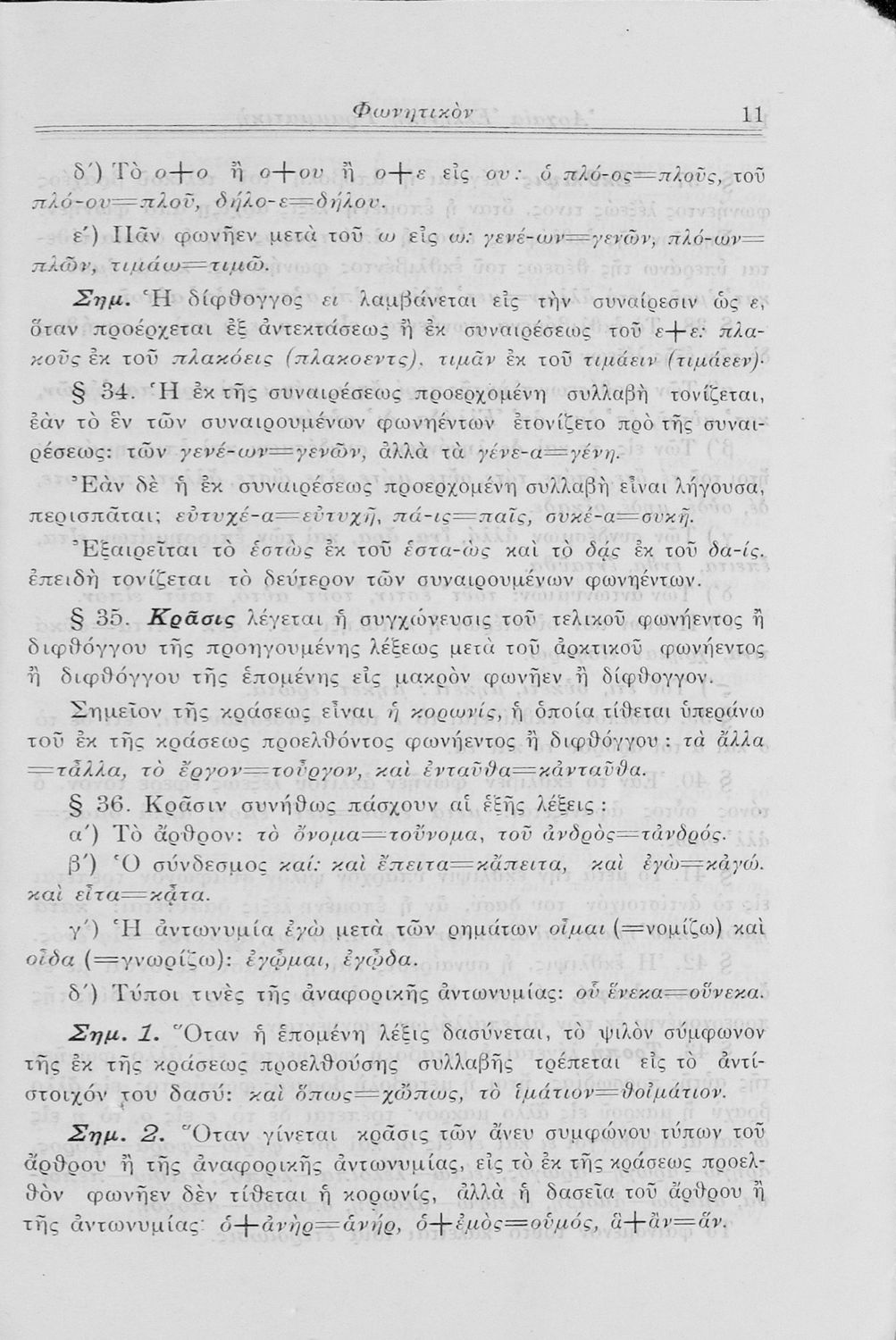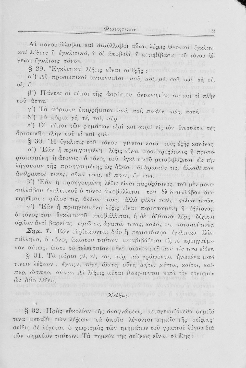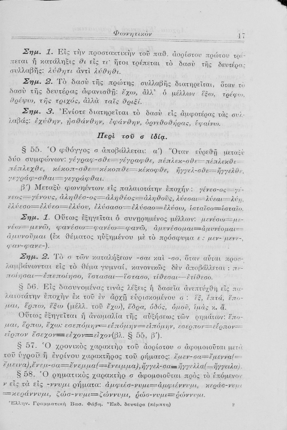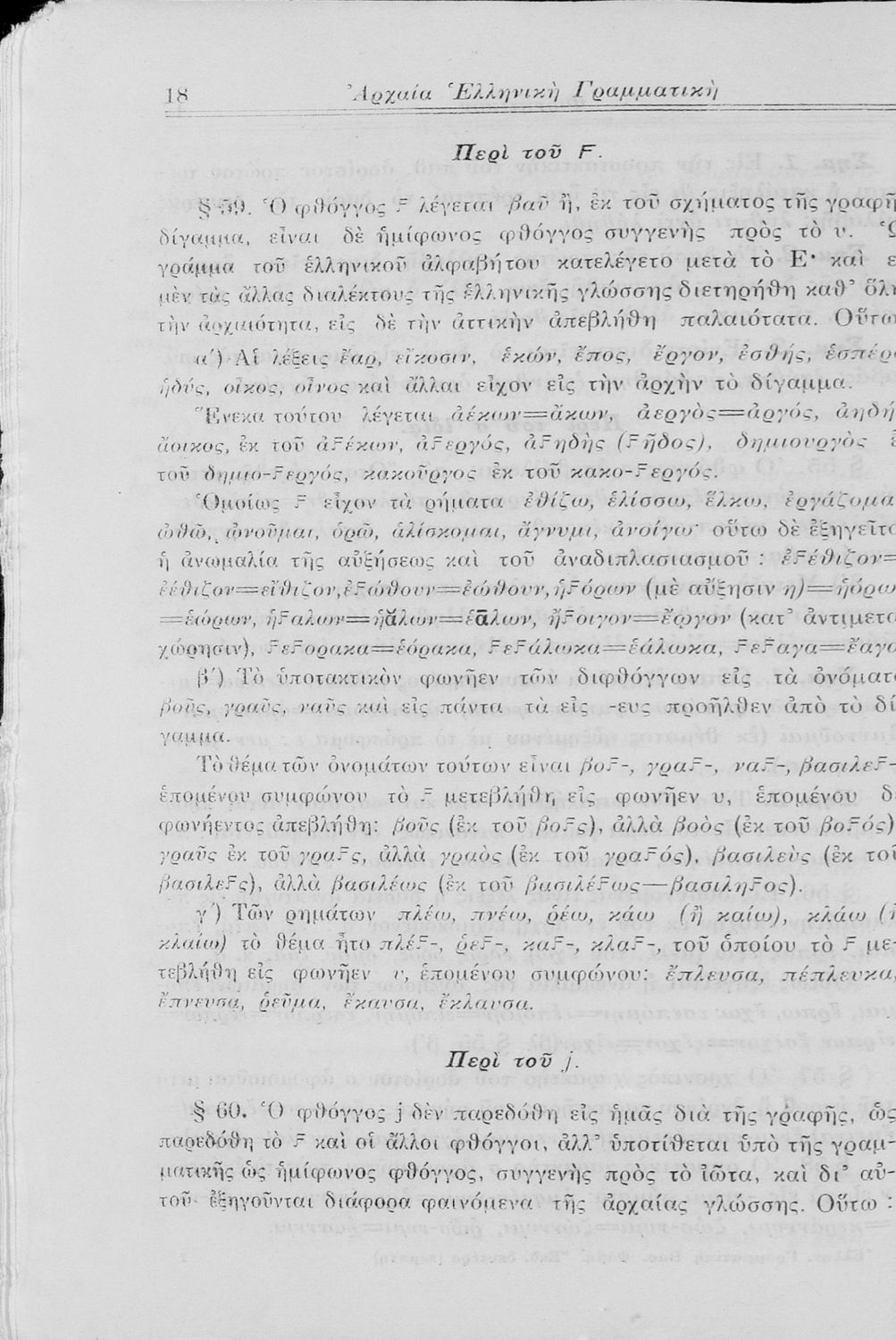 Σχολικό εγχειρίδιο Αρχαίων Ελληνικών Γυμνασίου που περιλαμβάνει τη γραμματική της αρχαίας ελληνικής και είναι χωρισμένο σε φθογγολογικό και τυπολογικό μέρος Περιέχει και κατάλογο ανωμάλων ρημάτων.