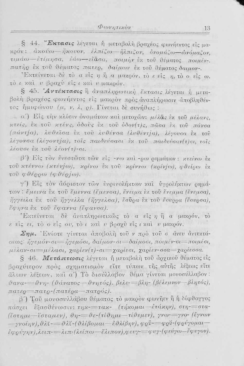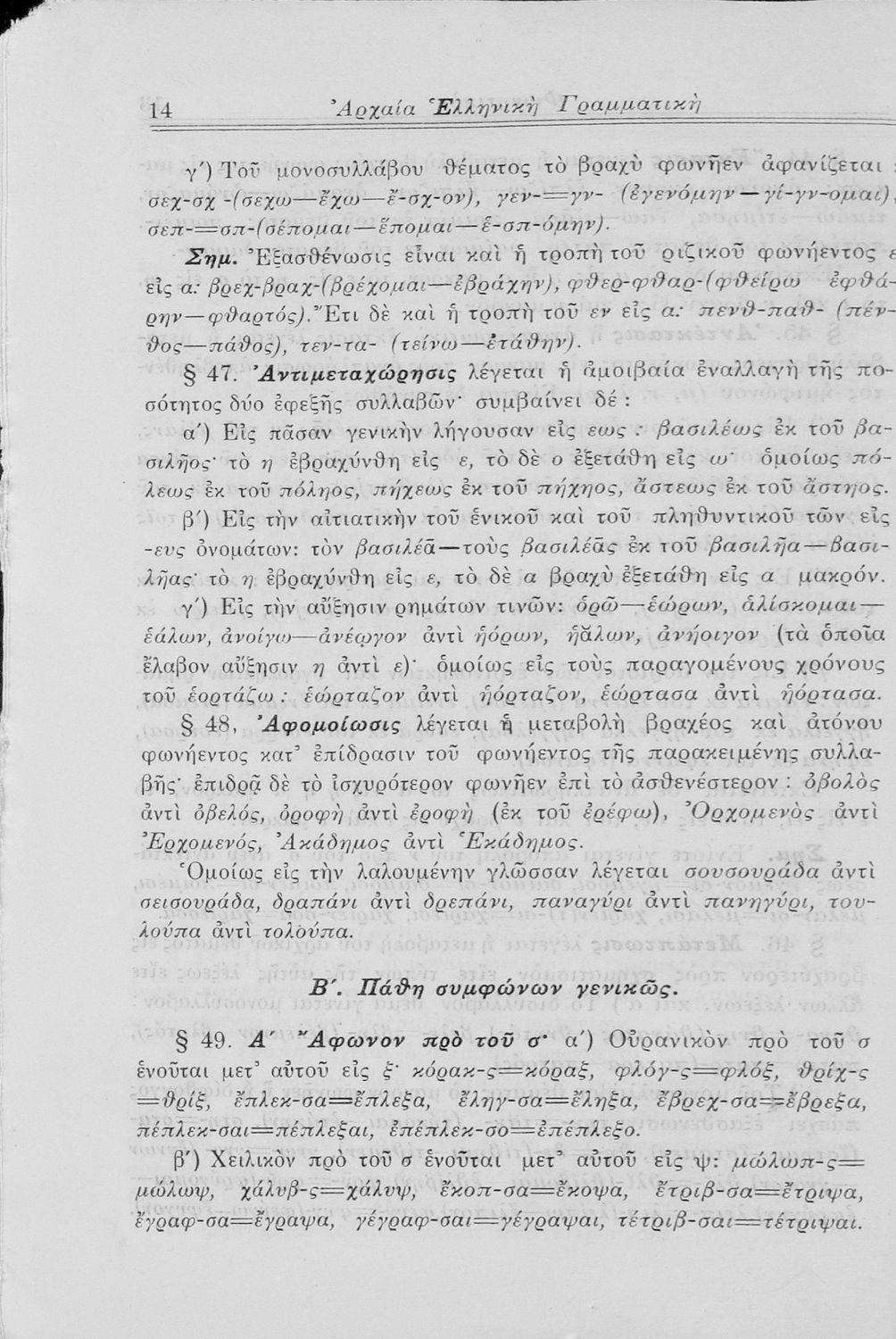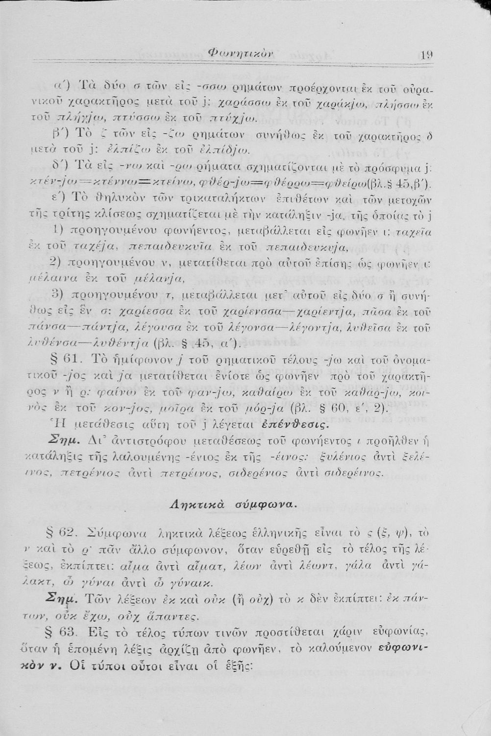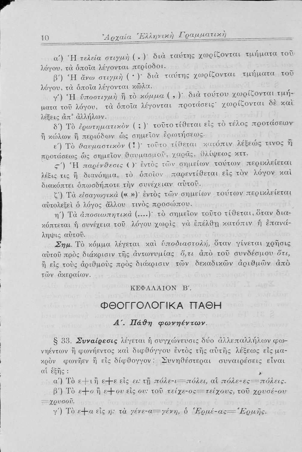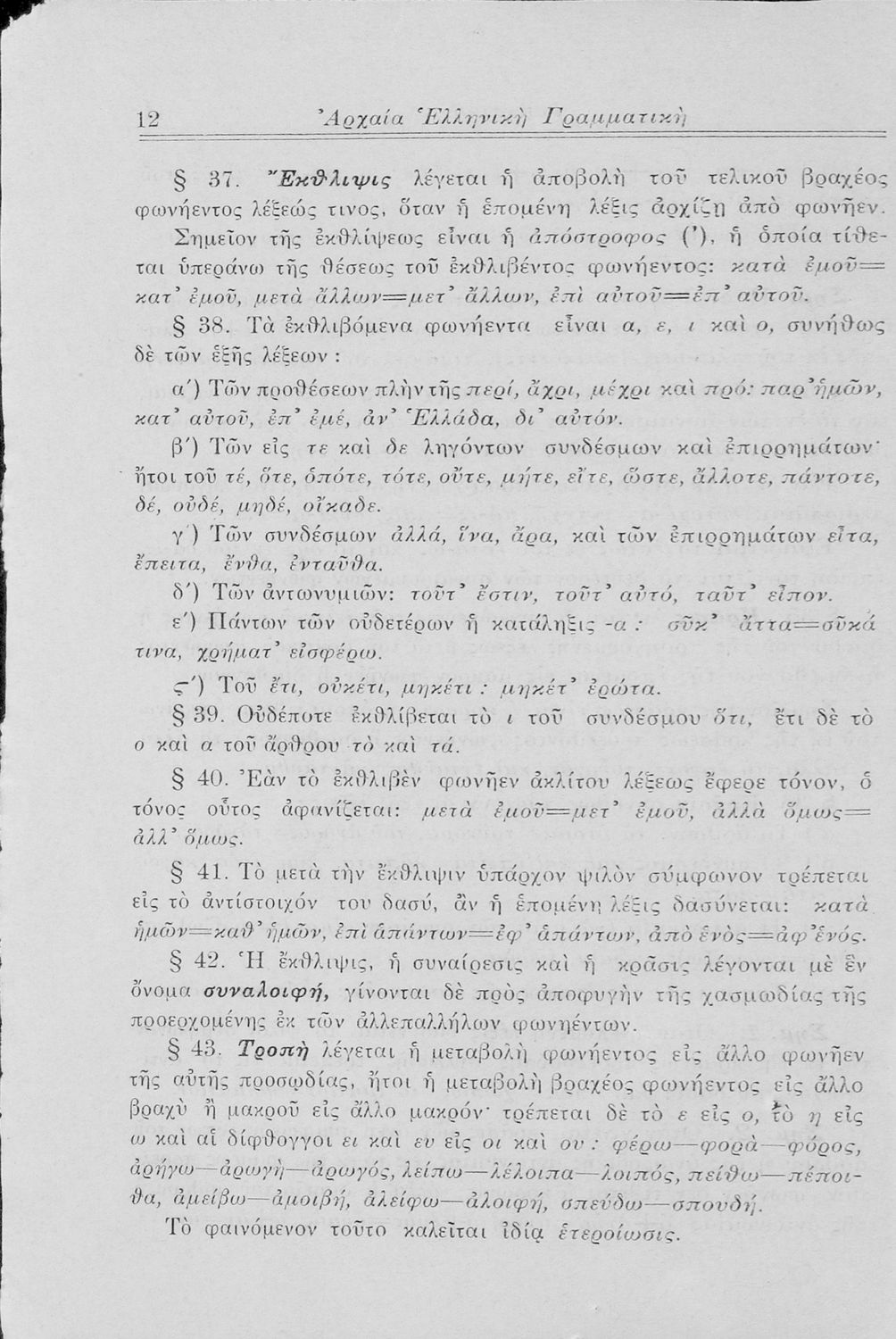 Σχολικό εγχειρίδιο Αρχαίων Ελληνικών Γυμνασίου που περιλαμβάνει τη γραμματική της αρχαίας ελληνικής και είναι χωρισμένο σε φθογγολογικό και τυπολογικό μέρος Περιέχει και κατάλογο ανωμάλων ρημάτων.